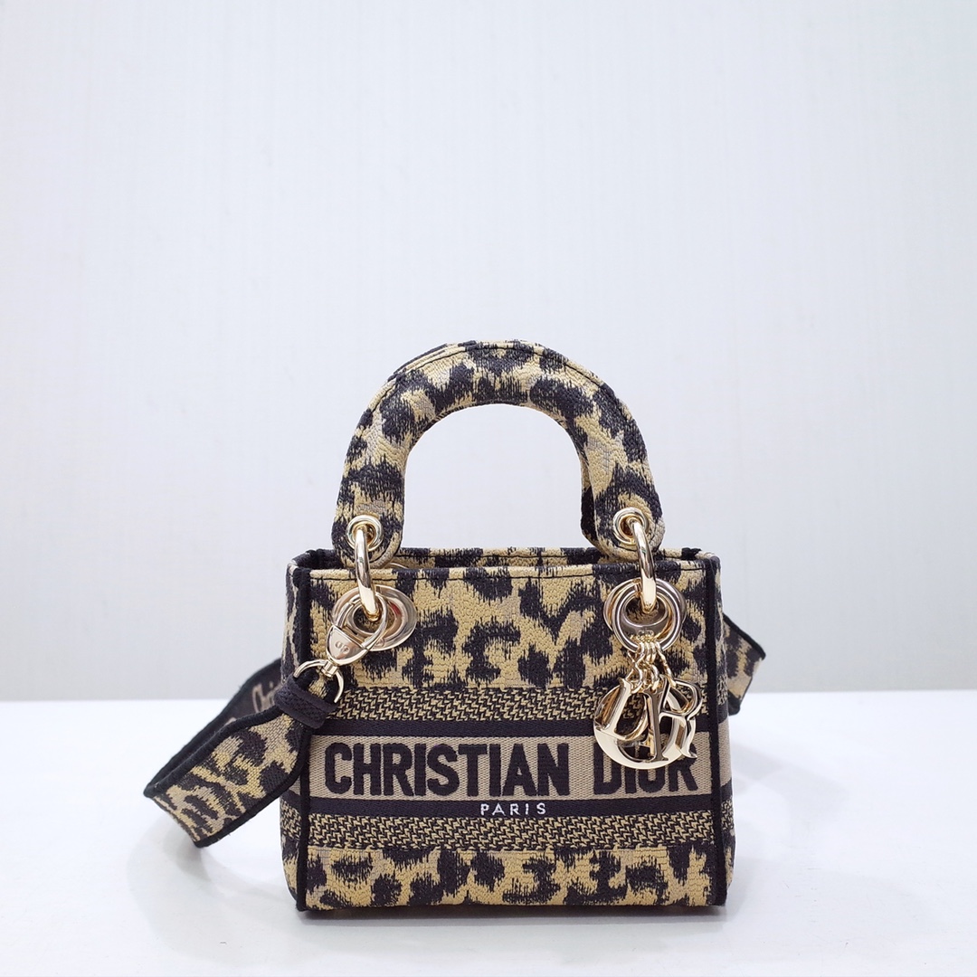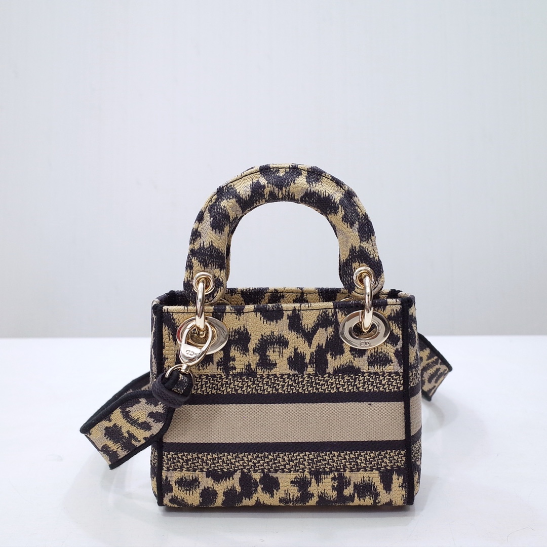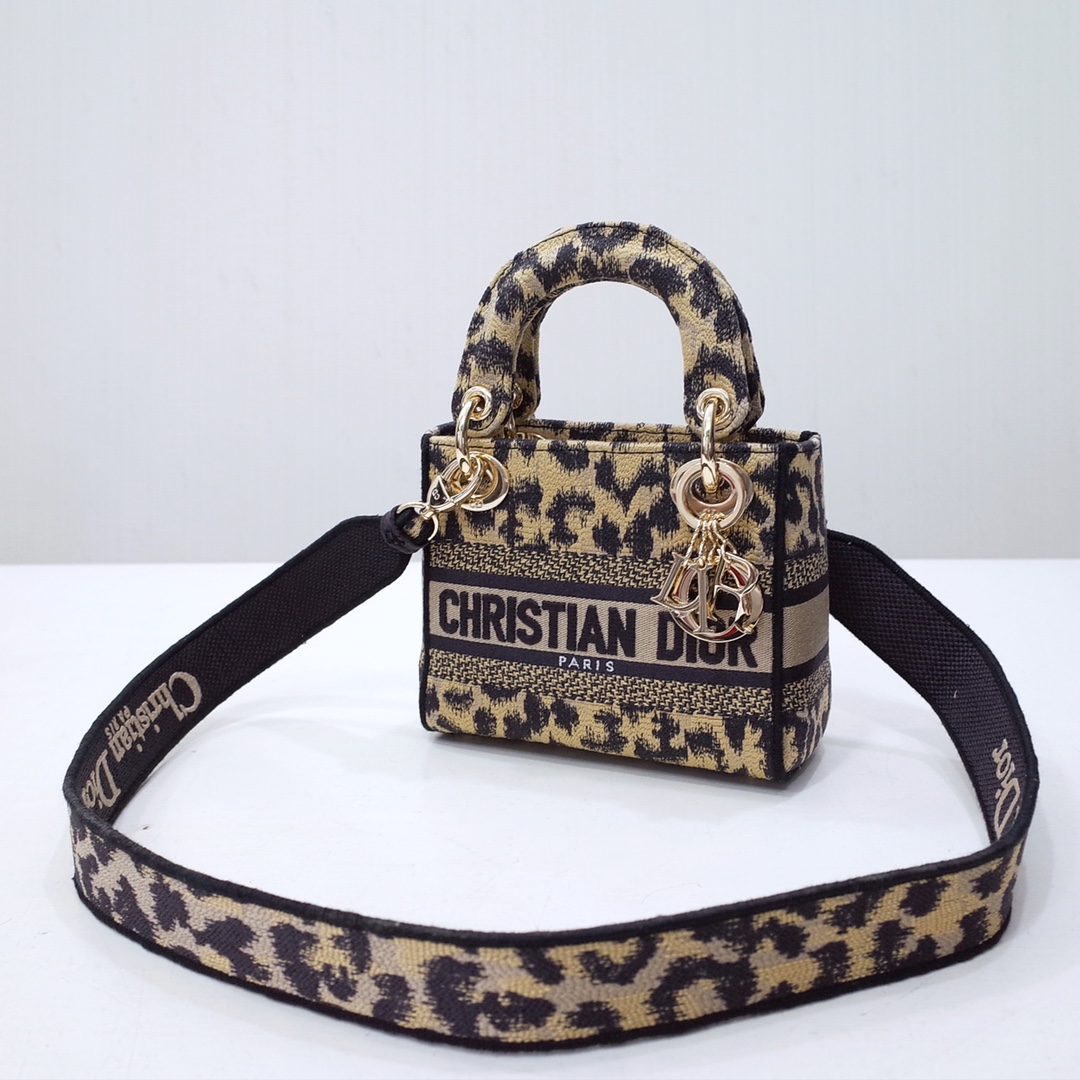 • Mini Lady D-Lite Bag Beige Multicolor Mizza Embroidery