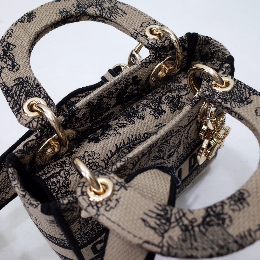 • Mini Lady D-Lite Bag Brown Toile de Jouy Embroidery