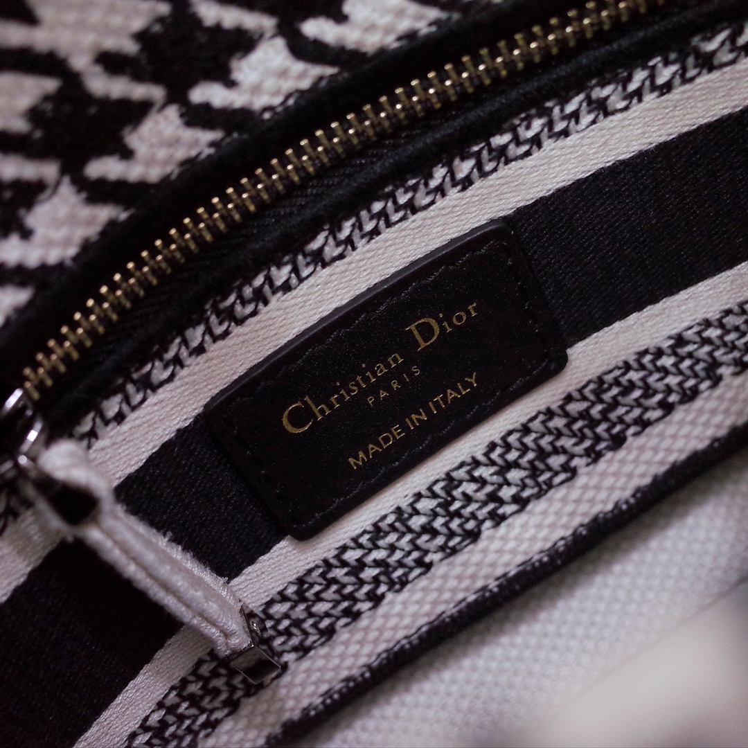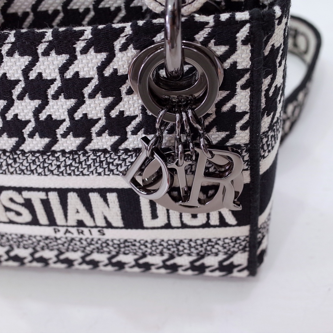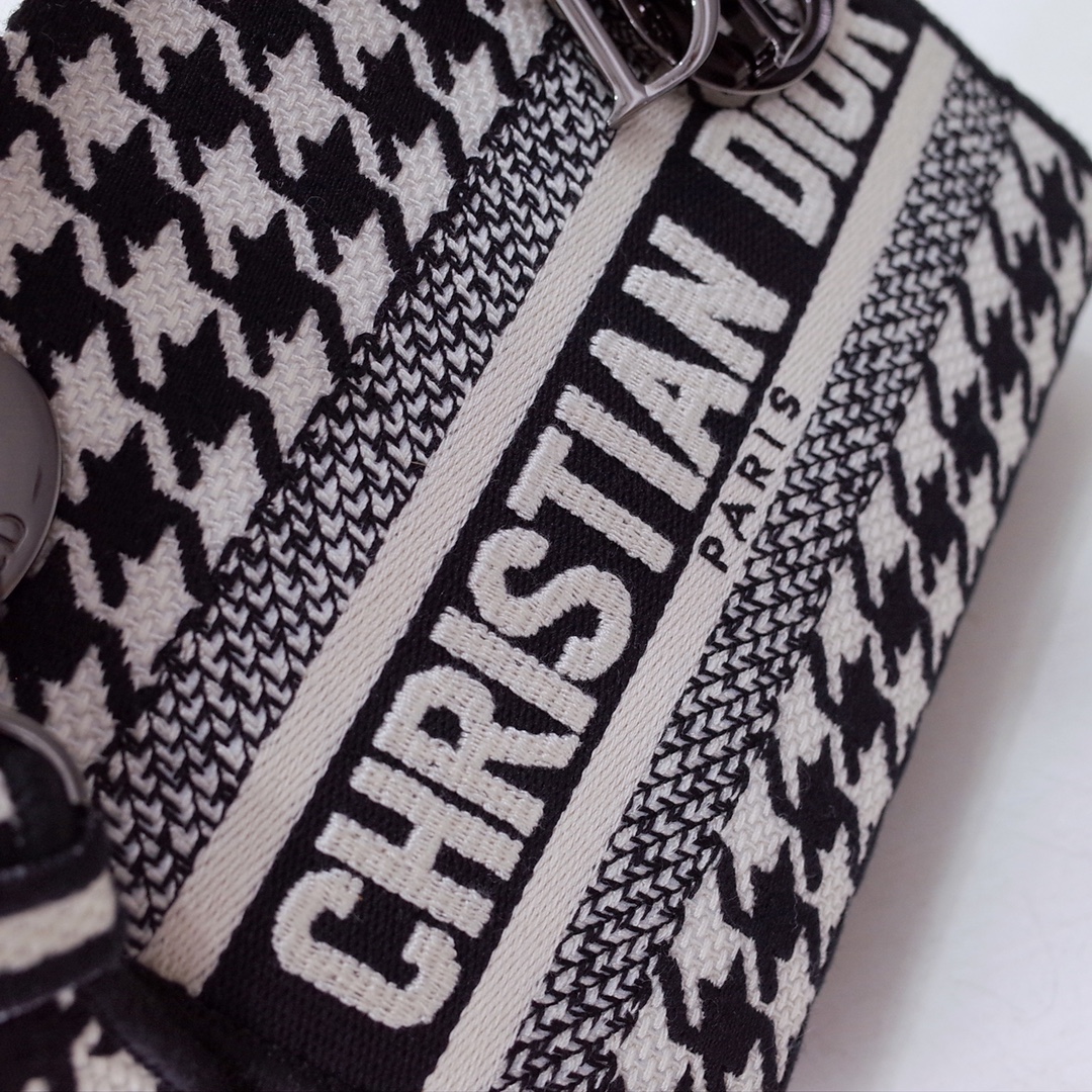 Mini Lady D-Lite Bag White and Black Houndstooth Embroidery
