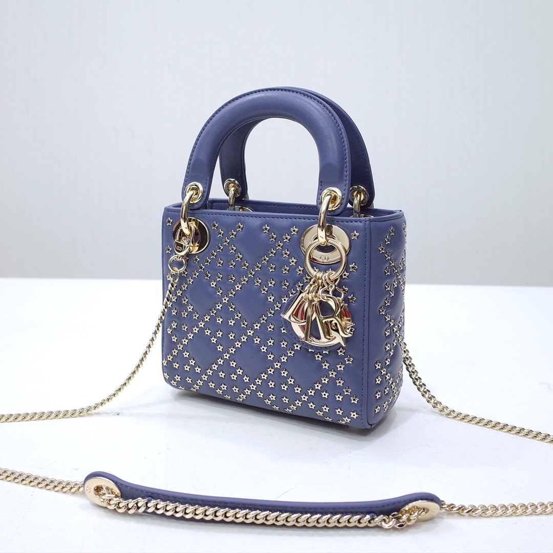 • Mini Lady Dior Bag Blue Lucky Star Cannage Lambskin