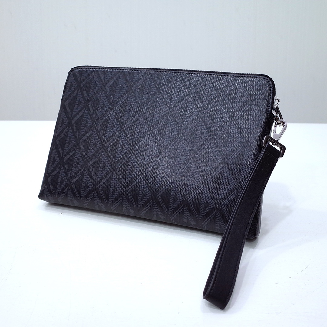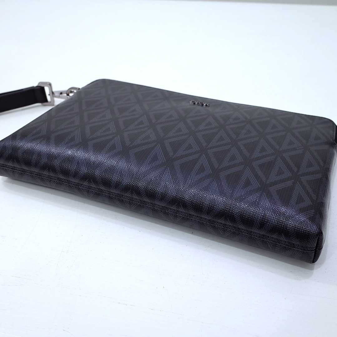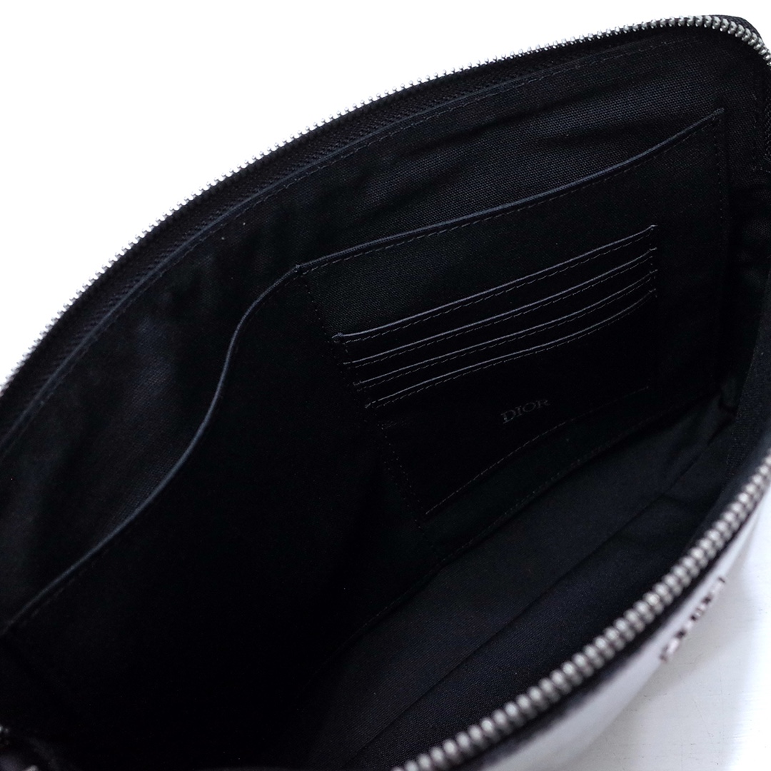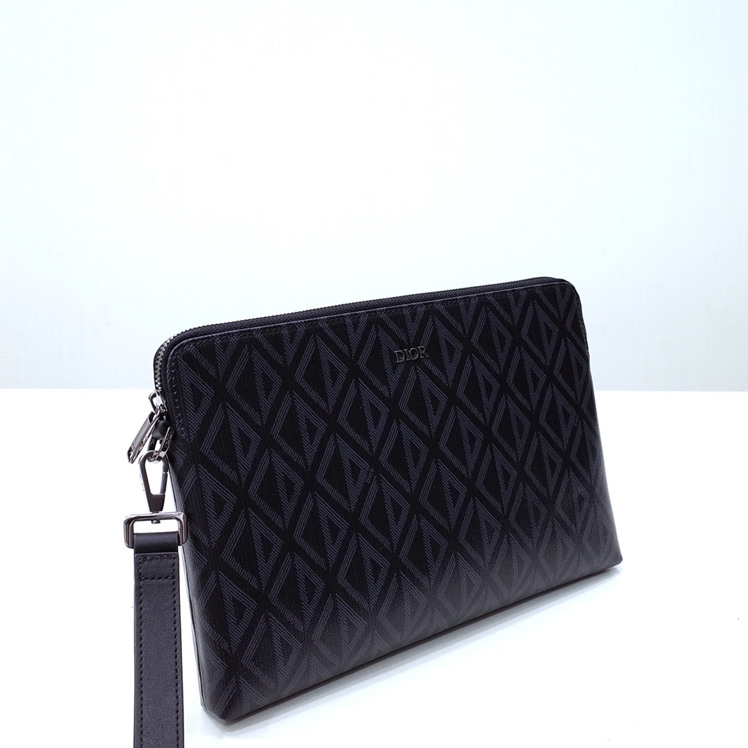The pouch is a House staple. Crafted in black CD Diamond canvas inspired by the archives, it is enhanced by a Dior signature on the front. It features a spacious zipped compartment that is ideal for a phone, as well as three card slots. Thanks to its removable calfskin wrist strap, the pouch can be carried by hand or slipped into a bag.