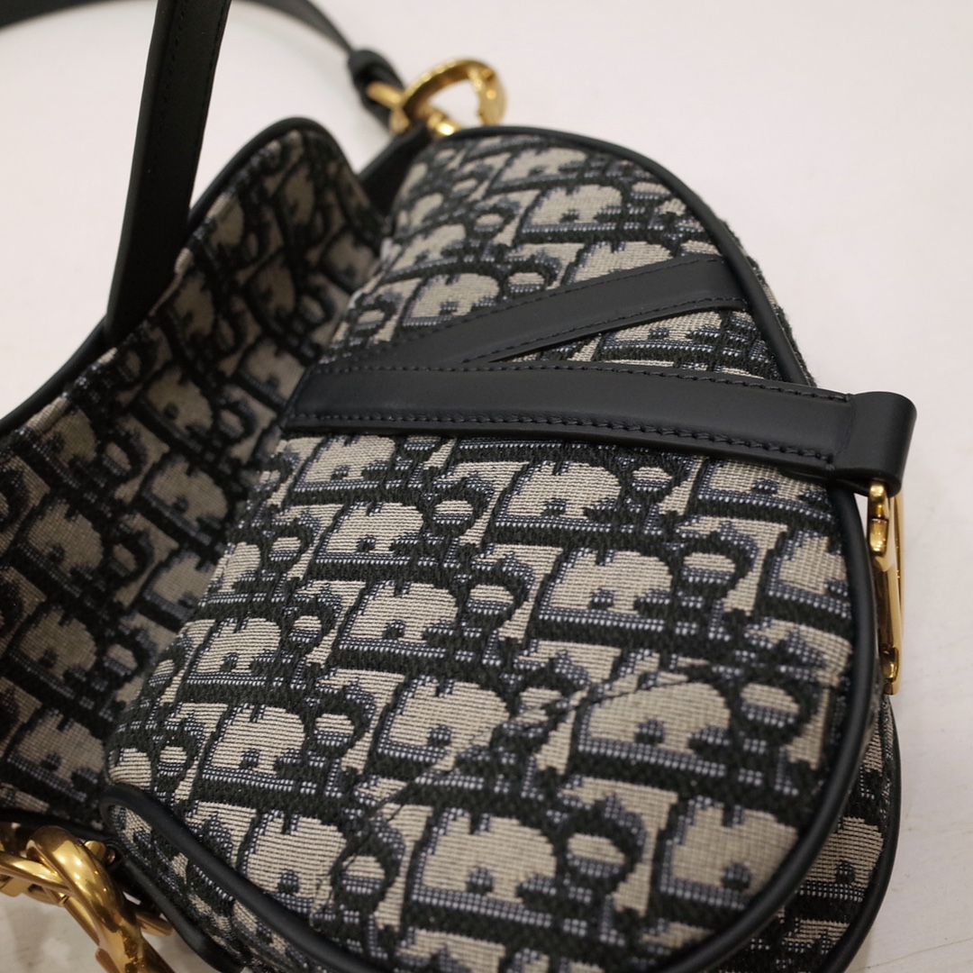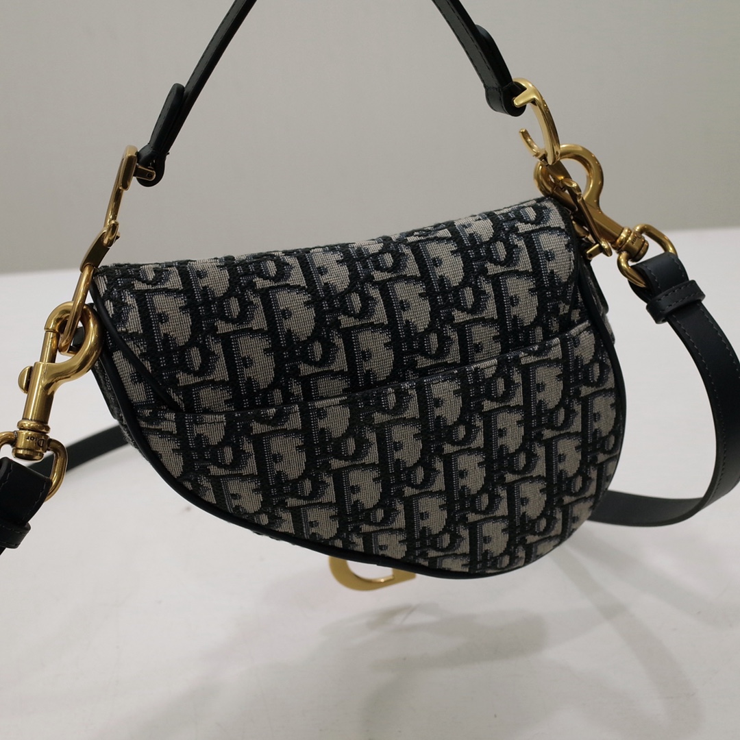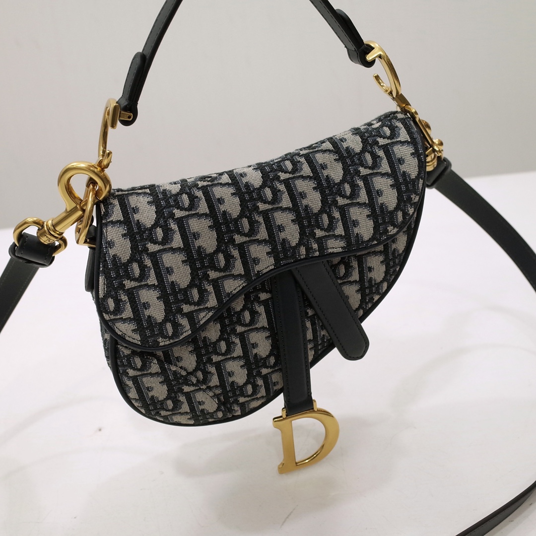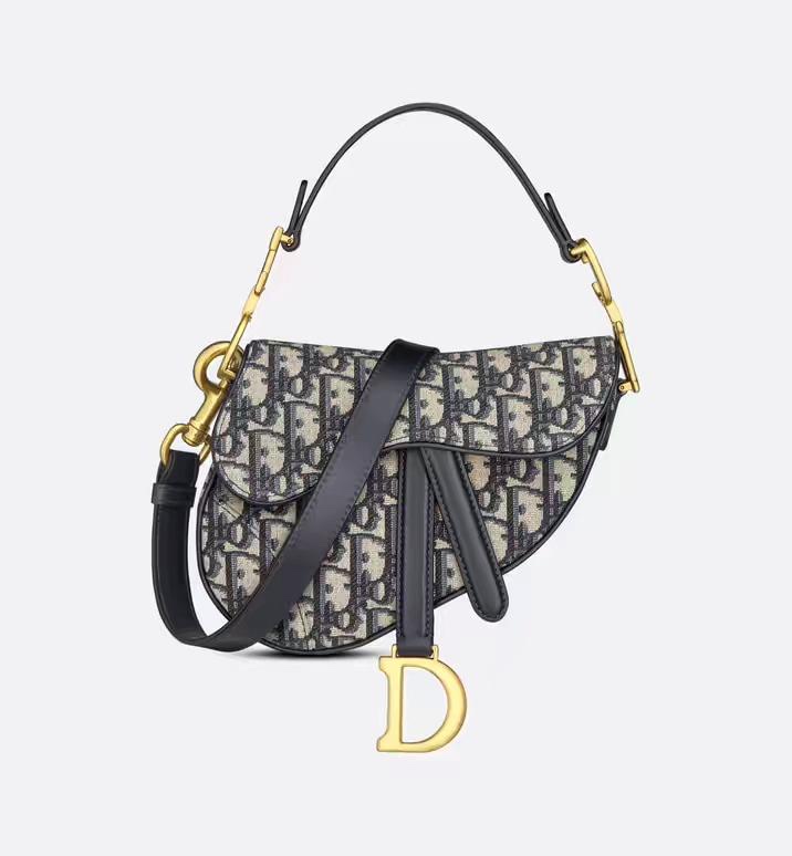 Maria Grazia Chiuri brings a fresh update to the iconic Saddle bag. Crafted in blue Dior Oblique jacquard, the legendary design presents a Saddle flap with a magnetic D stirrup clasp, as well as an antique gold-finish metal CD signature on either side of the strap. Featuring a thin, adjustable and removable shoulder strap, the Saddle bag may be carried by hand, worn over the shoulder or crossbody.