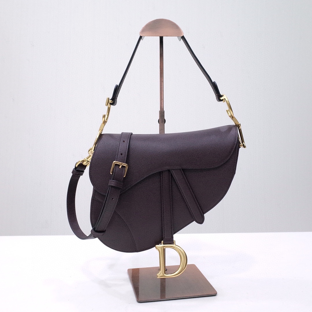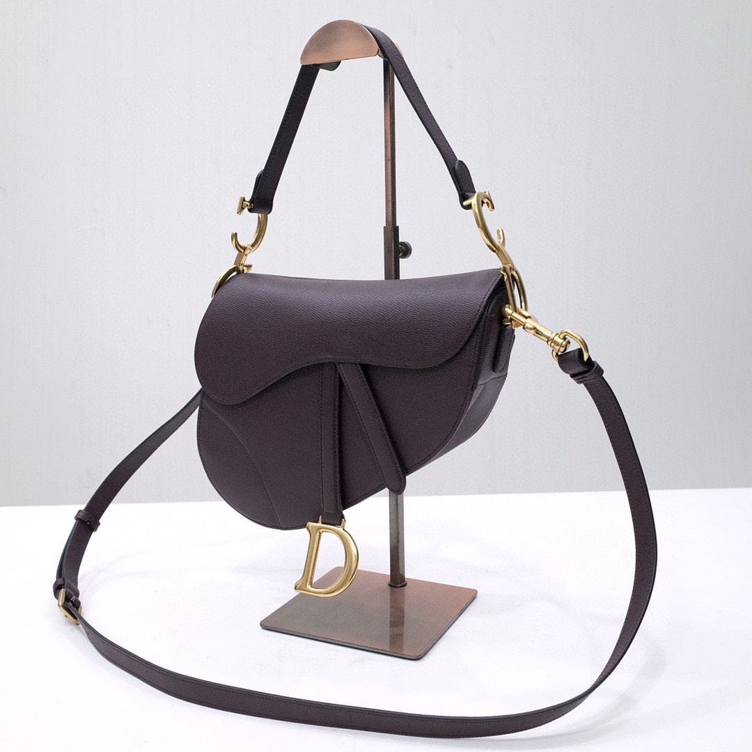 Maria Grazia Chiuri brings a fresh update to the iconic Saddle bag. Crafted in golden saddle grained calfskin, the legendary design presents a Saddle flap with a magnetic D stirrup clasp, as well as an antique gold-finish metal CD signature on either side of the strap. Featuring a thin, adjustable and removable shoulder strap, the Saddle bag may be carried by hand, worn over the shoulder or crossbody.