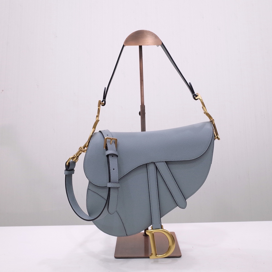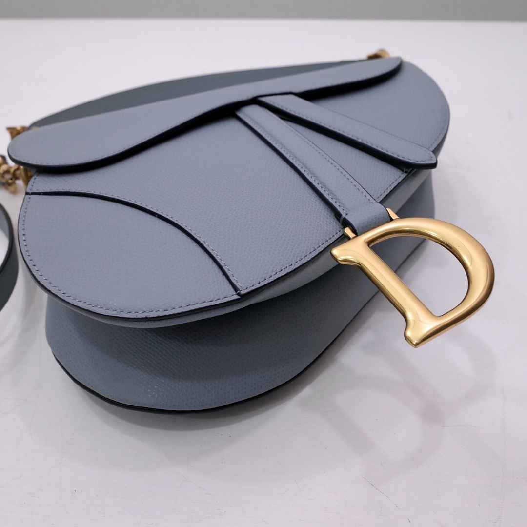 Maria Grazia Chiuri brings a fresh update to the iconic Saddle bag. Crafted in blush grained calfskin, the legendary design presents a Saddle flap with a magnetic D stirrup clasp, as well as an antique gold-finish metal CD signature on either side of the strap. Featuring a thin, adjustable and removable shoulder strap, the Saddle bag may be carried by hand, worn over the shoulder or crossbody.