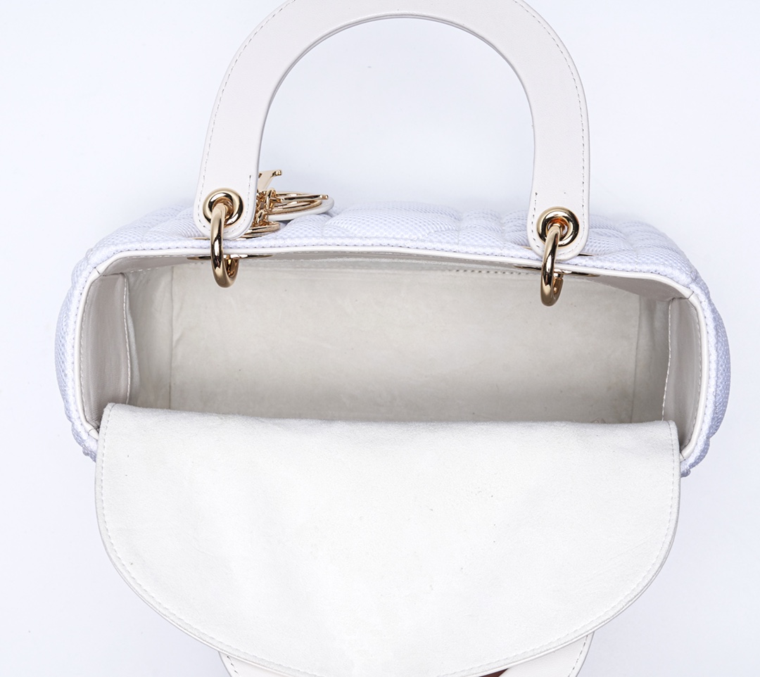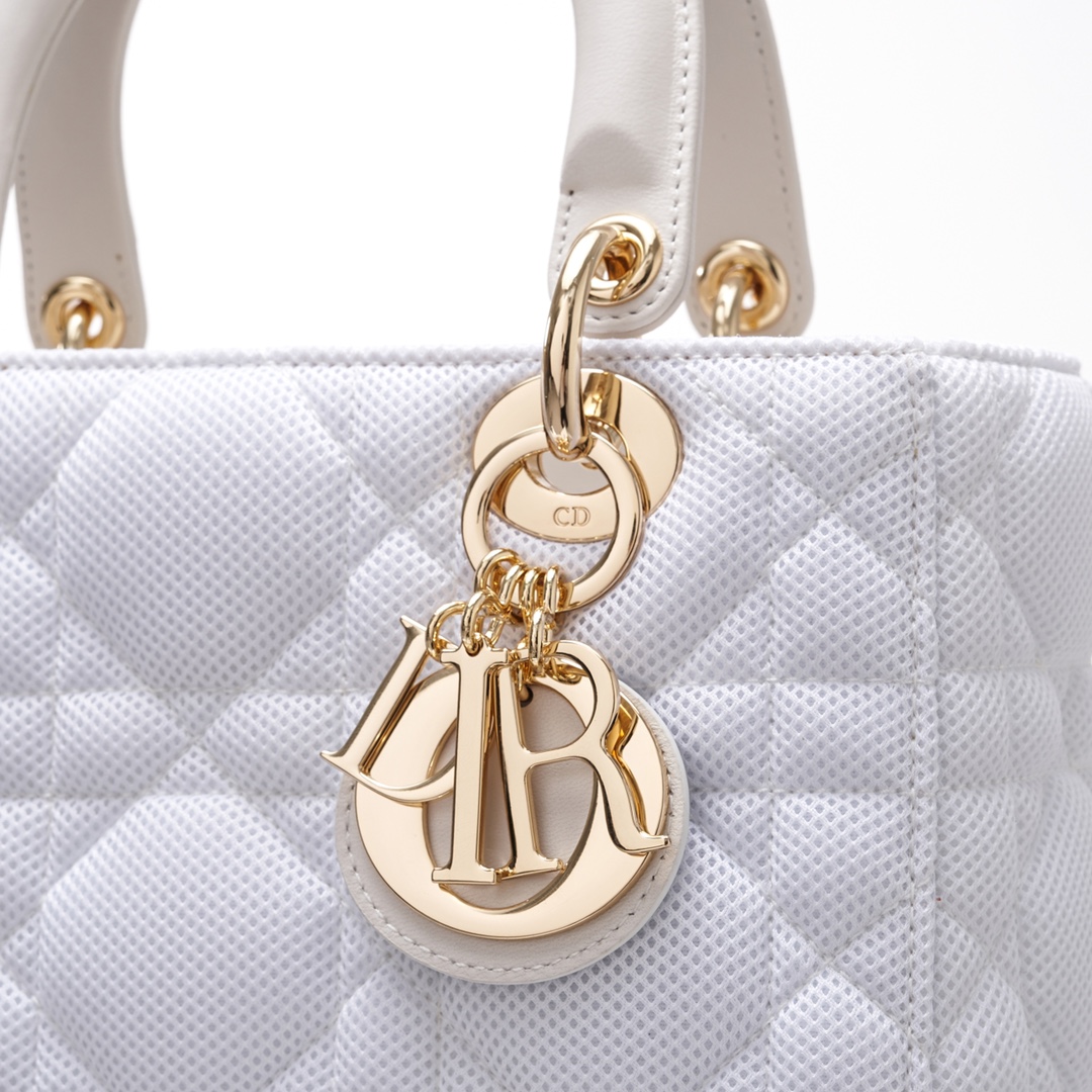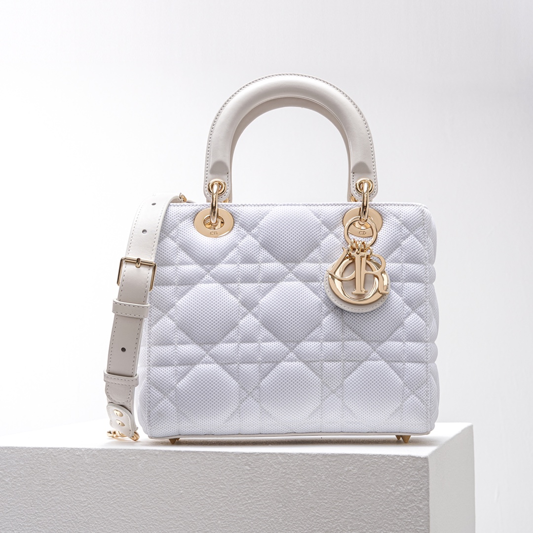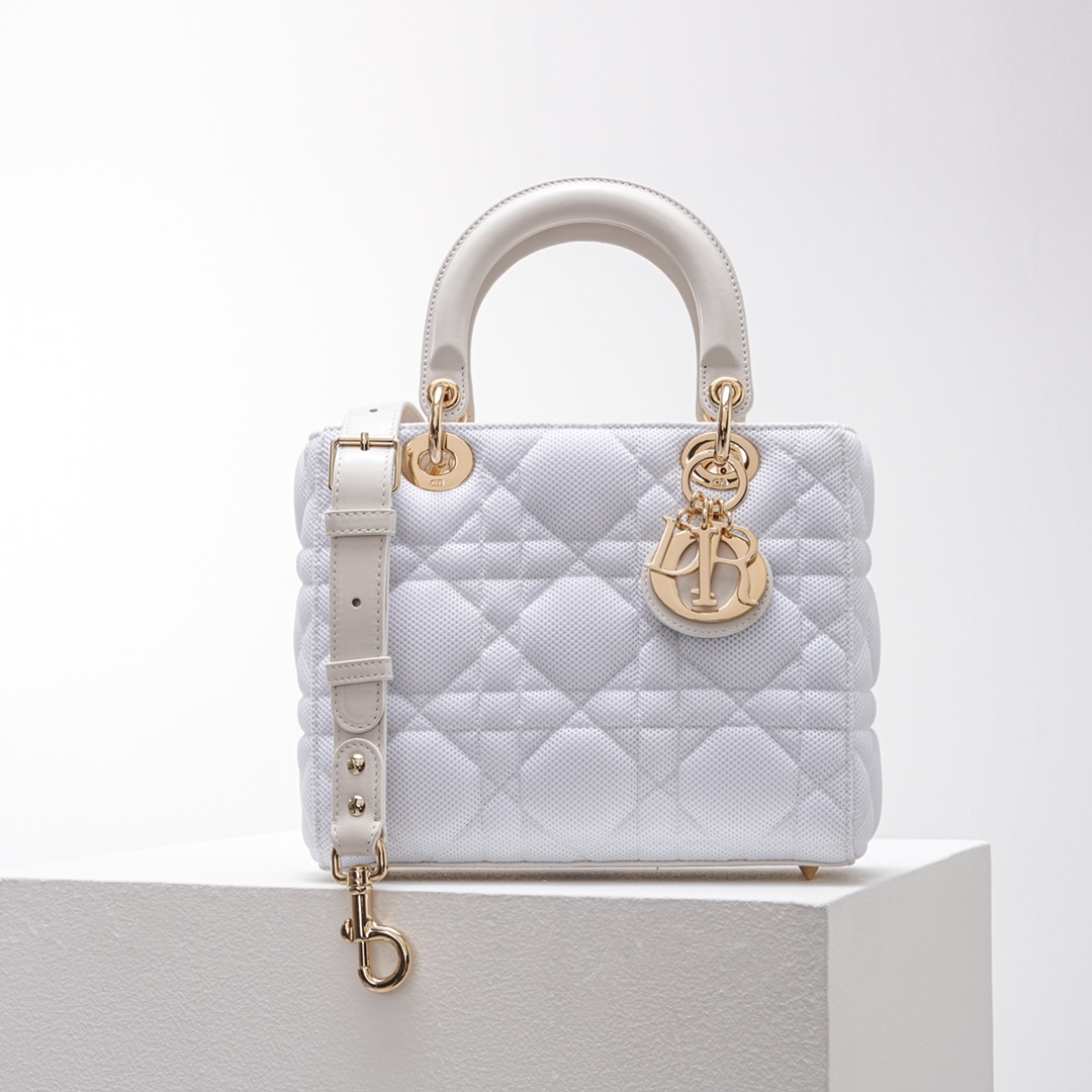 The Lady D-Joy bag captures the House's vision of elegance and beauty. Refined and elegant, the timeless creation showcases the iconic streamlined aesthetic of the Lady Dior line. Crafted in latte lambskin with Cannage stitching enhanced by a Heart motif, the sleek style is enhanced by tonal enamel D.I.O.R. charms. Featuring one removable chain strap and another adjustable and removable leather strap, the medium Lady D-Joy bag can be carried by hand, worn over the shoulder or crossbody as a daily companion.