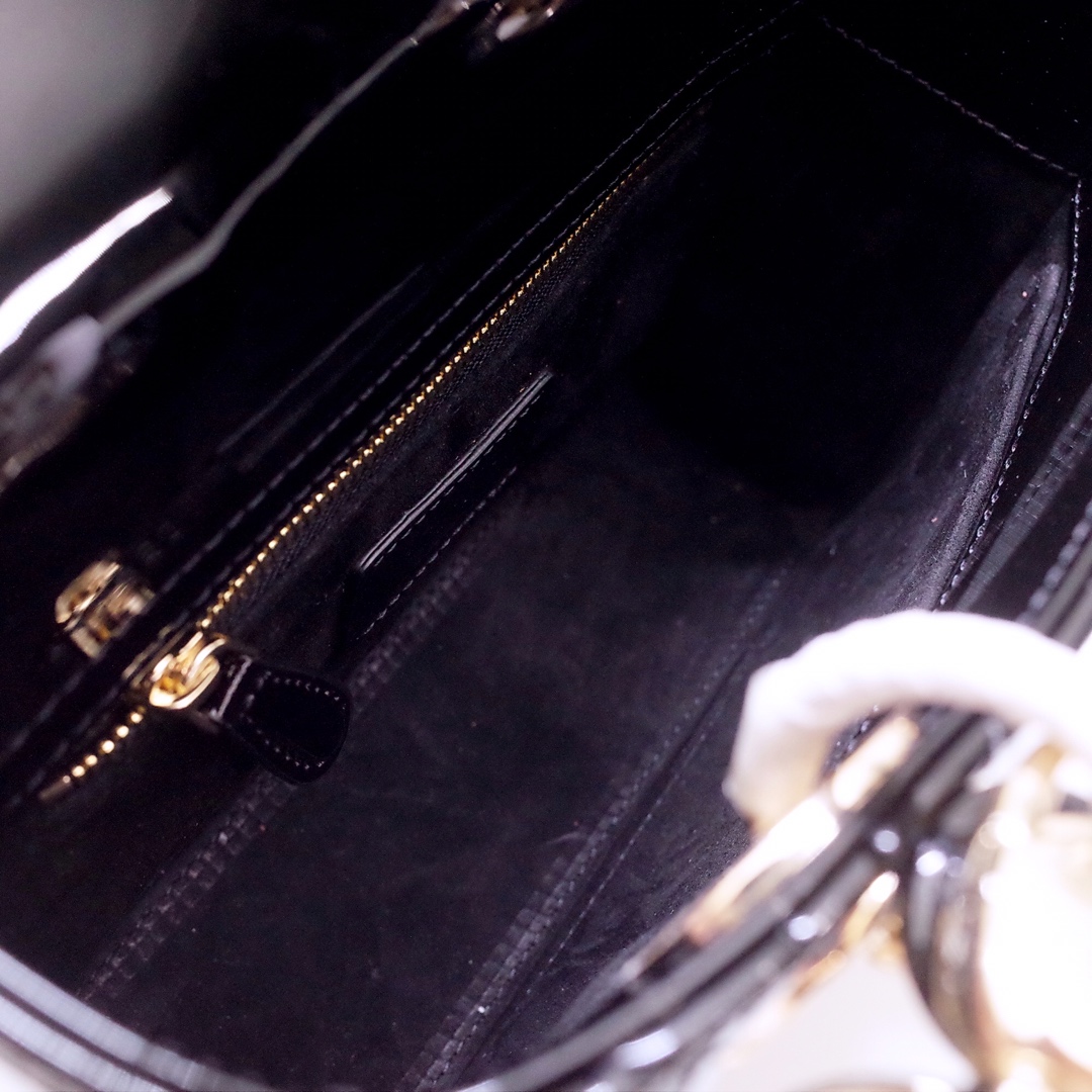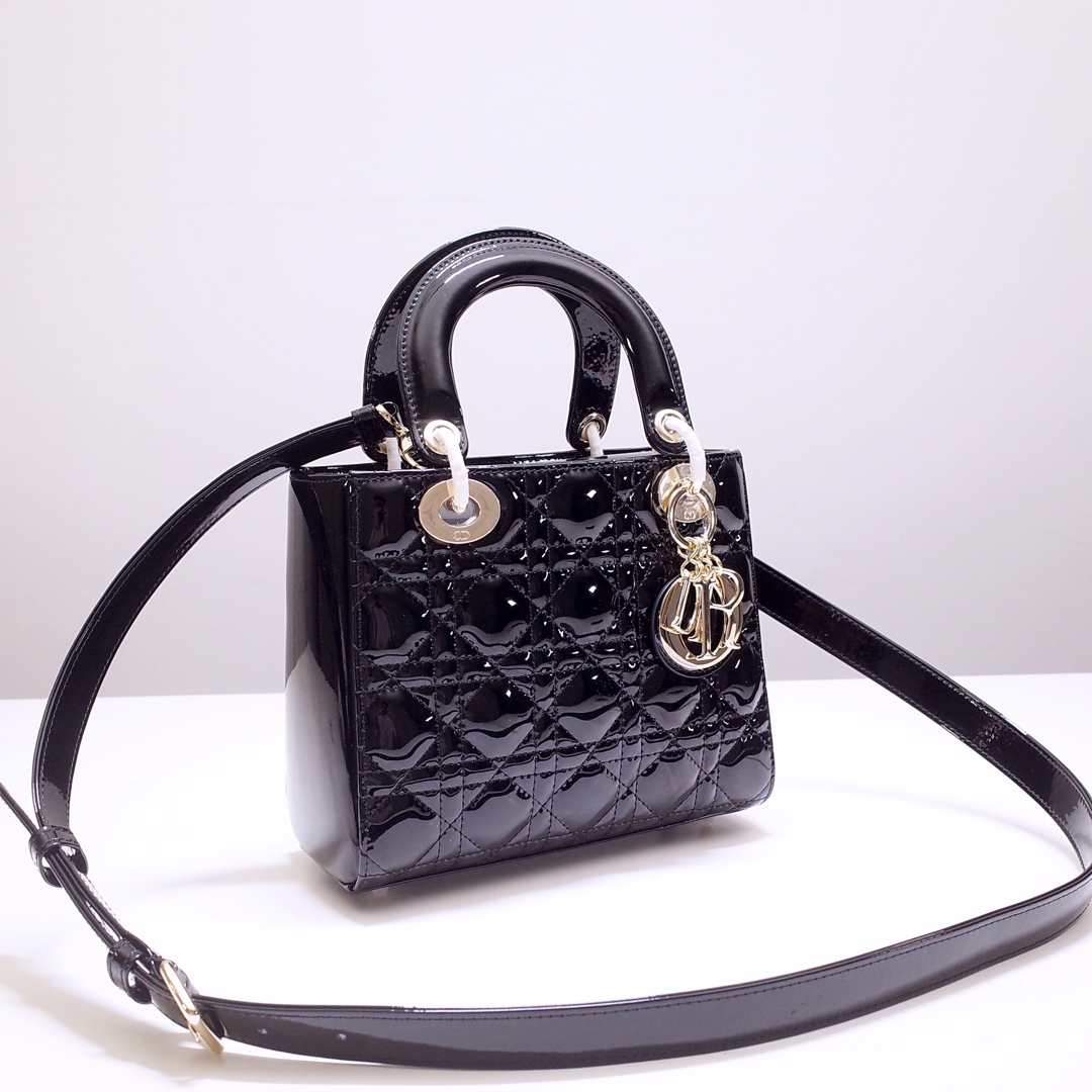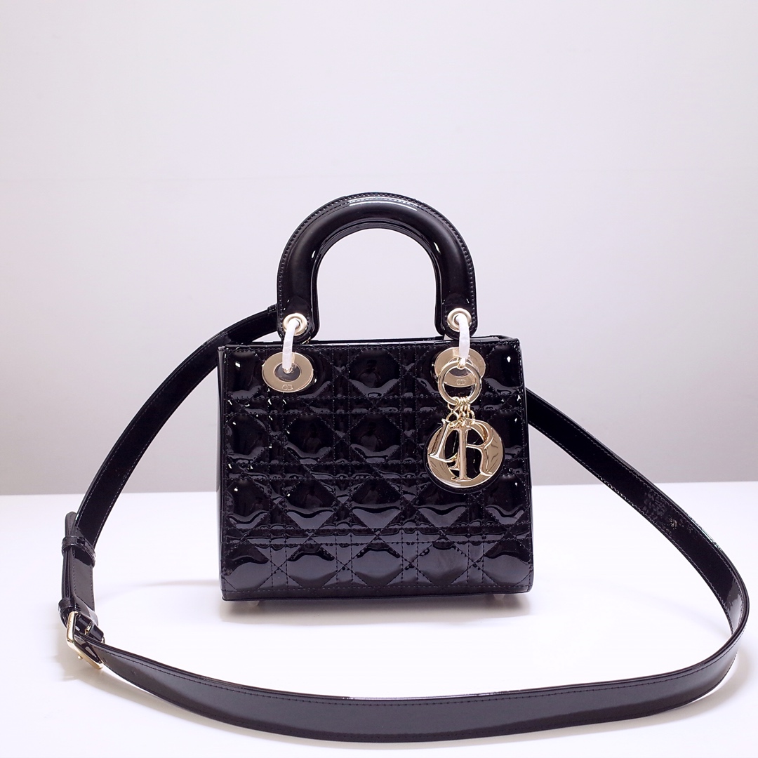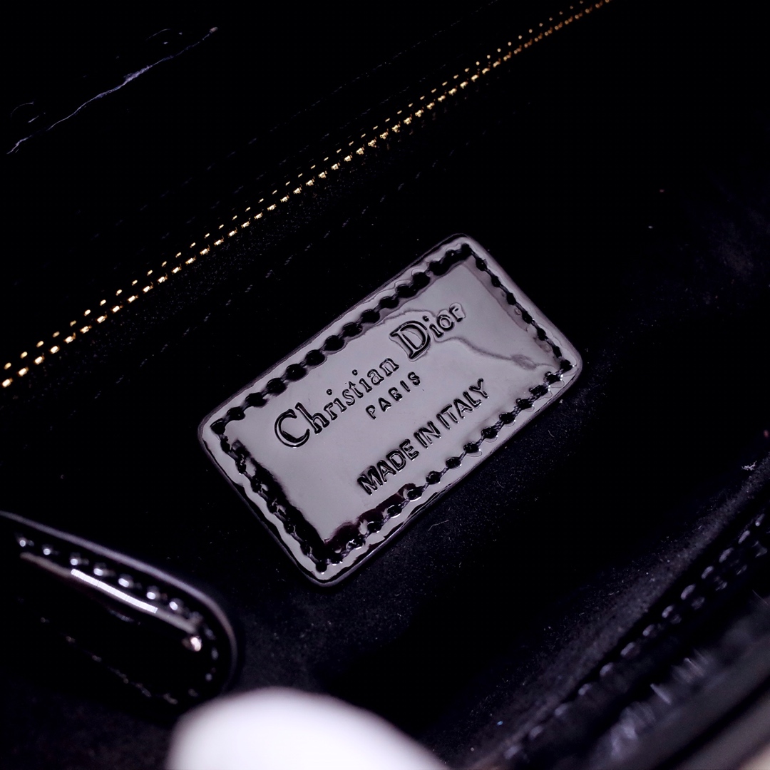 The Lady Dior My ABCDior bag epitomizes the House's vision of elegance and beauty. Sleek and refined, the timeless style is crafted in Ethereal green lambskin with Cannage stitching, creating the instantly recognizable quilted texture, while the pale gold-finish metal D.I.O.R. charms embellish and illuminate the silhouette. Featuring a shoulder strap that can be customized by adding badges, the small, unique style may be carried by hand or worn crossbody.