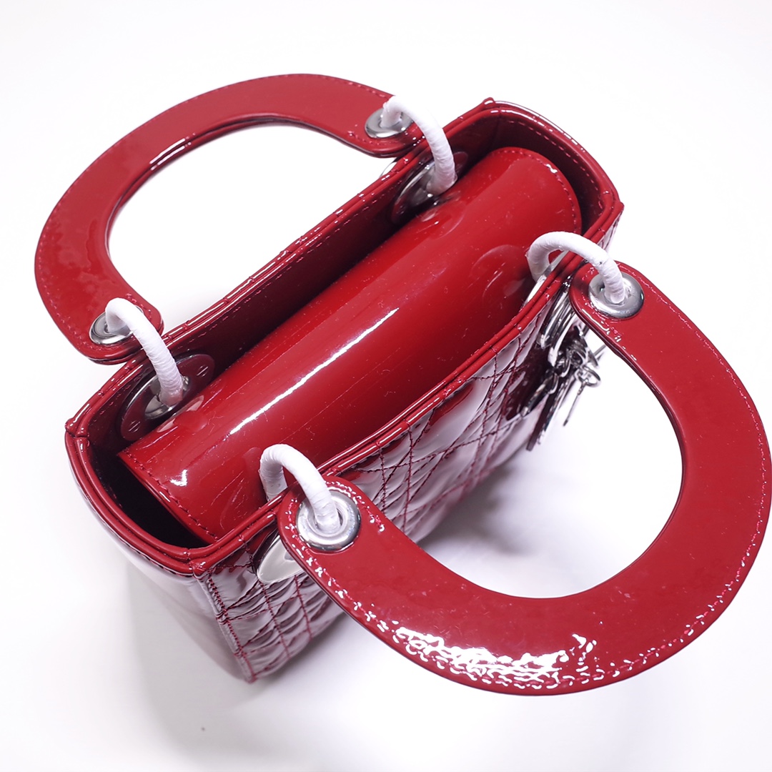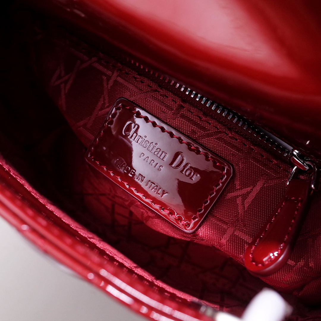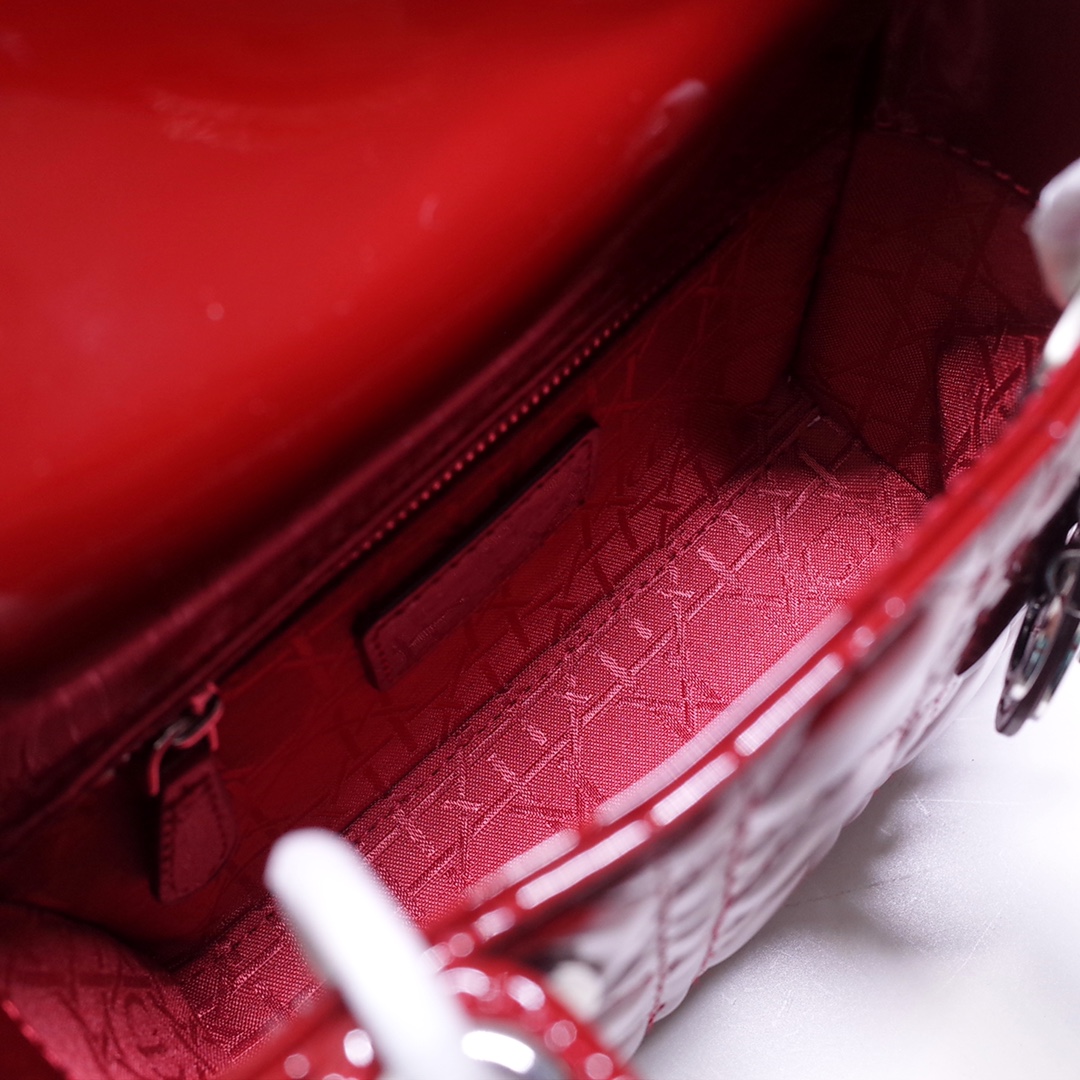 • Small Lady Dior Bag Cherry Red Patent Cannage Calfskin silver buckle
