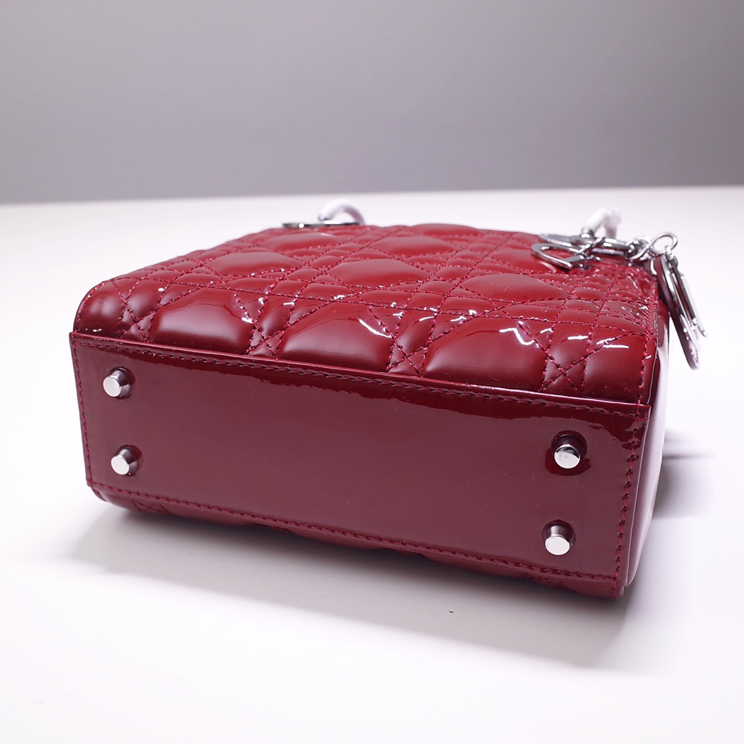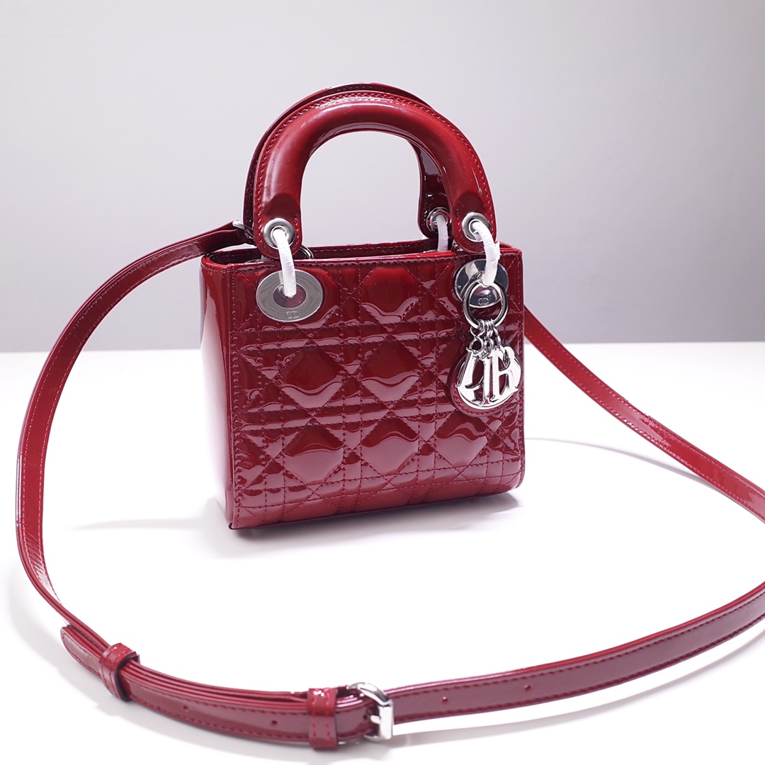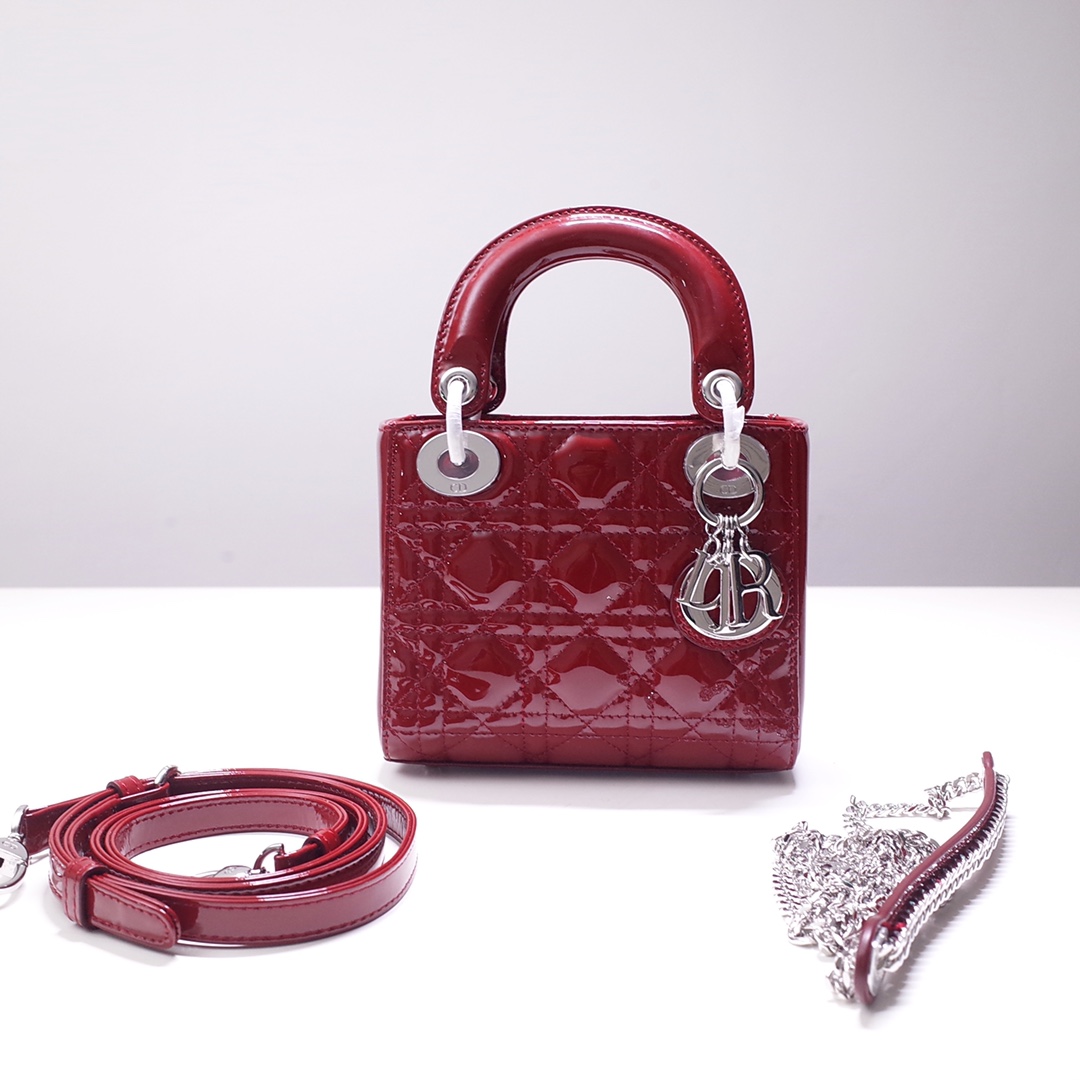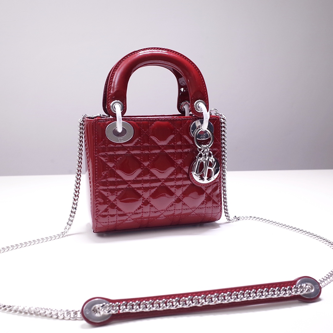• Small Lady Dior Bag Cherry Red Patent Cannage Calfskin silver buckle