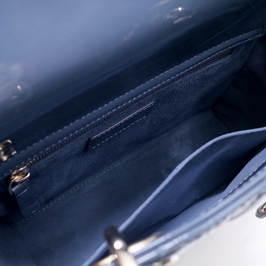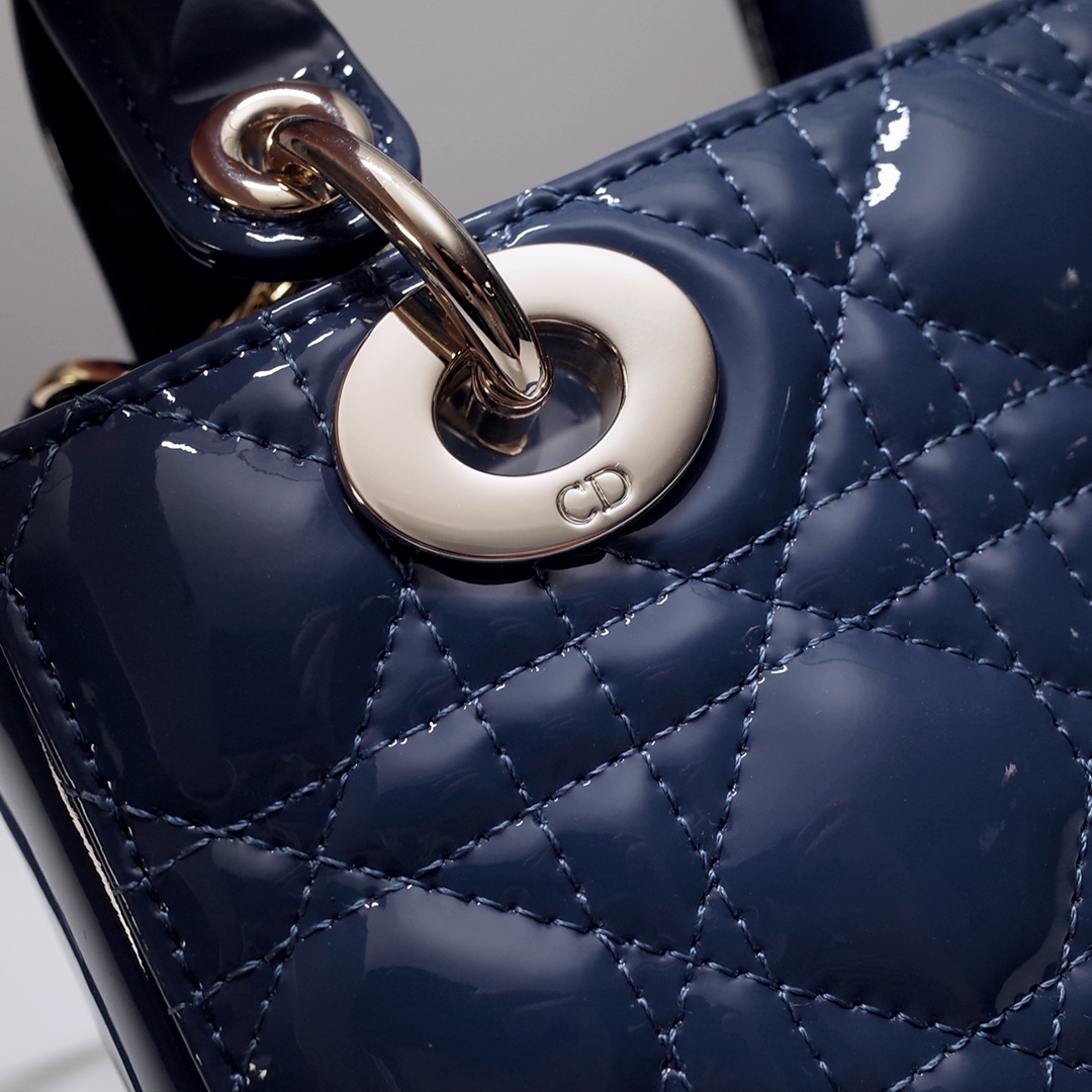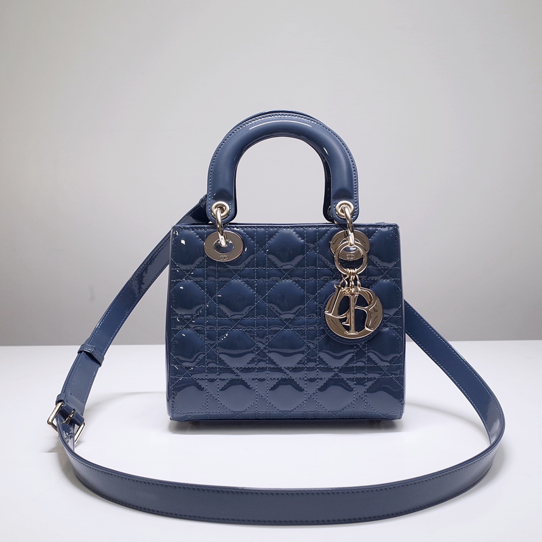 The Lady Dior My ABCDior bag epitomizes the House's vision of elegance and beauty. Sleek and refined, the timeless style is crafted in Ethereal green lambskin with Cannage stitching, creating the instantly recognizable quilted texture, while the pale gold-finish metal D.I.O.R. charms embellish and illuminate the silhouette. Featuring a shoulder strap that can be customized by adding badges, the small, unique style may be carried by hand or worn crossbody.