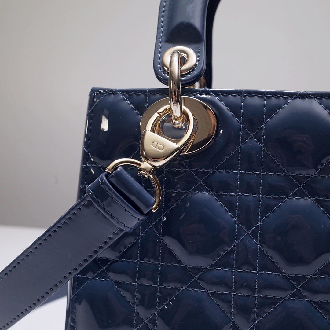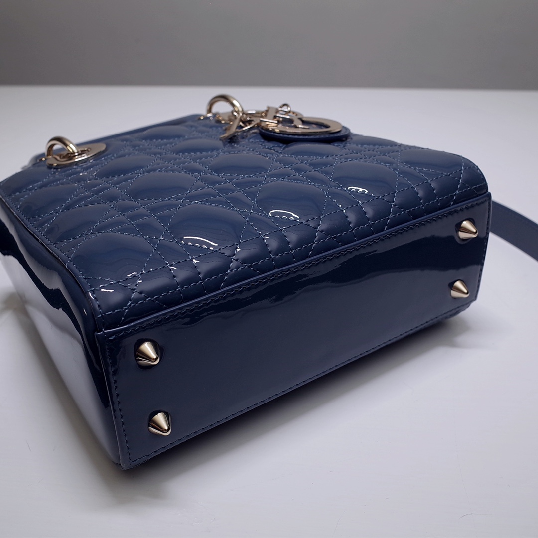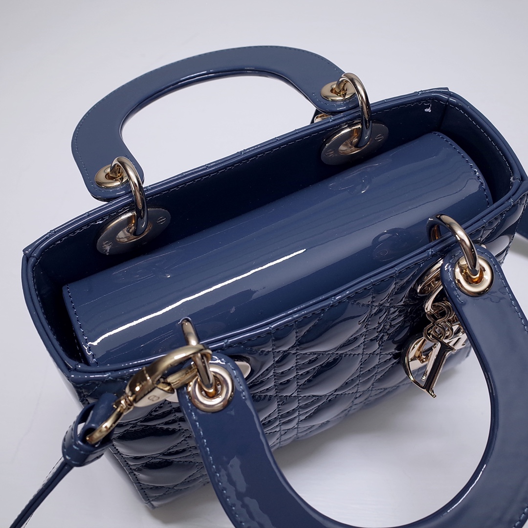 The Lady Dior My ABCDior bag epitomizes the House's vision of elegance and beauty. Sleek and refined, the timeless style is crafted in Ethereal green lambskin with Cannage stitching, creating the instantly recognizable quilted texture, while the pale gold-finish metal D.I.O.R. charms embellish and illuminate the silhouette. Featuring a shoulder strap that can be customized by adding badges, the small, unique style may be carried by hand or worn crossbody.