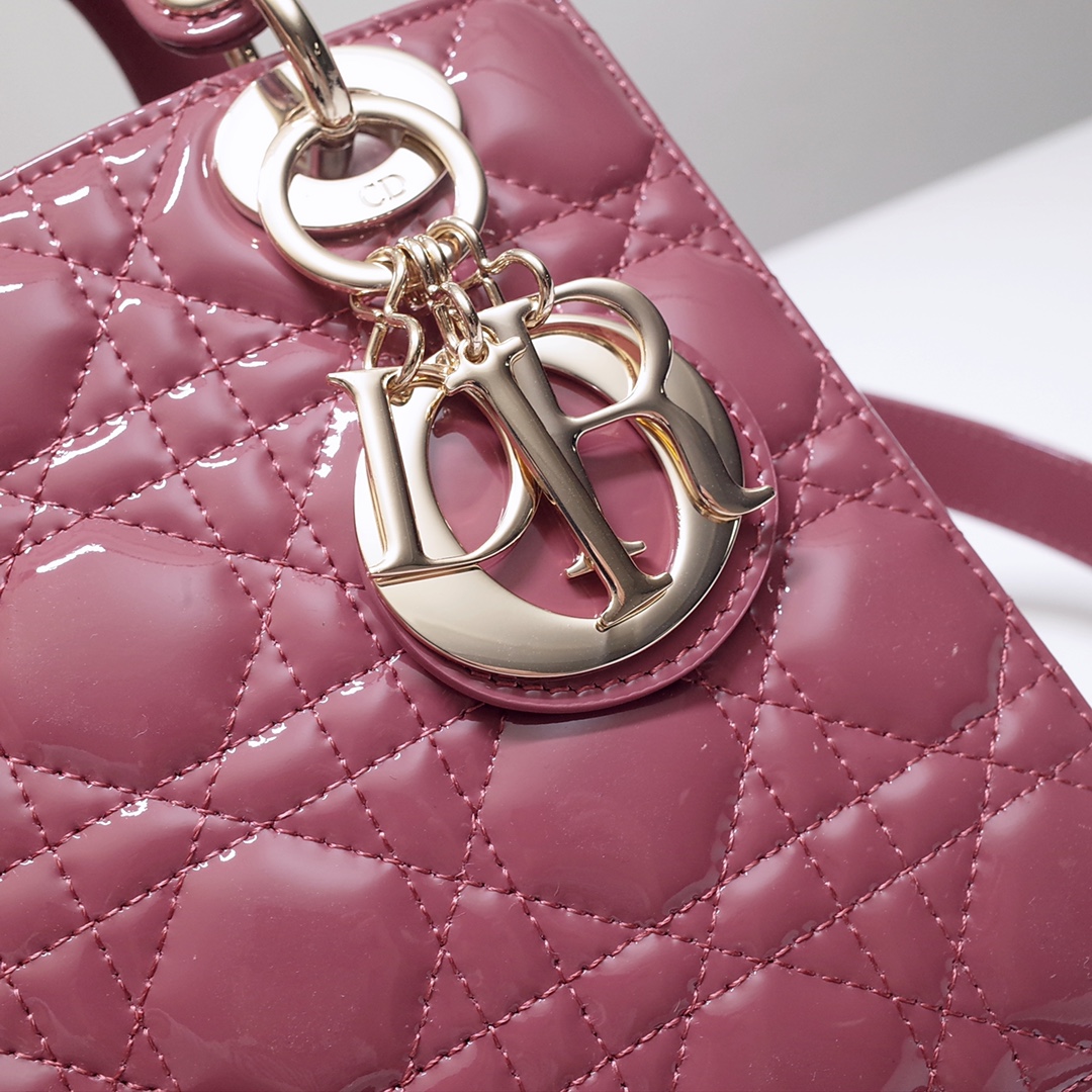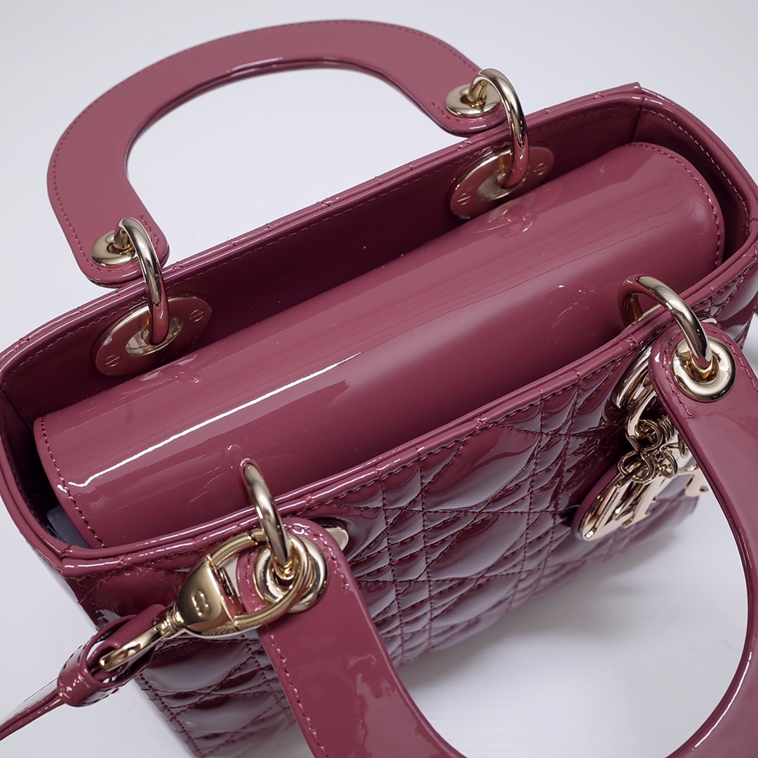 Small Lady Di Bag Hibiscus Powder Patent Cannage Calfskin