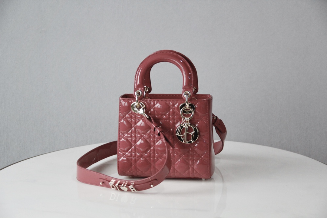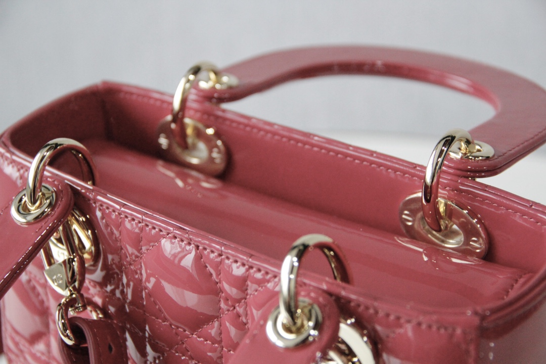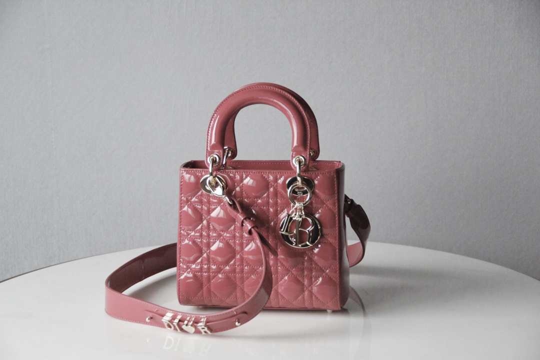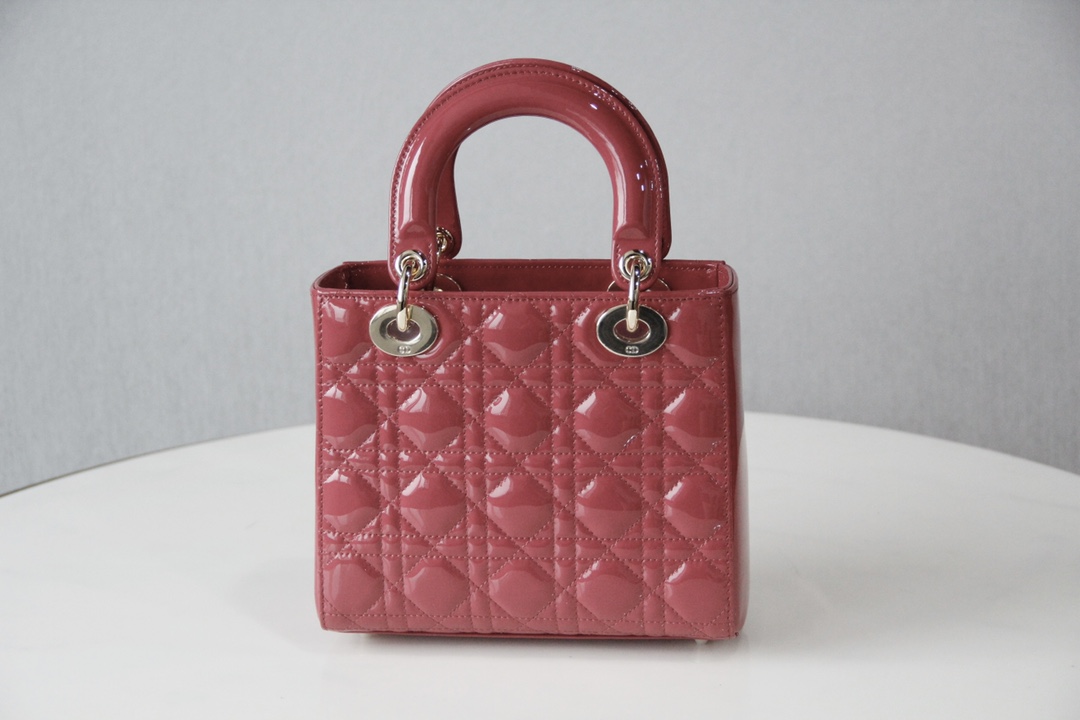 Small Lady Dior Bag Pink Patent Cannage Calfskin