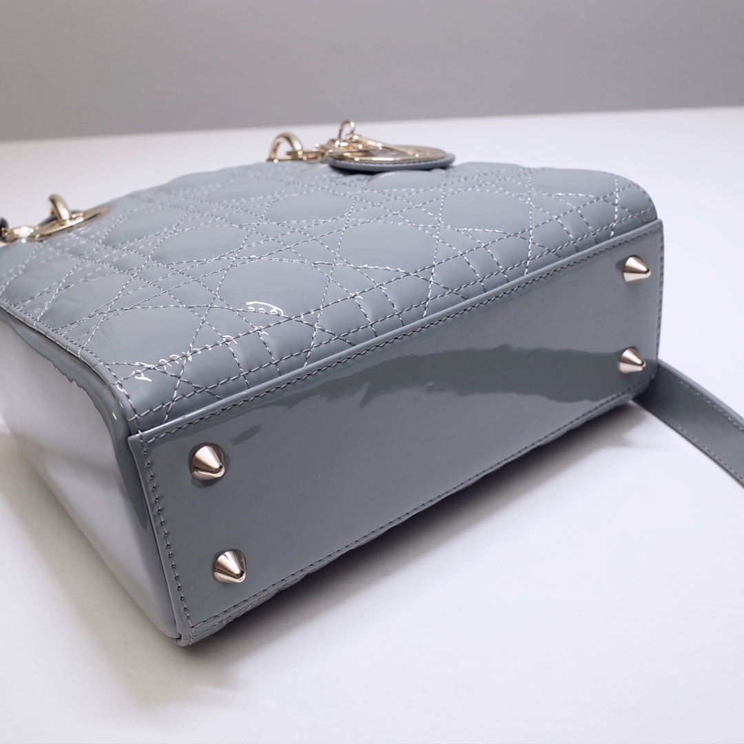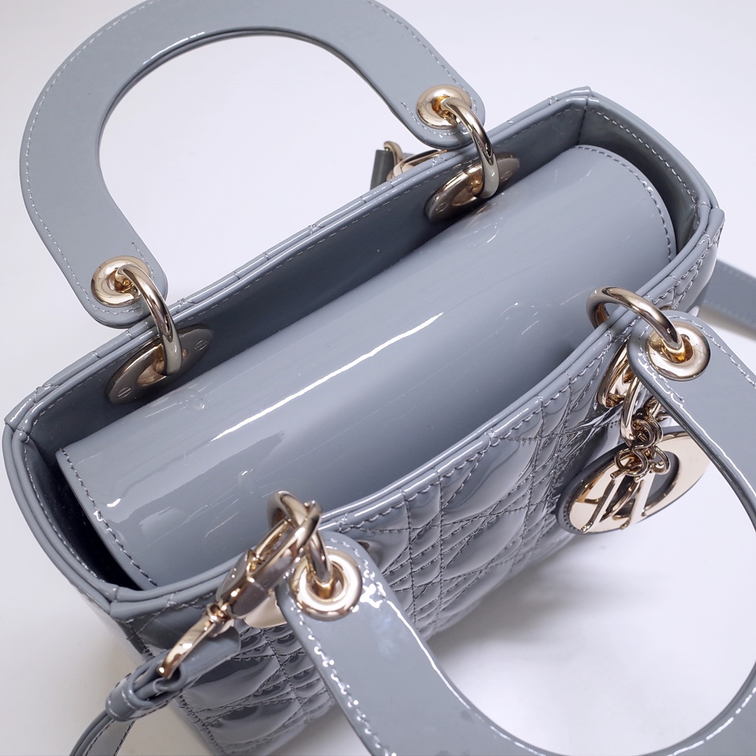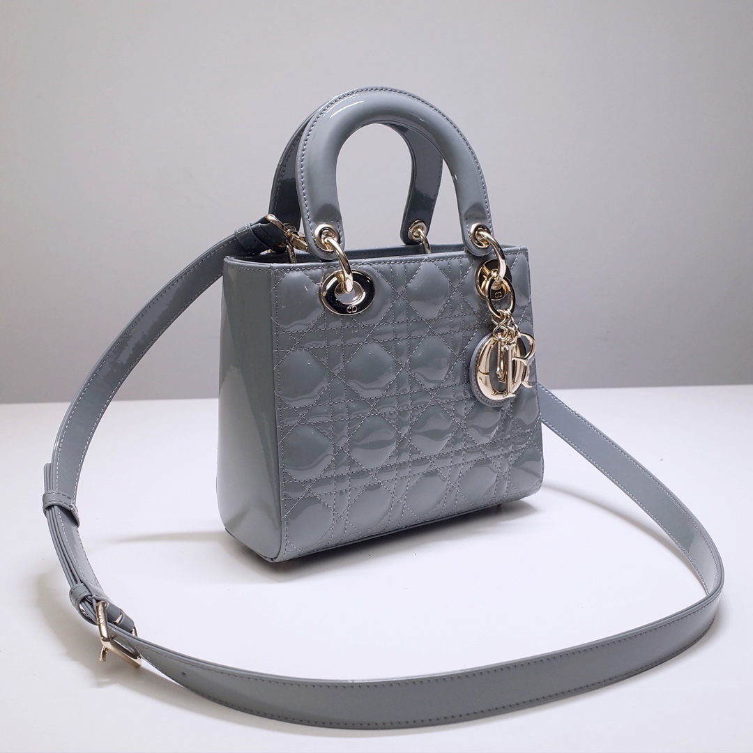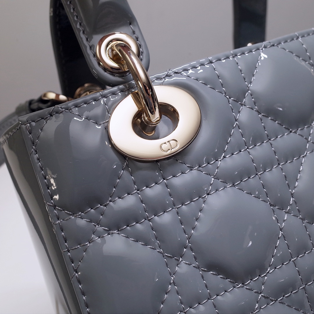Small Lady Dior Bag rock ash Patent Cannage Calfskin