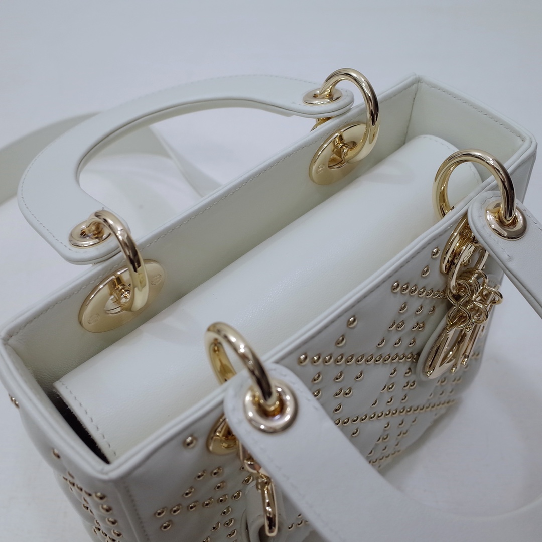 Small Lady Dior Bag White Lucky Star Cannage Lambskin