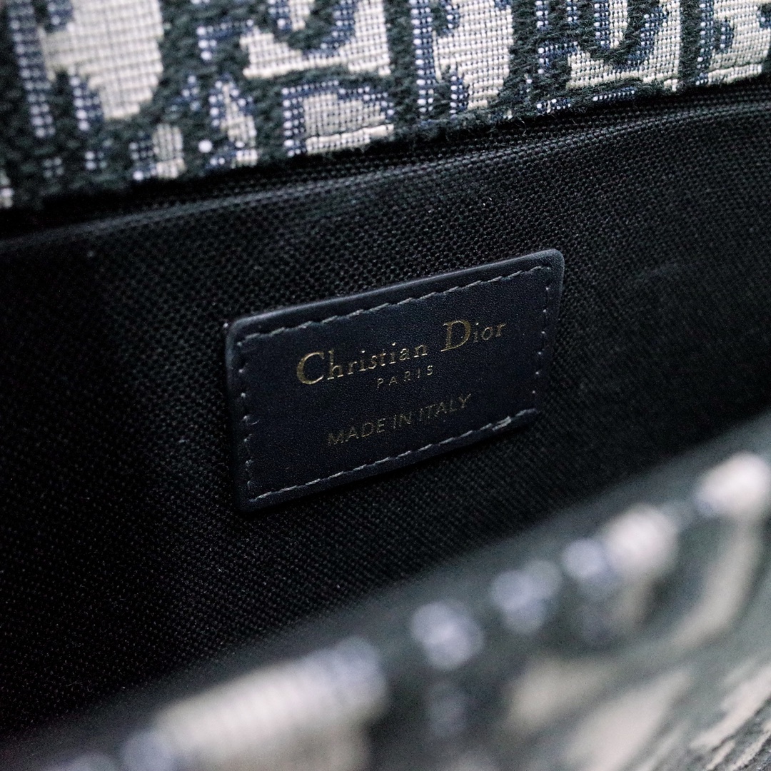 • Adjustable leather shoulder strap with 'Christian Dior' military-inspired buckle