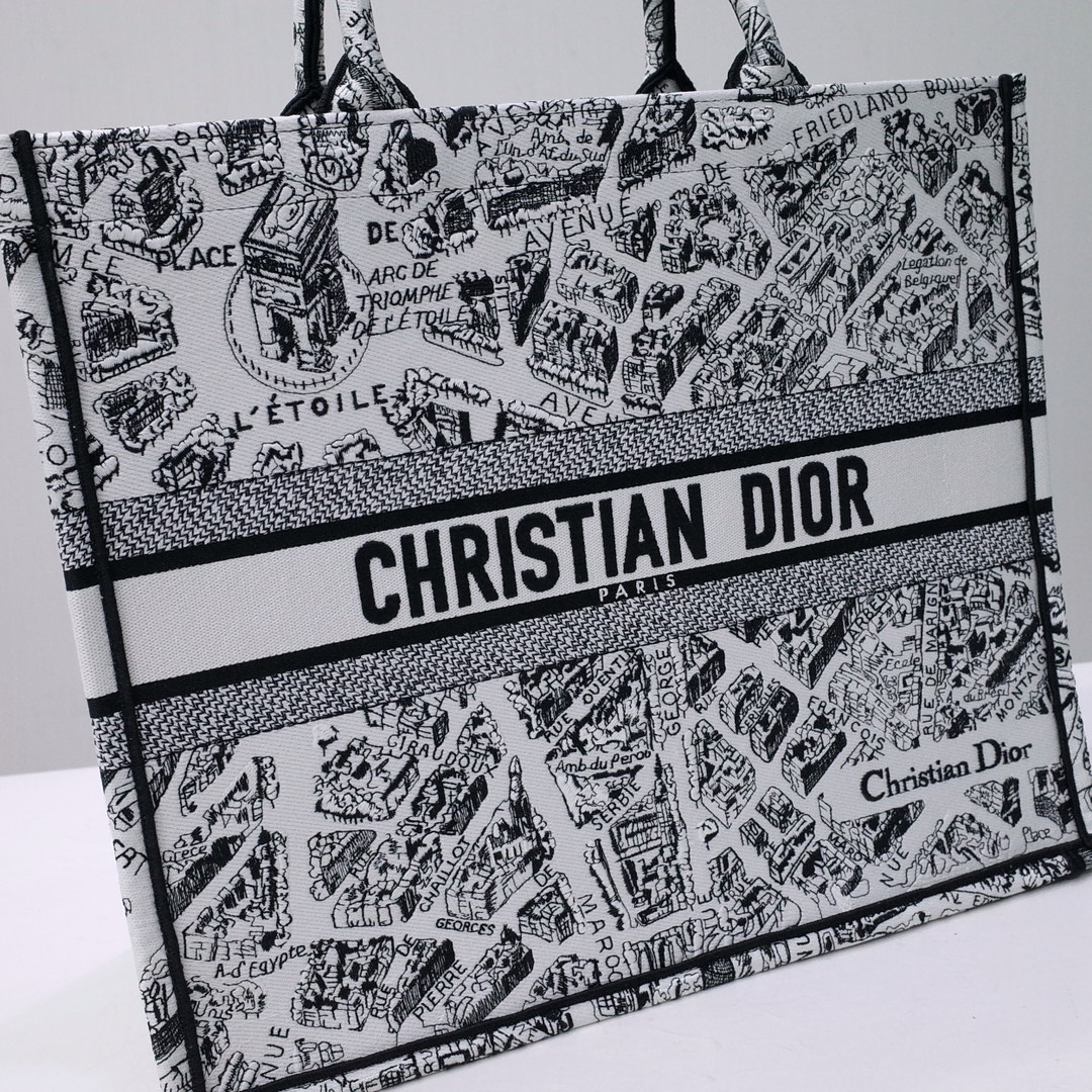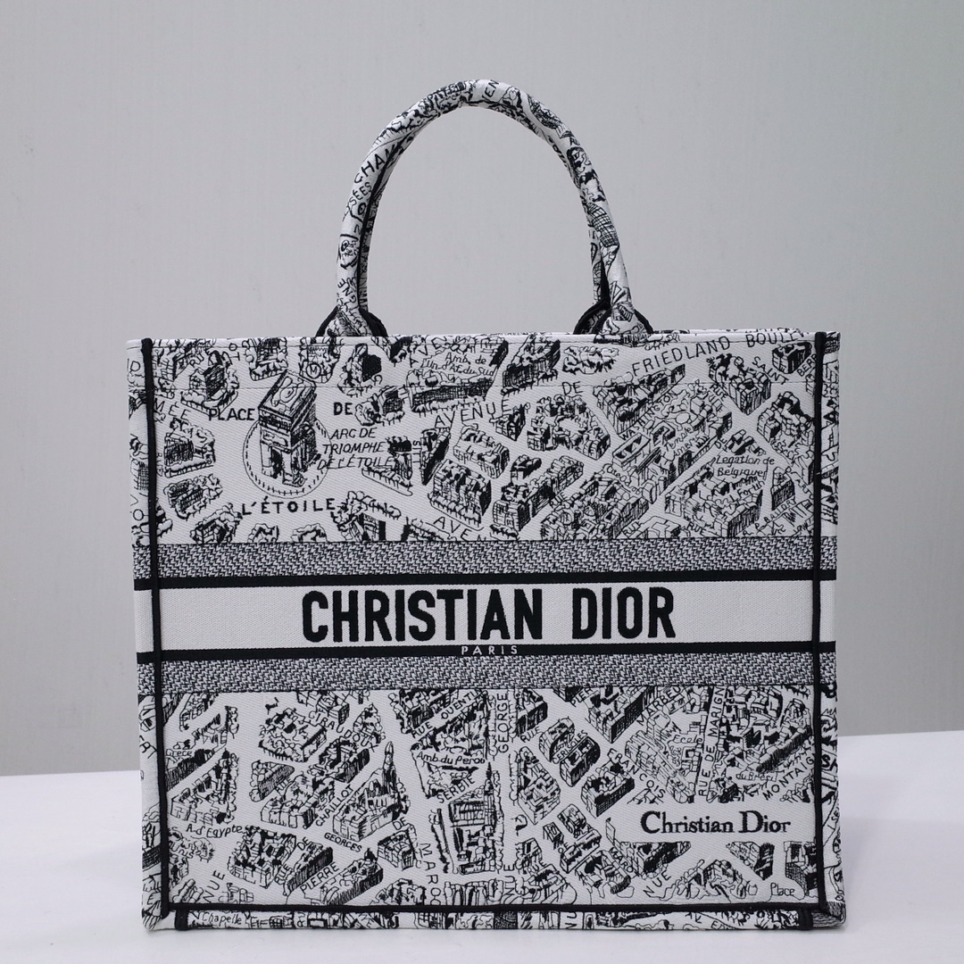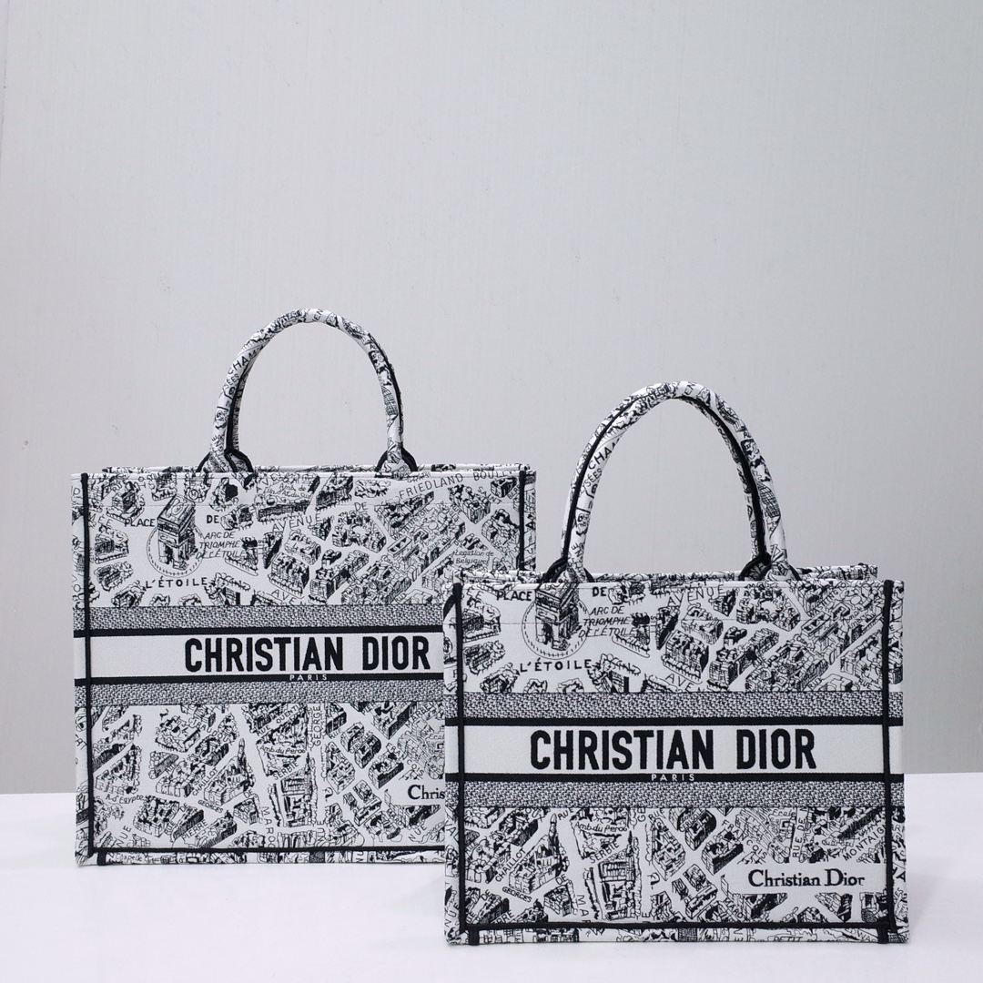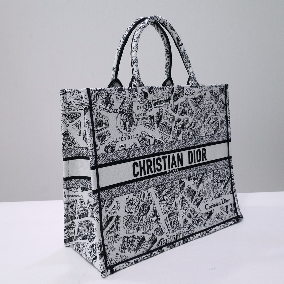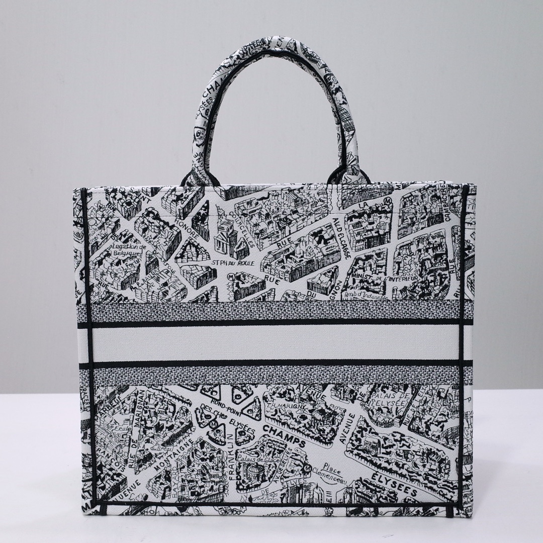 • Dior Book Tote White and Black Plan de Paris Embroidery