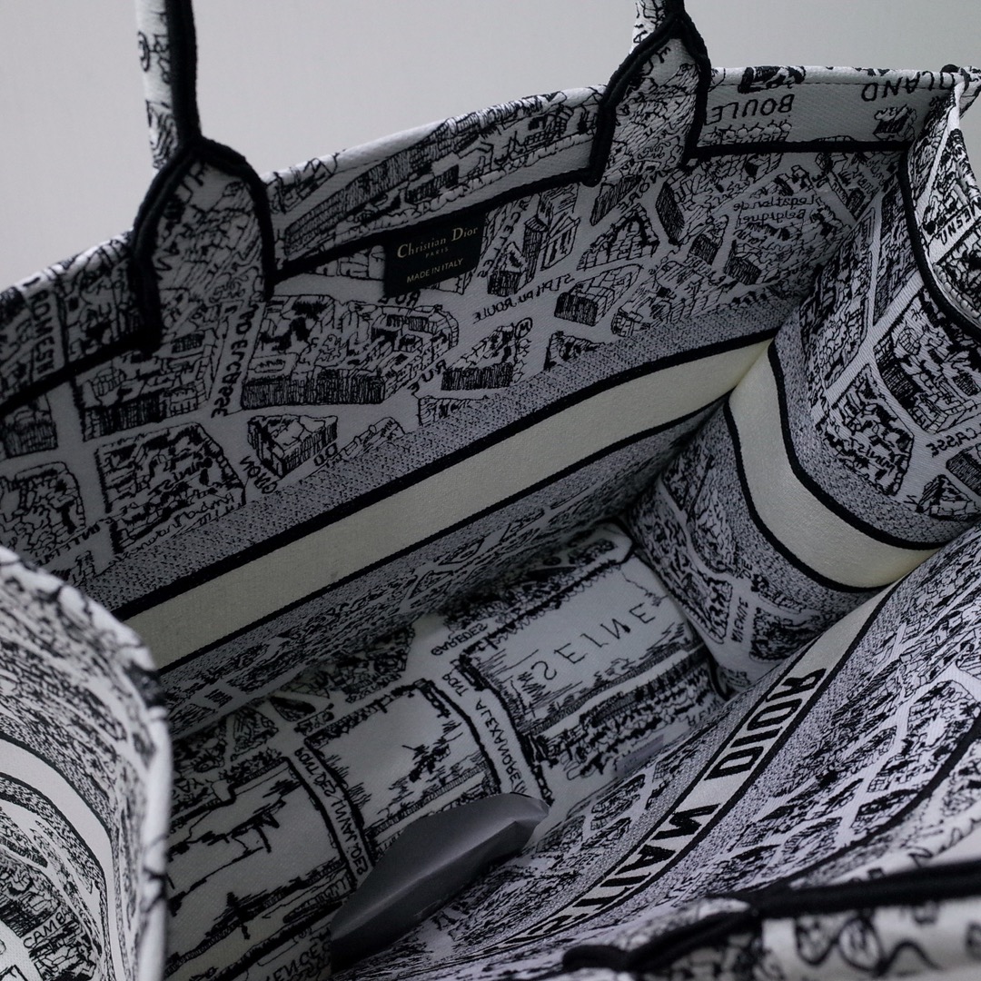 Dior Book Tote White and Black Plan de Paris Embroidery