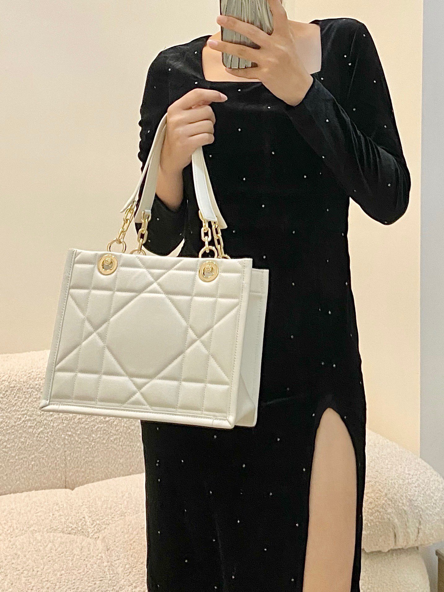 • Dior Essential Tote Bag White Archicannage Calfskin