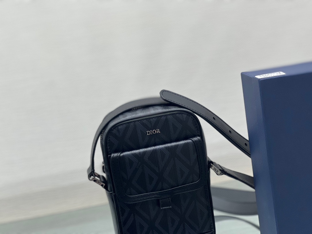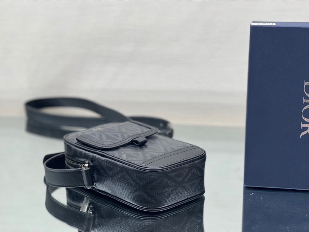 New for Fall 2022, the Dior Hit The Road pouch combines modernity with the House's couture spirit. Crafted in black CD Diamond canvas inspired by the House archives, it is enhanced by tonal smooth calfskin details and the Dior signature on the front. The style features a main zipped compartment that can accommodate a phone, as well as a flap pocket on the front for small essentials and a patch pocket on the back. Complete with a removable and adjustable leather shoulder strap, the practical pouch will lend the finishing touch to any casual outfit.