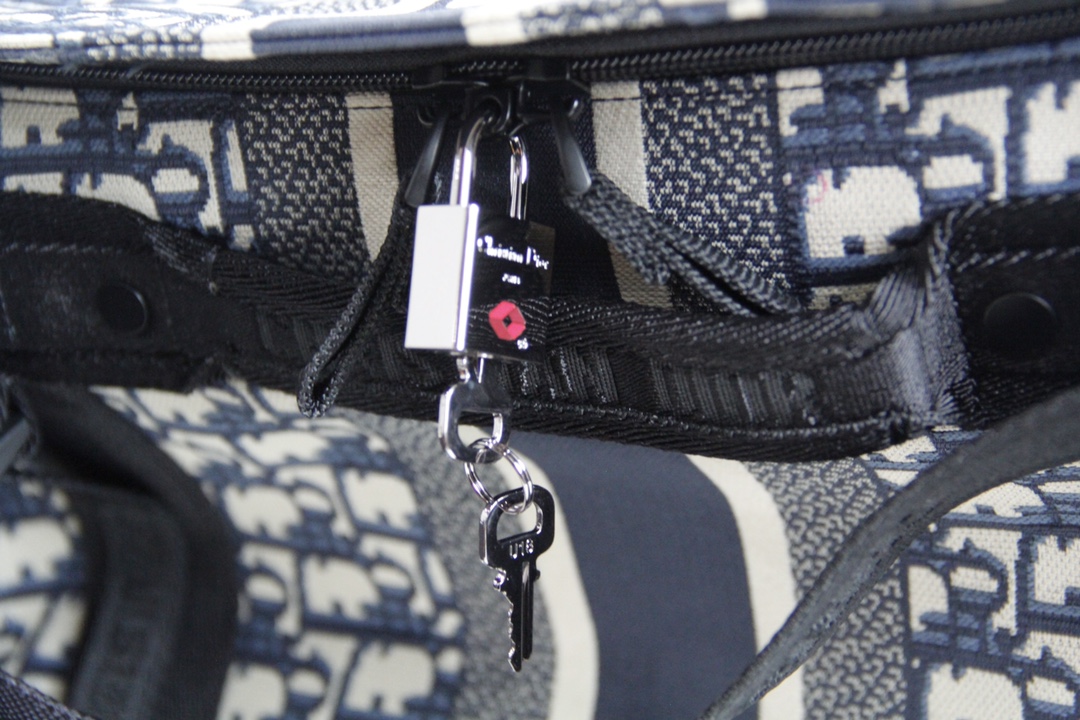 The DiorTravel backpack combines emblematic House elements with a modern and practical design. Made with blue waterproof Dior Oblique technical jacquard, it is embellished with a 'CHRISTIAN DIOR PARIS' signature on the front. The large zipped flap opens with ease to access all the essentials. The large backpack can be carried by hand, worn over the shoulder or on the back thanks to its handle and straps.