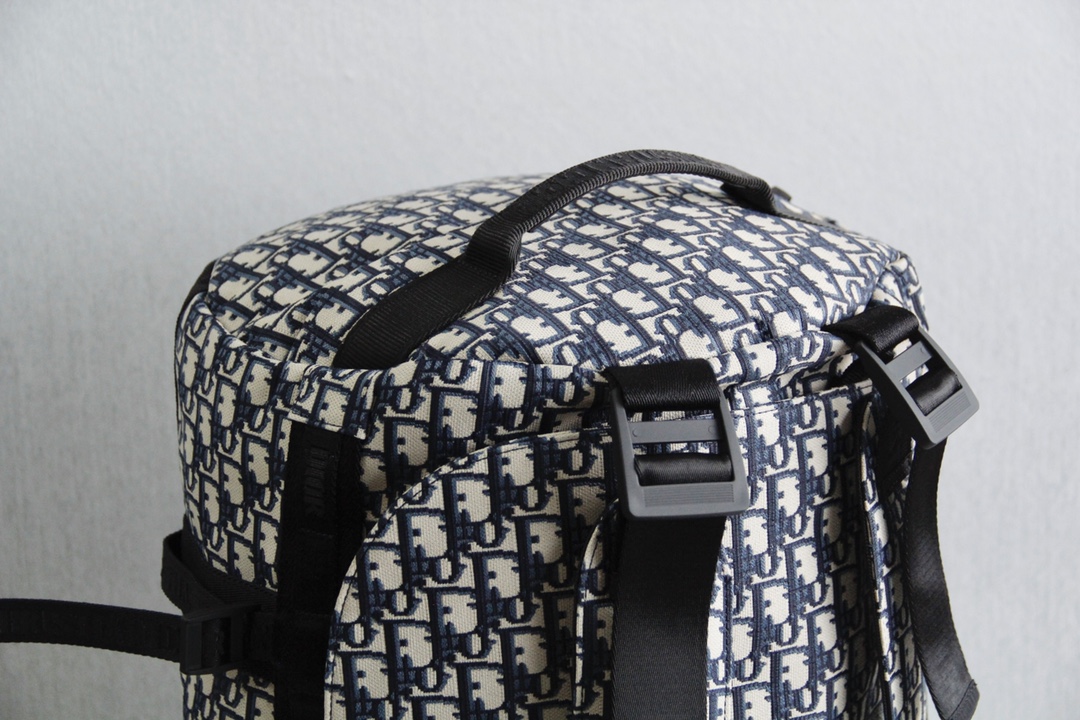 • Large DiorTravel Backpack Blue Dior Oblique Technical Jacquard