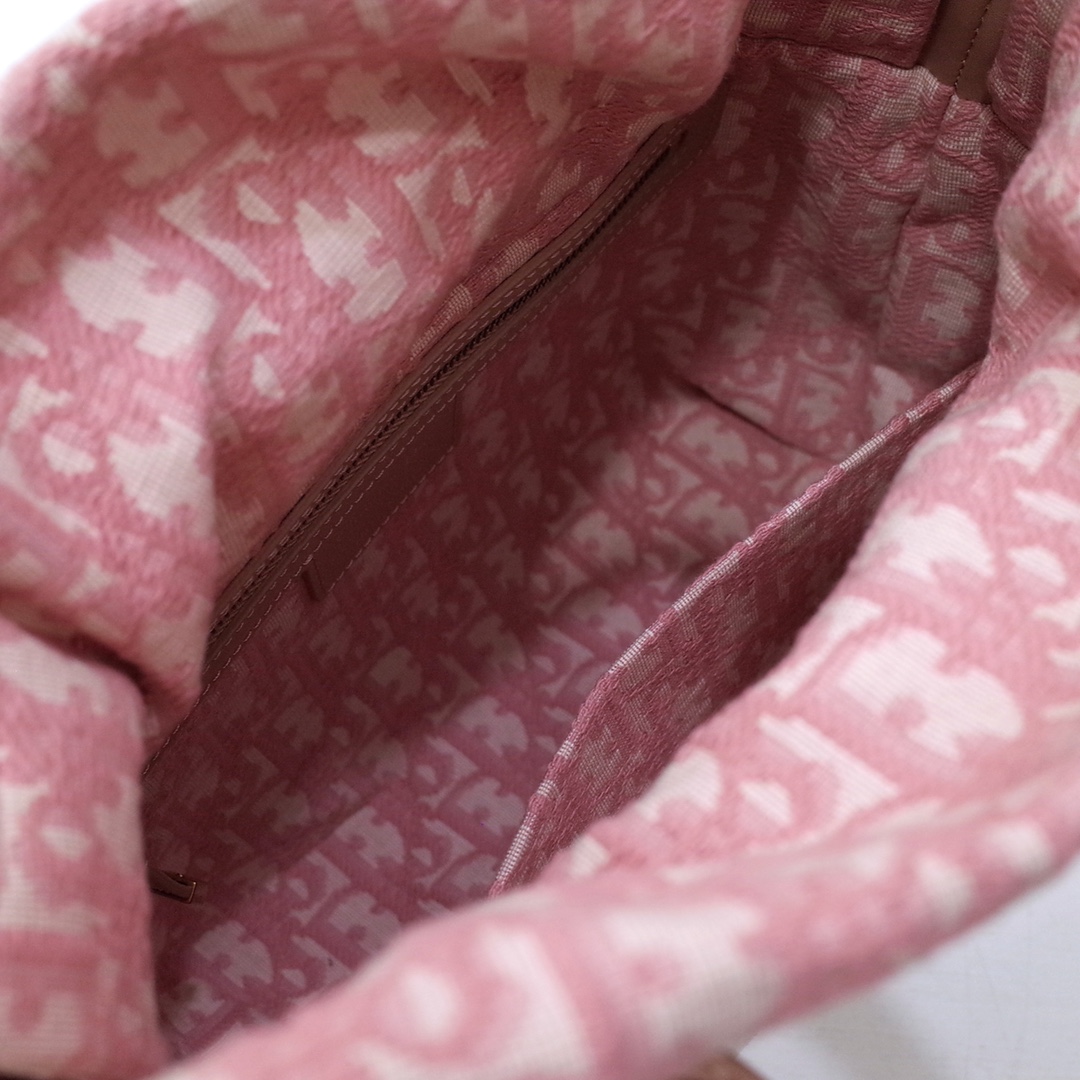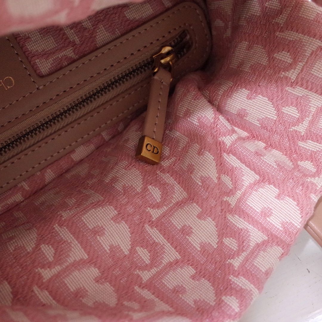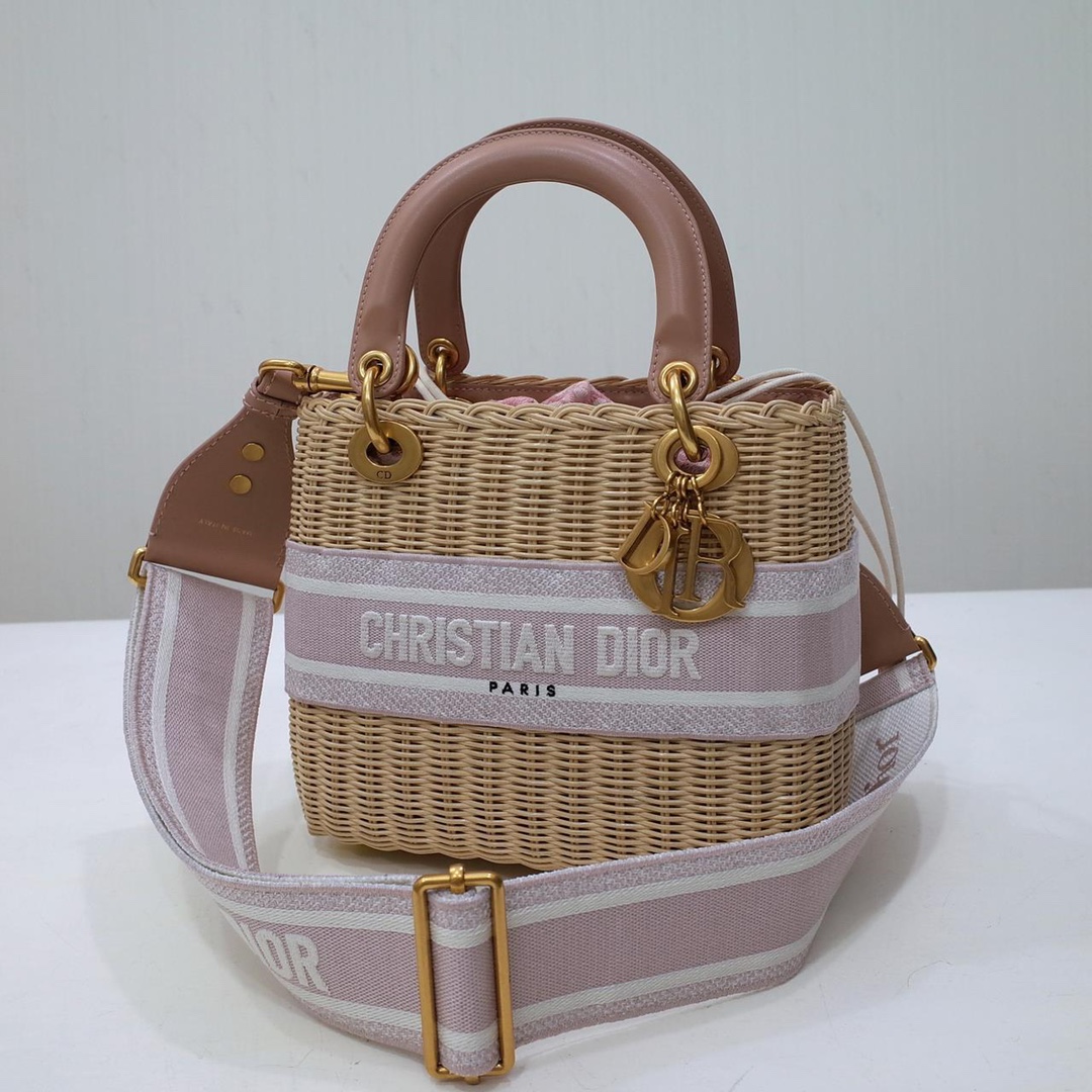 Medium Lady Dior Bag Natural Wicker and pink Dior Oblique Jacquard