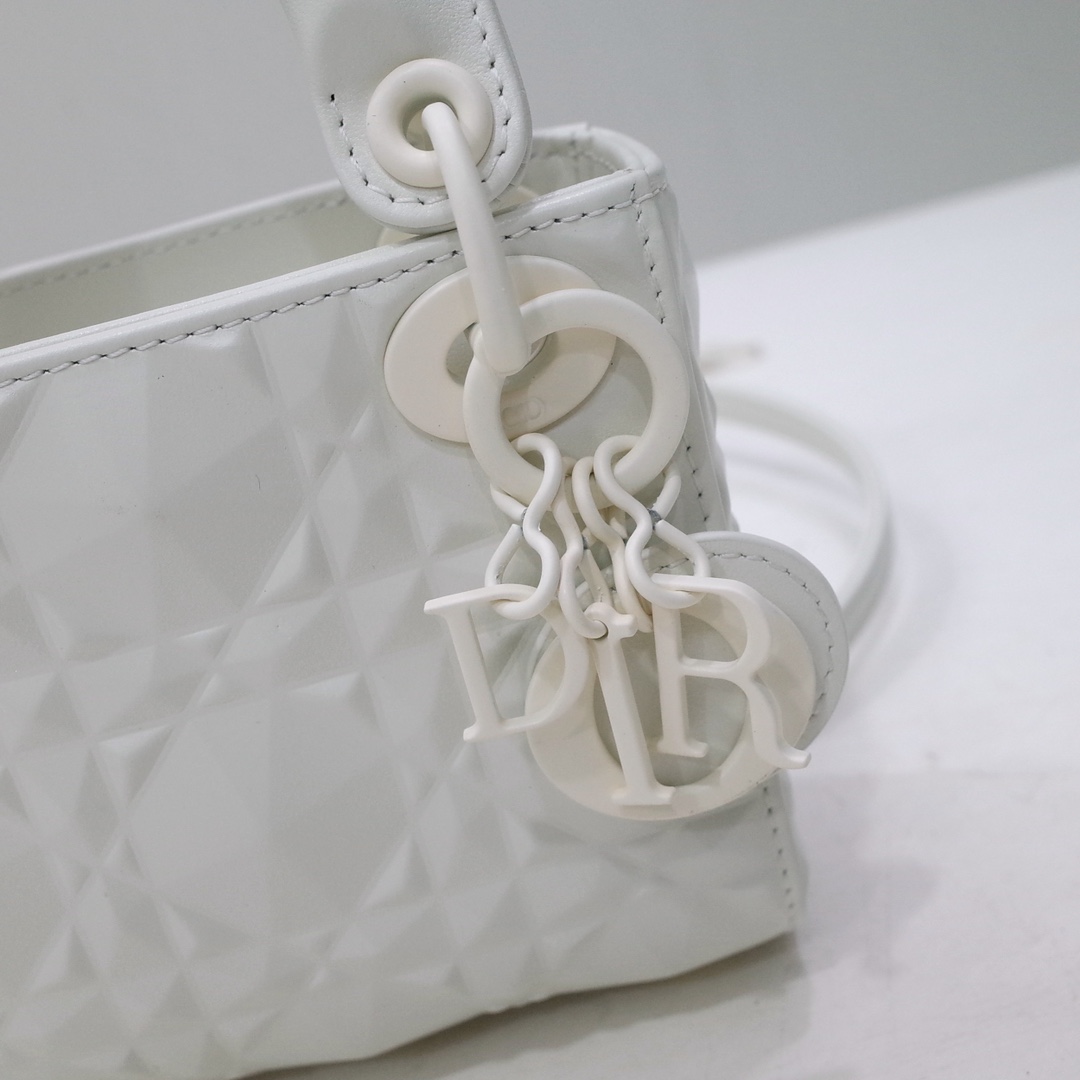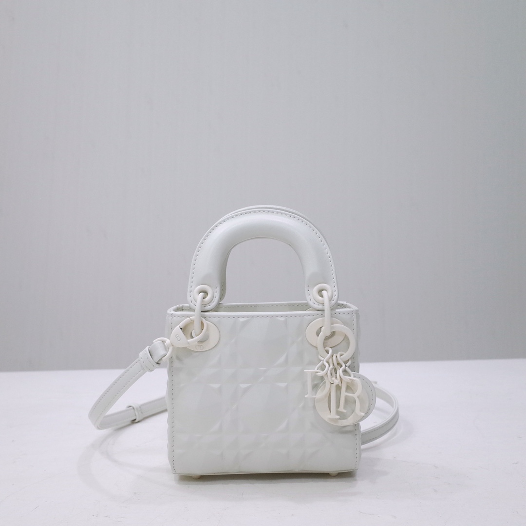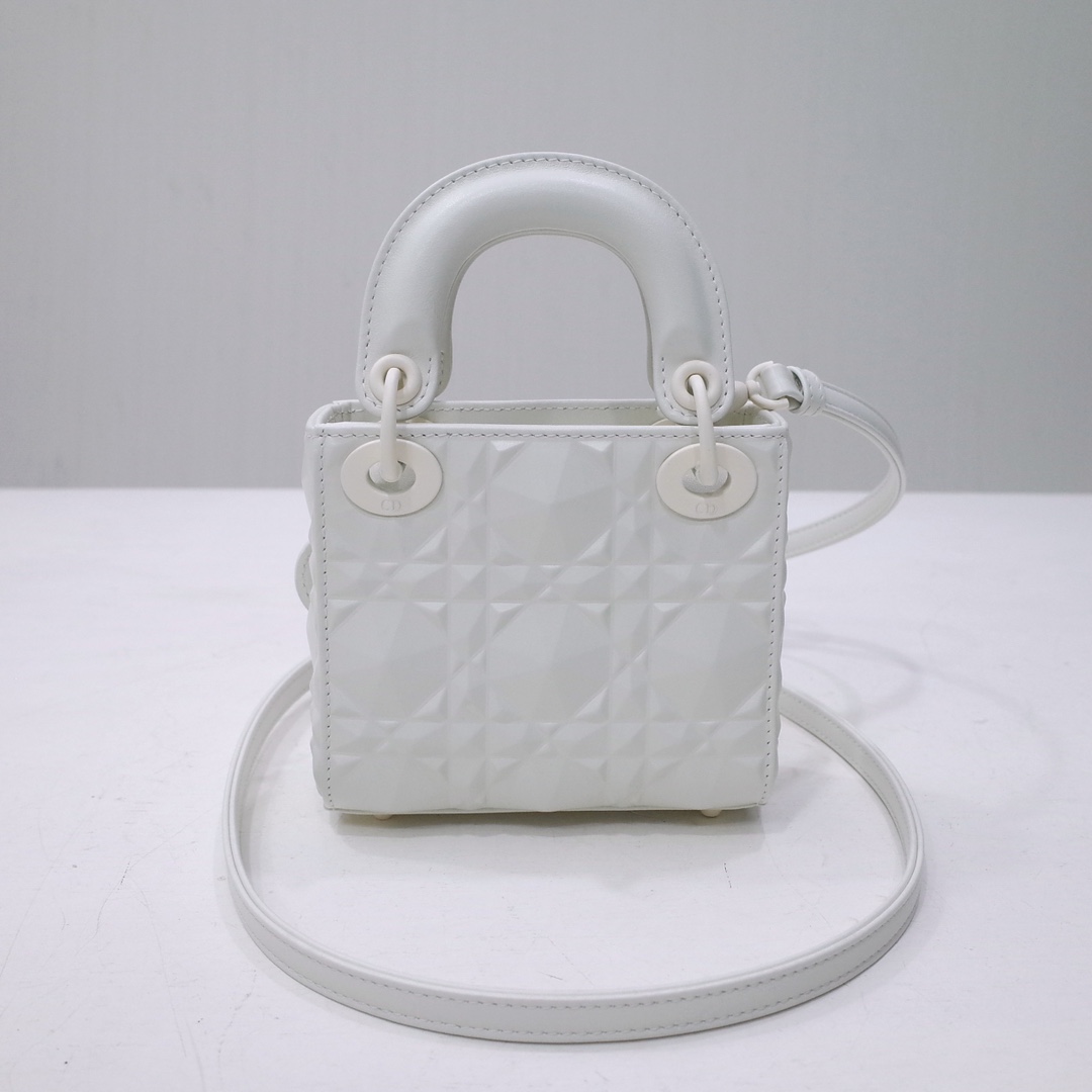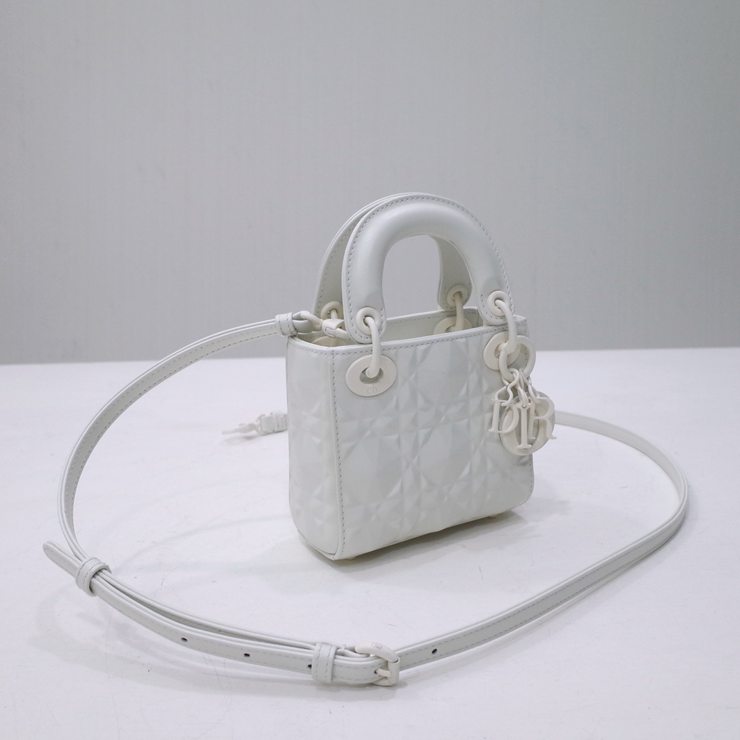 The Lady Dior bag embodies the House's vision of elegance and beauty. Crafted in latte lambskin with signature Cannage topstitching, its iconic silhouette is embellished with a 'D.I.O.R.' charm. The micro Lady Dior bag can accommodate all the daily essentials and features an adjustable and removable shoulder strap, allowing it to be carried by hand, worn over the shoulder or crossbody.