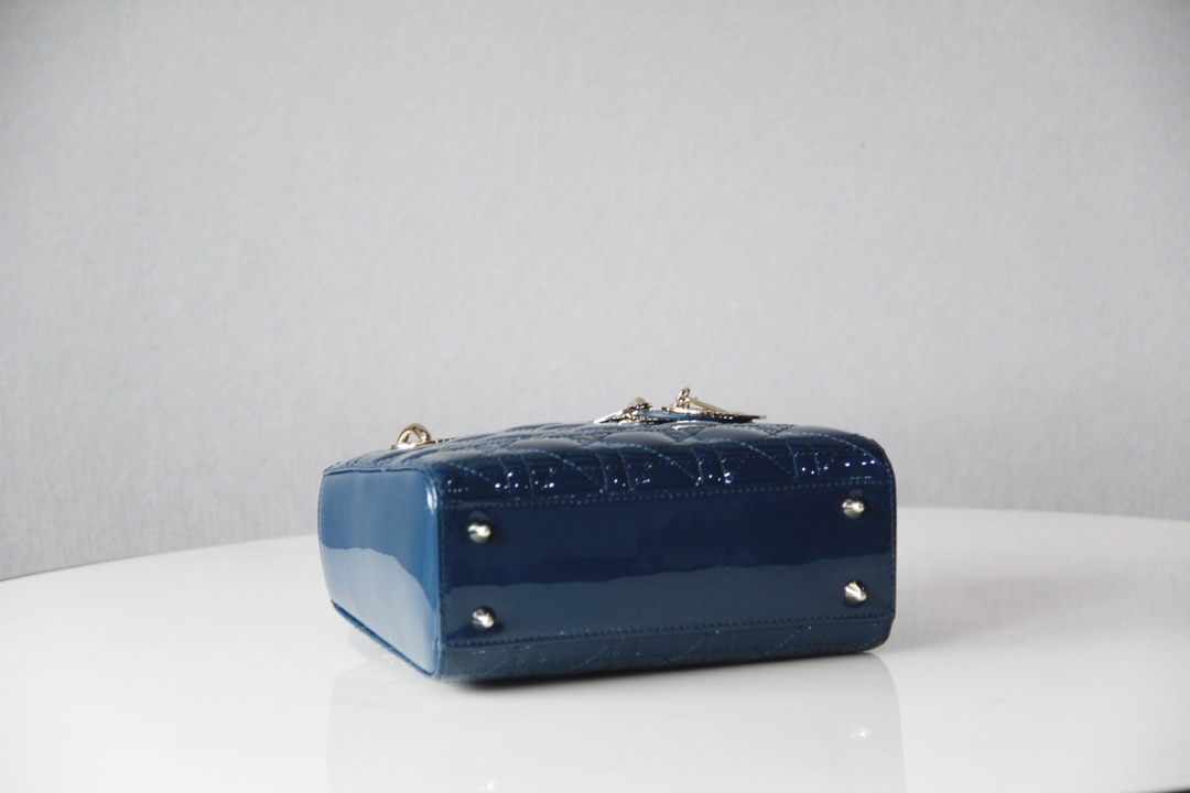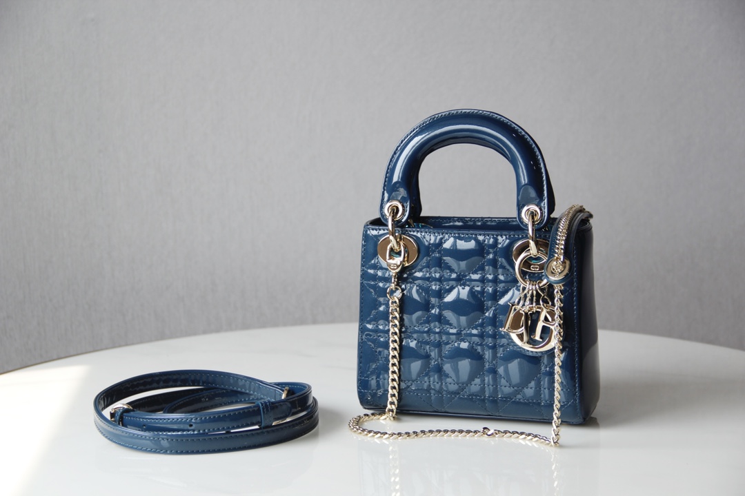 • Mini Lady Dior Bag Indigo Blue Patent Cannage Calfskin
