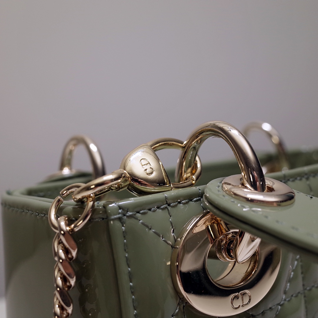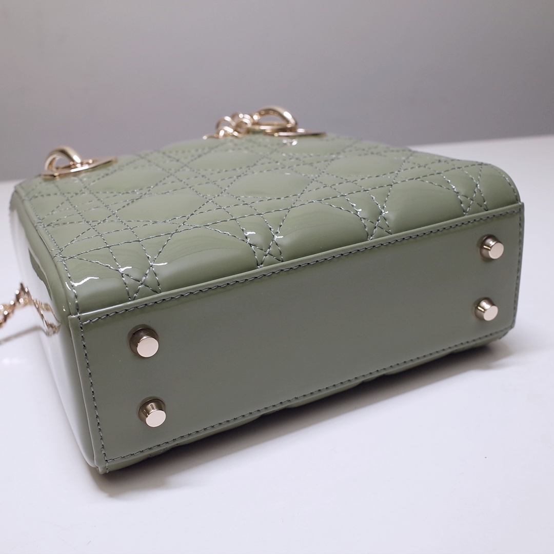 • Mini Lady Dior Bag Sage Green Patent Cannage Calfskin gold buckle