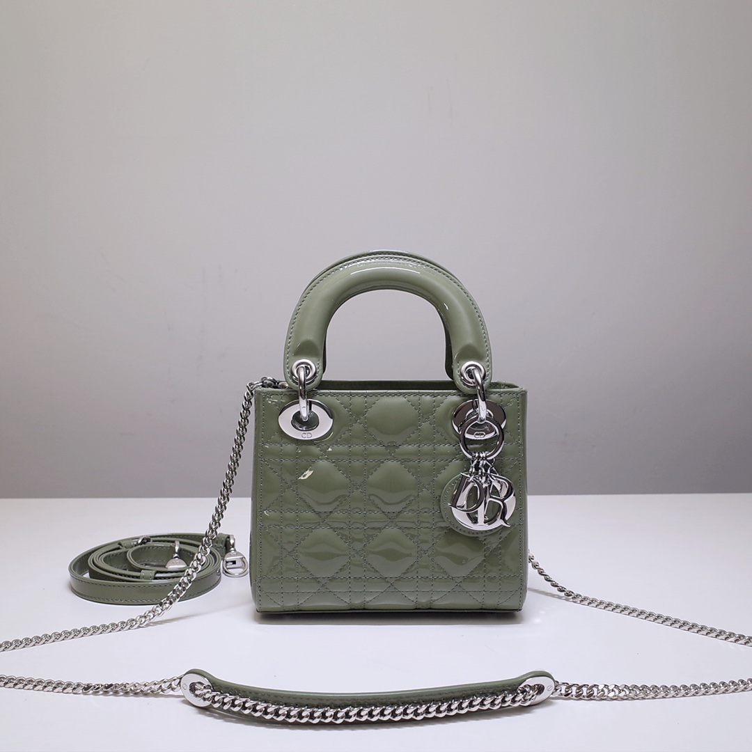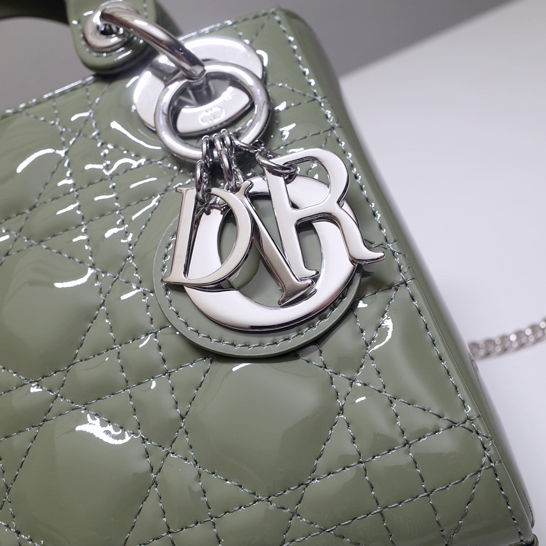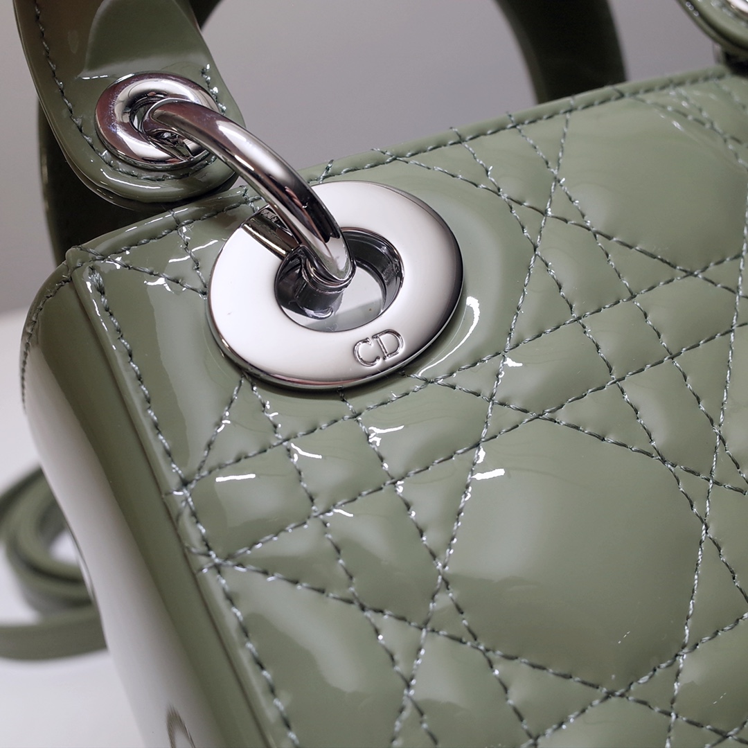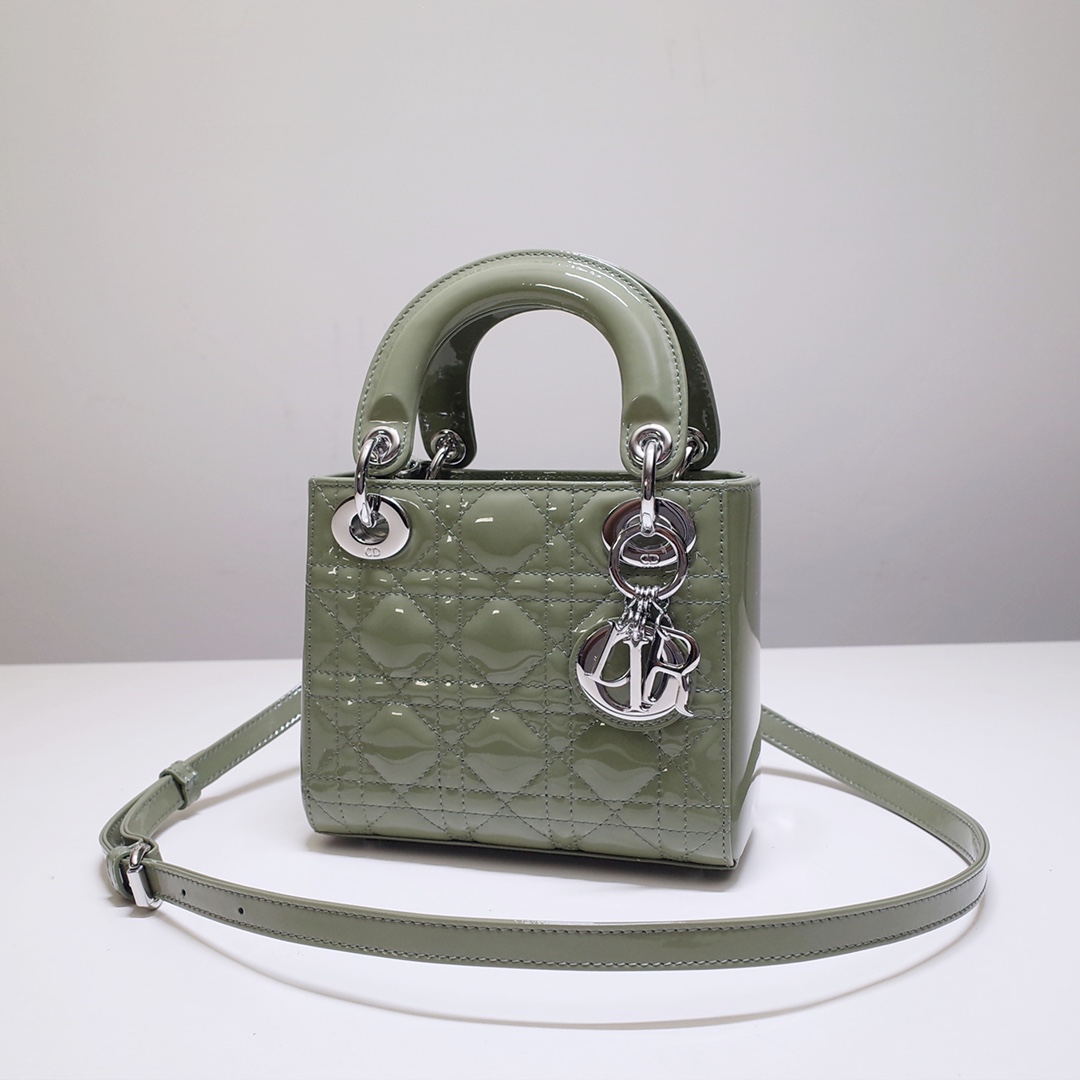 • Mini Lady Dior Bag Sage Green Patent Cannage Calfskin gold buckle