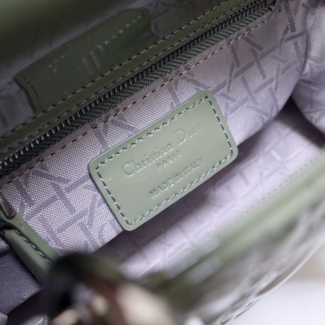 Mini Lady Dior Bag Sage Green Patent Cannage Calfskin gold buckle