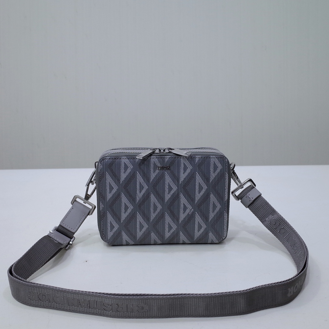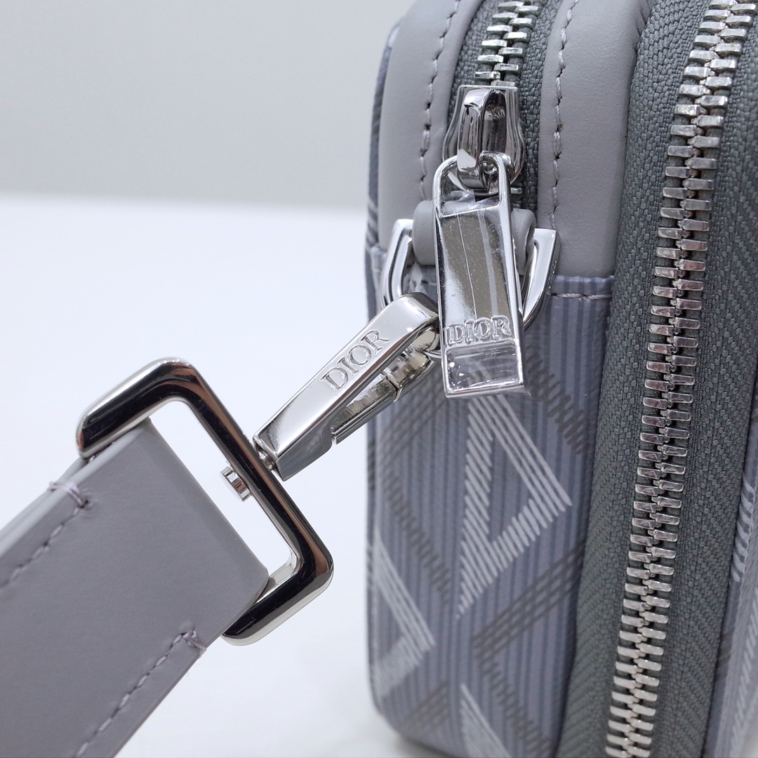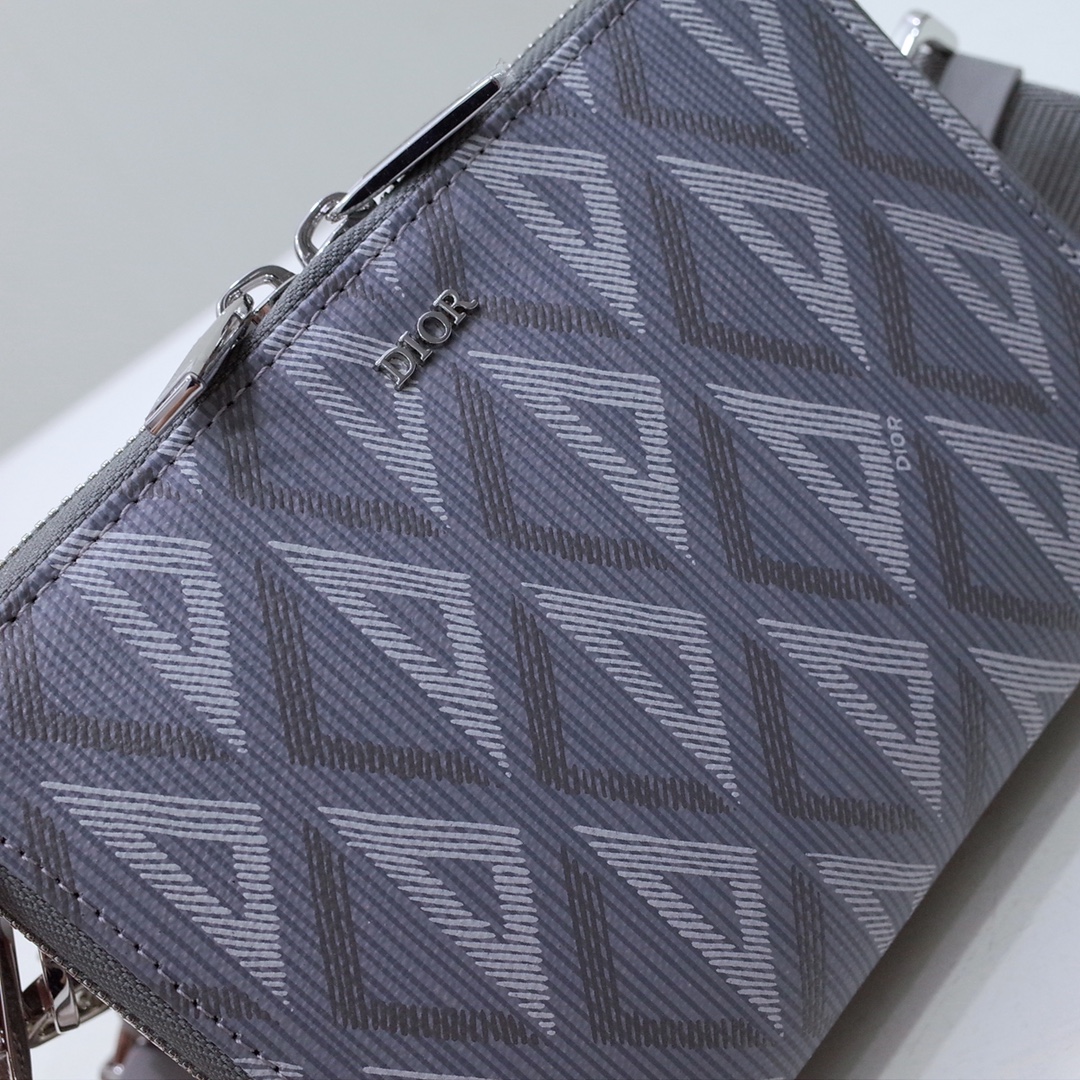 Pouch with Strap Dior Gray CD Diamond Canvas