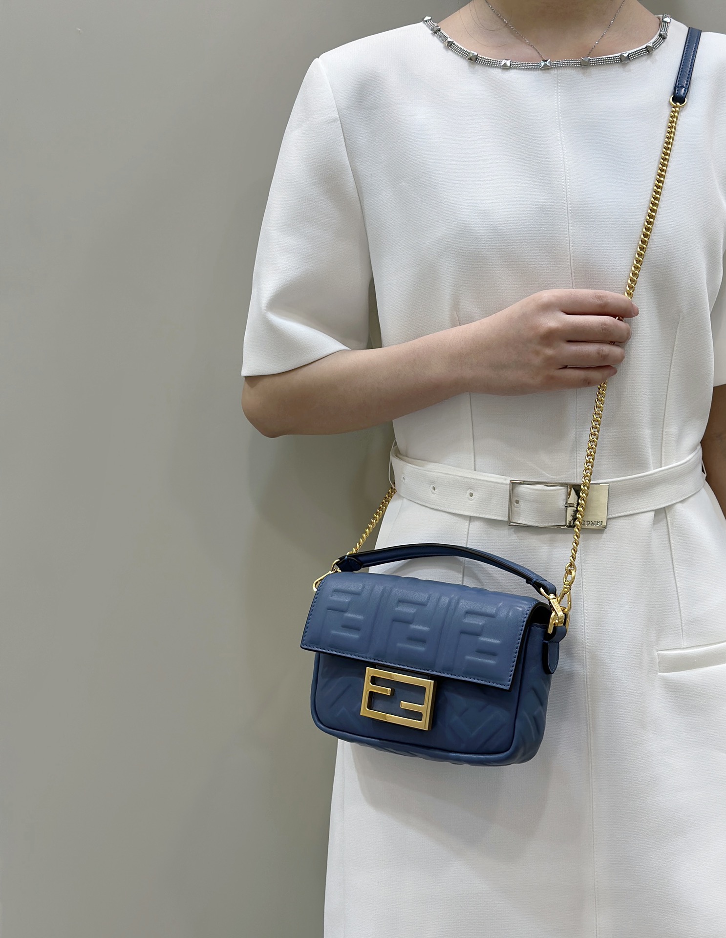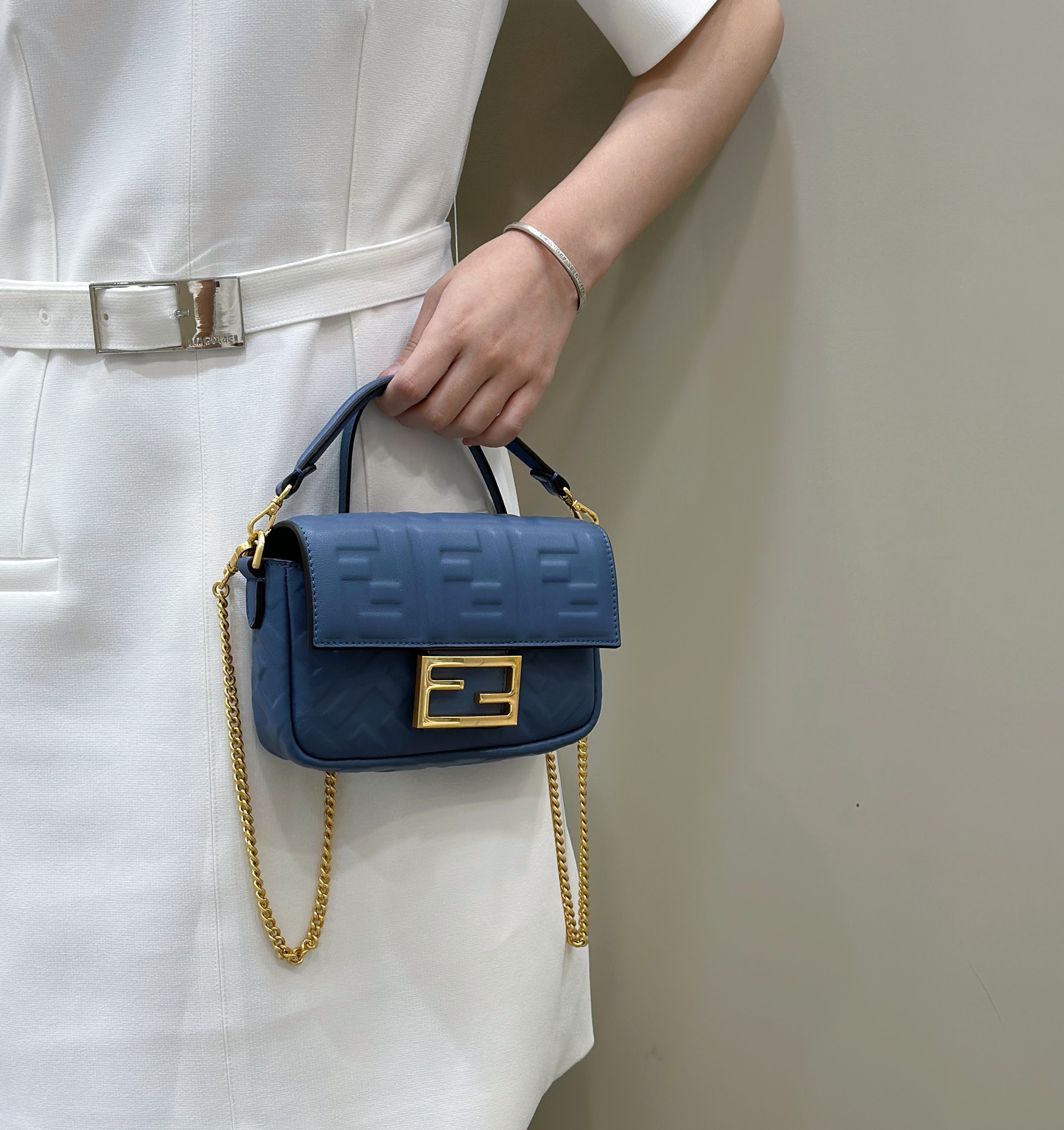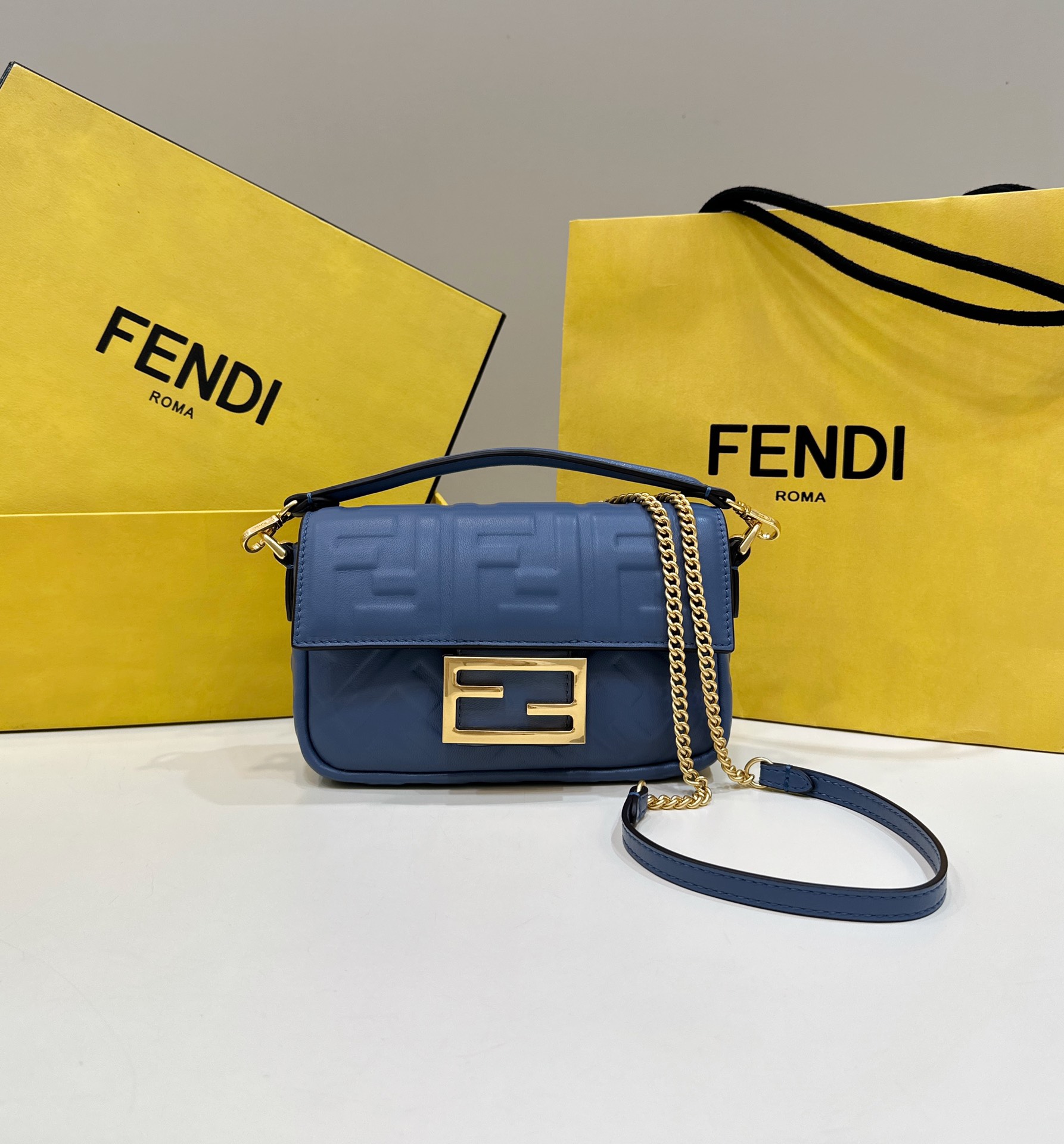 • Fendi Baguette Mini blue nappa leather bag