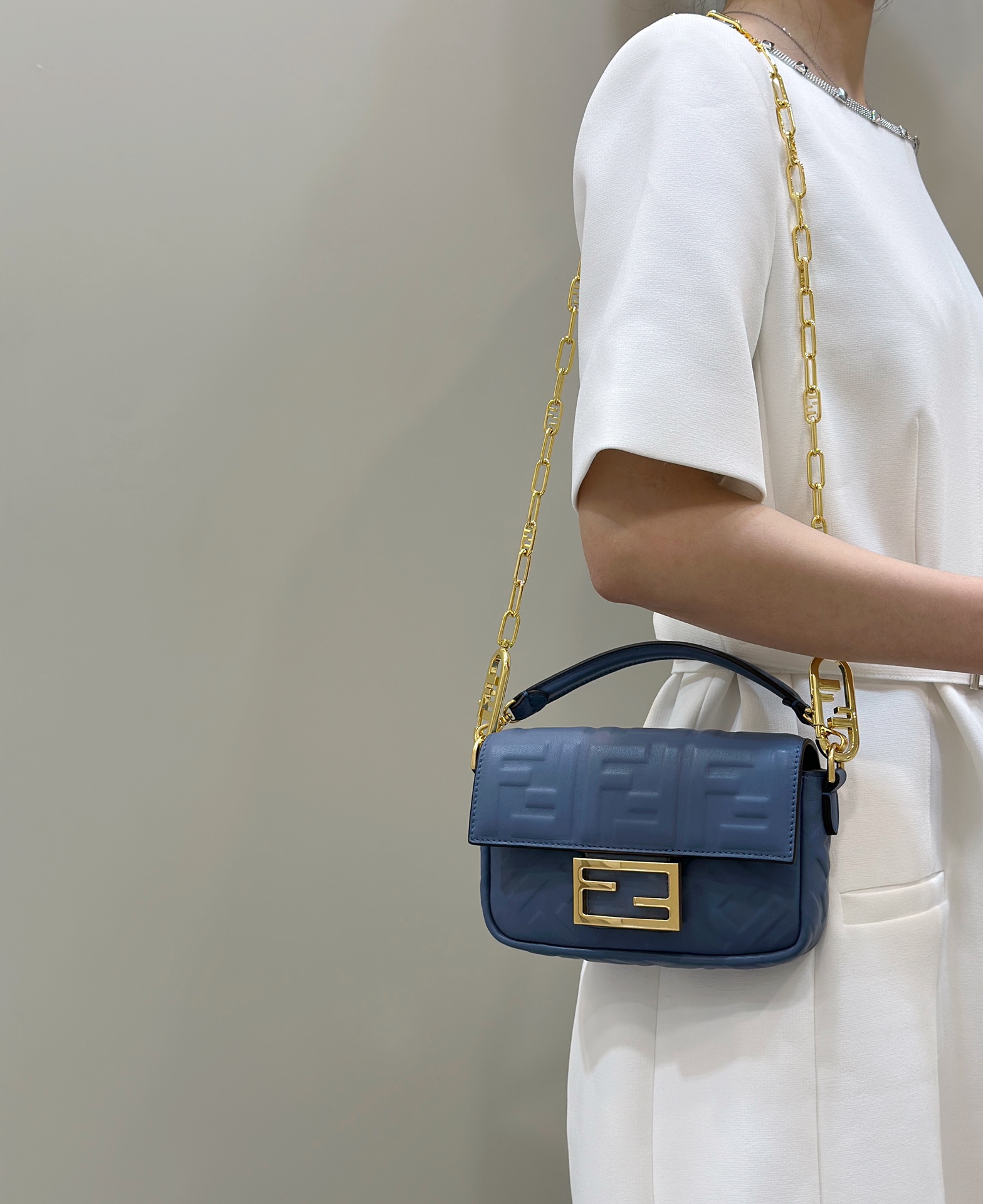 Classic relief baguette, with soft sheepskin texture and exquisite craftsmanship in both bag shape and quality. Featuring an integrated sliding chain shoulder strap that is not removable, achieving a seamless and unified design.