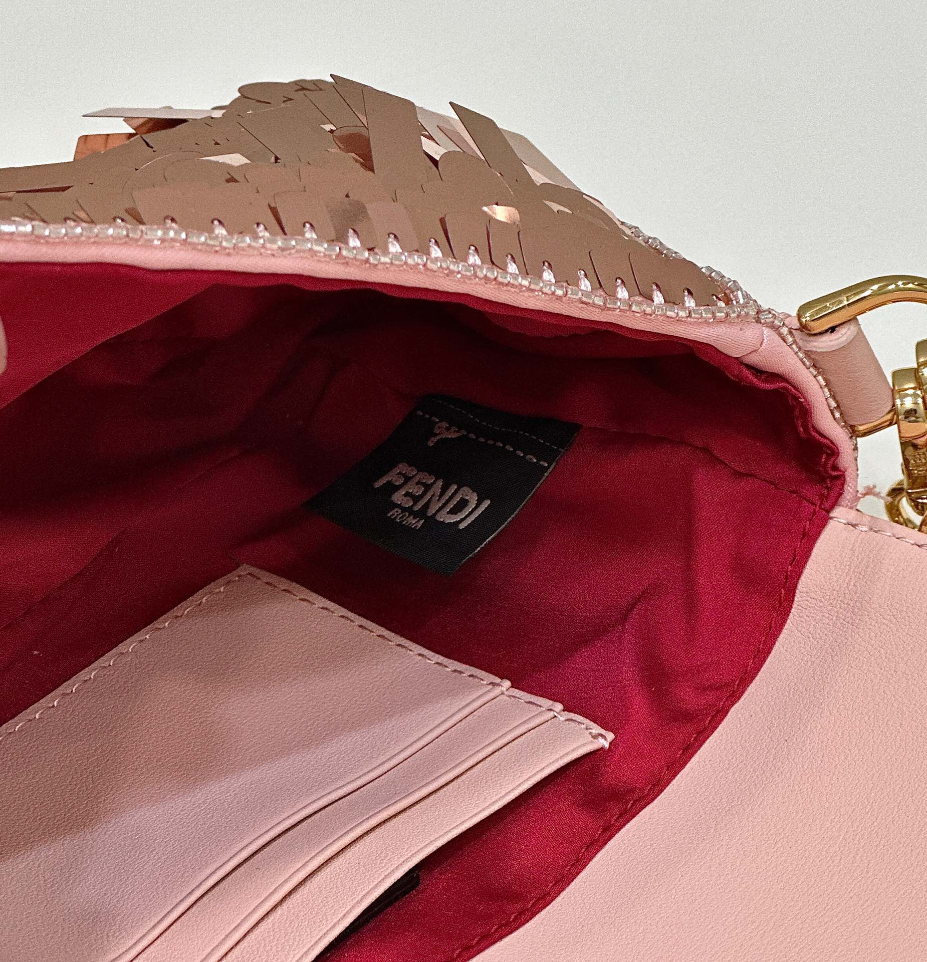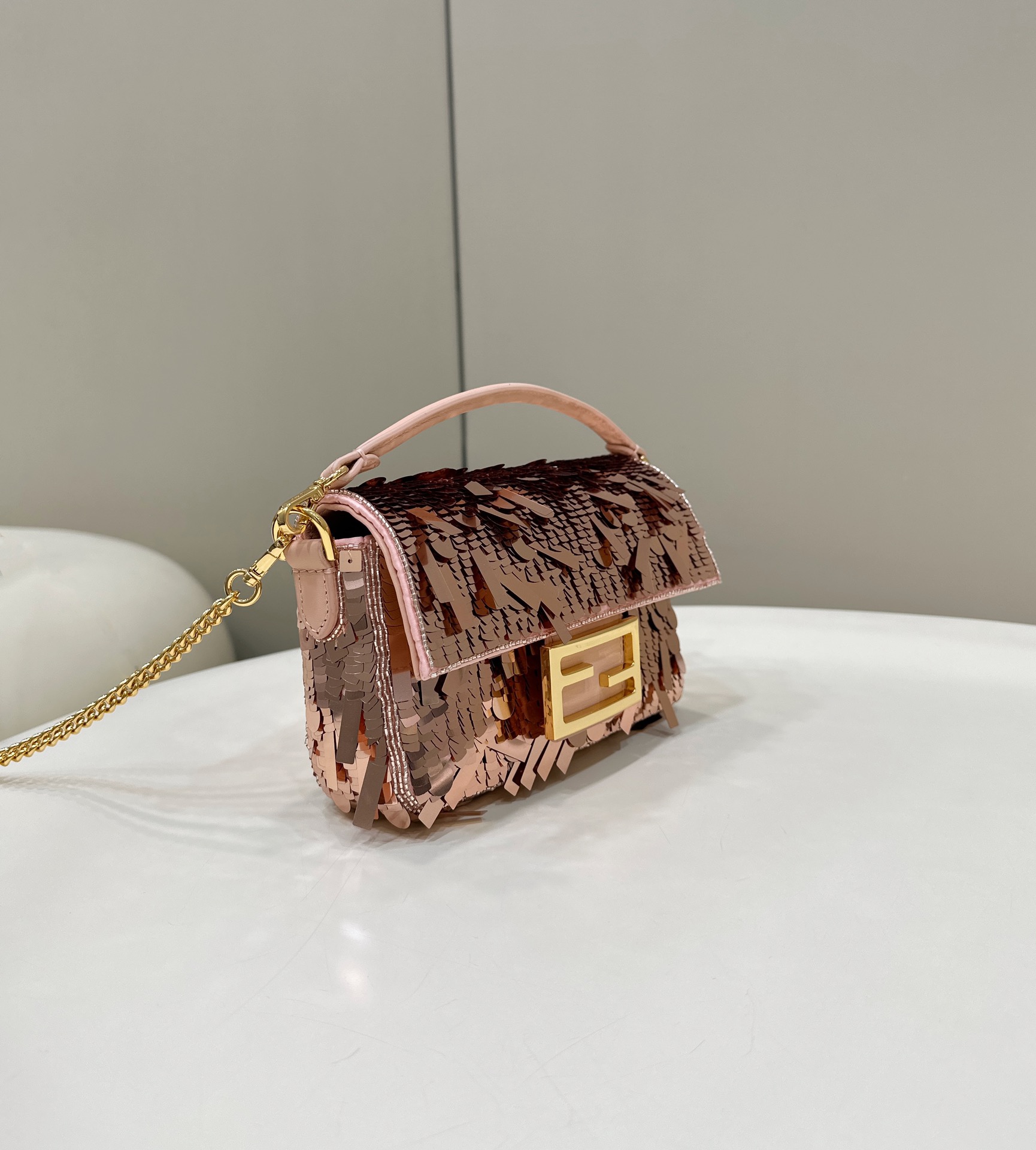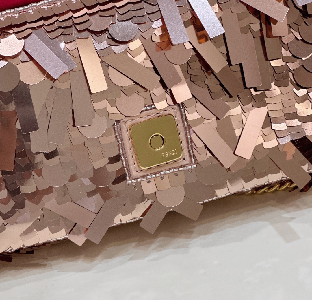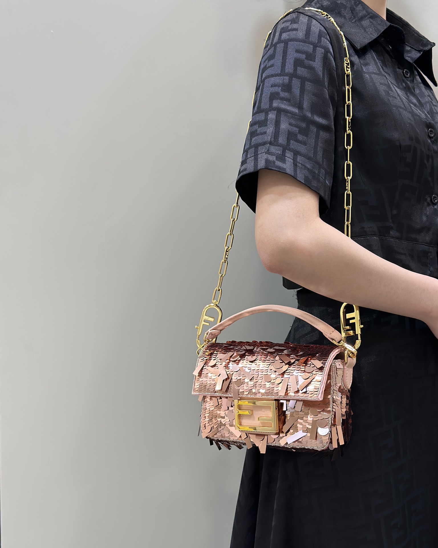 The Fendi Baguette is embellished with beads on its exterior, and every detail is meticulously hand-sewn with over 100 craftsmanship techniques. It is painstakingly crafted with the goal of presenting the best possible product to everyone, with every detail faithfully reproduced. Its capacity remains functional in all aspects.