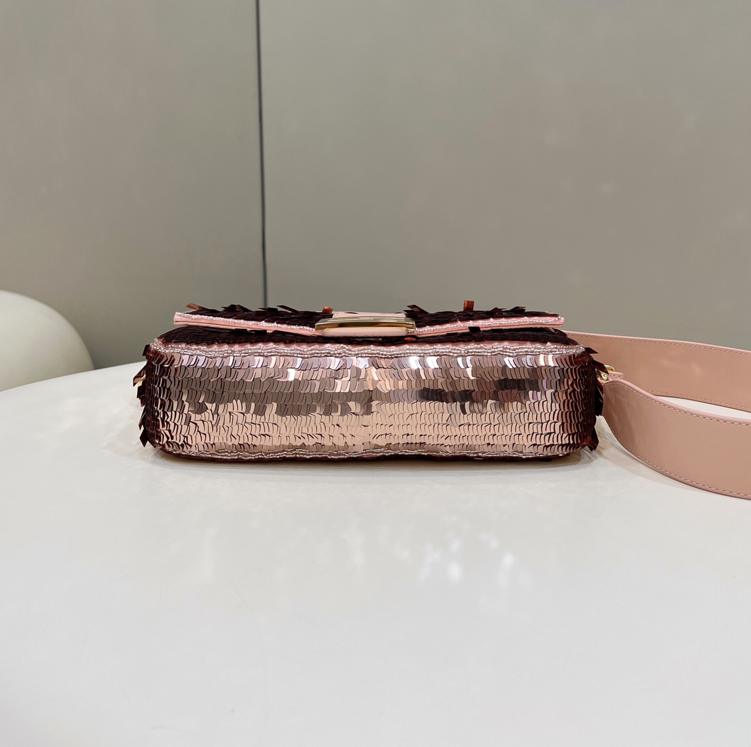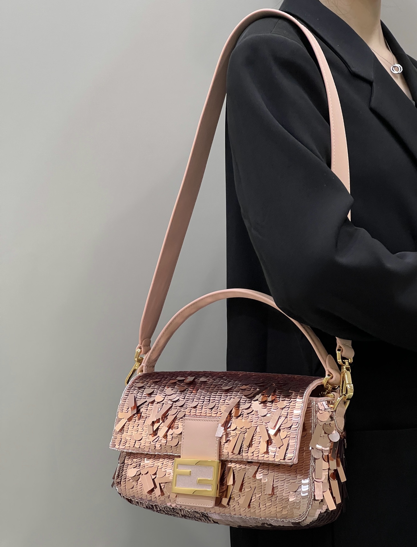The Fendi Baguette is embellished with beads on its exterior, and every detail is meticulously hand-sewn with over 100 craftsmanship techniques. It is painstakingly crafted with the goal of presenting the best possible product to everyone, with every detail faithfully reproduced. Its capacity remains functional in all aspects.