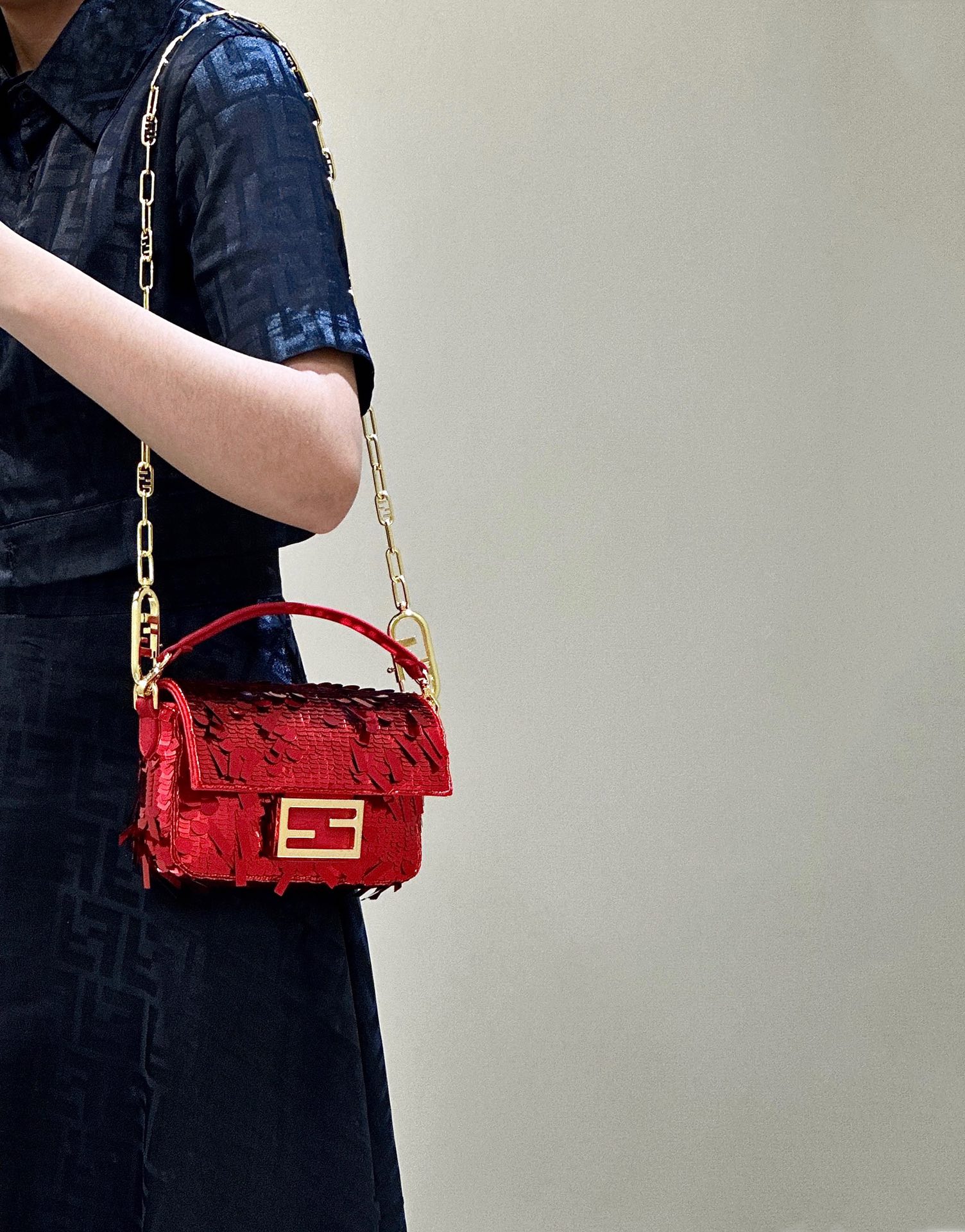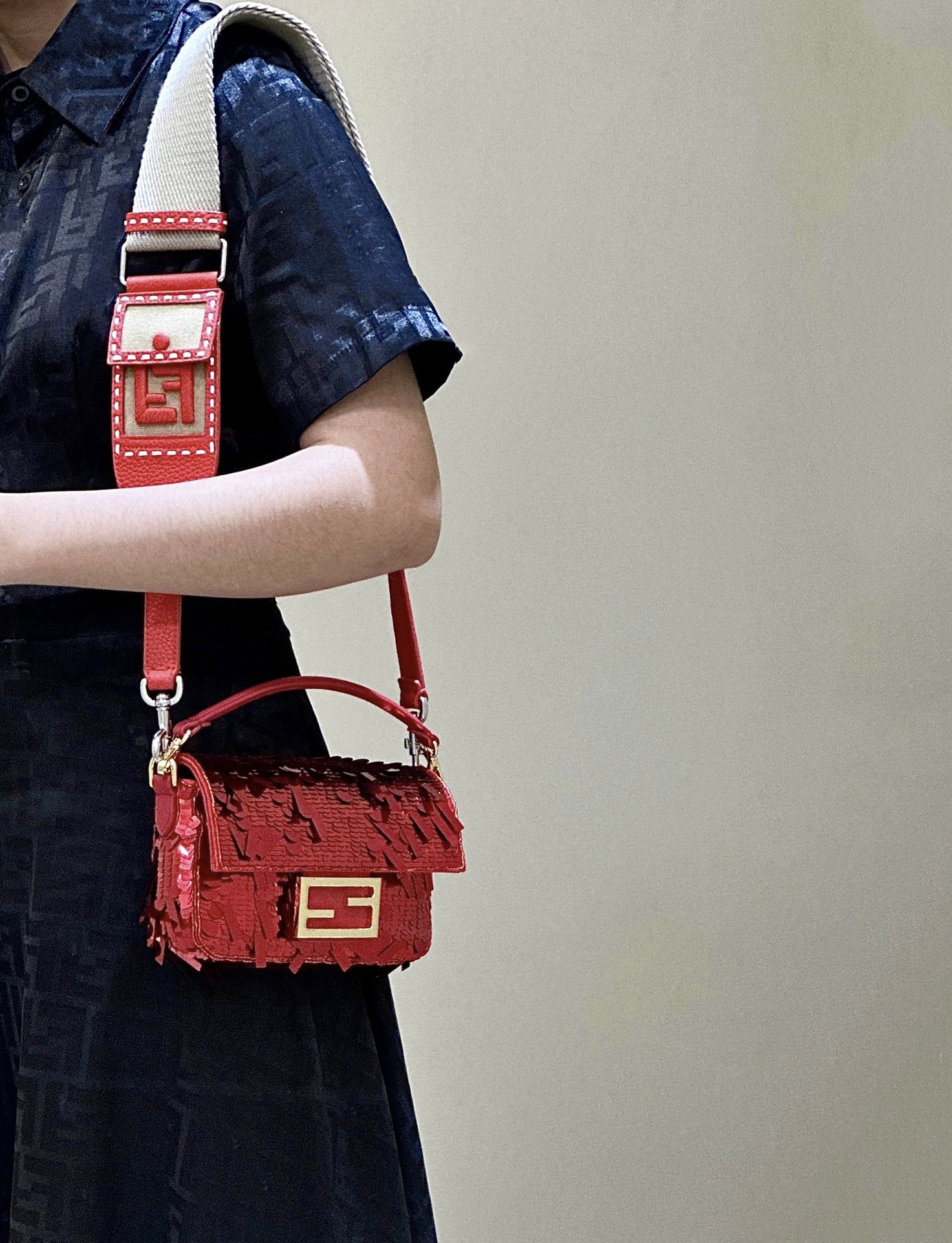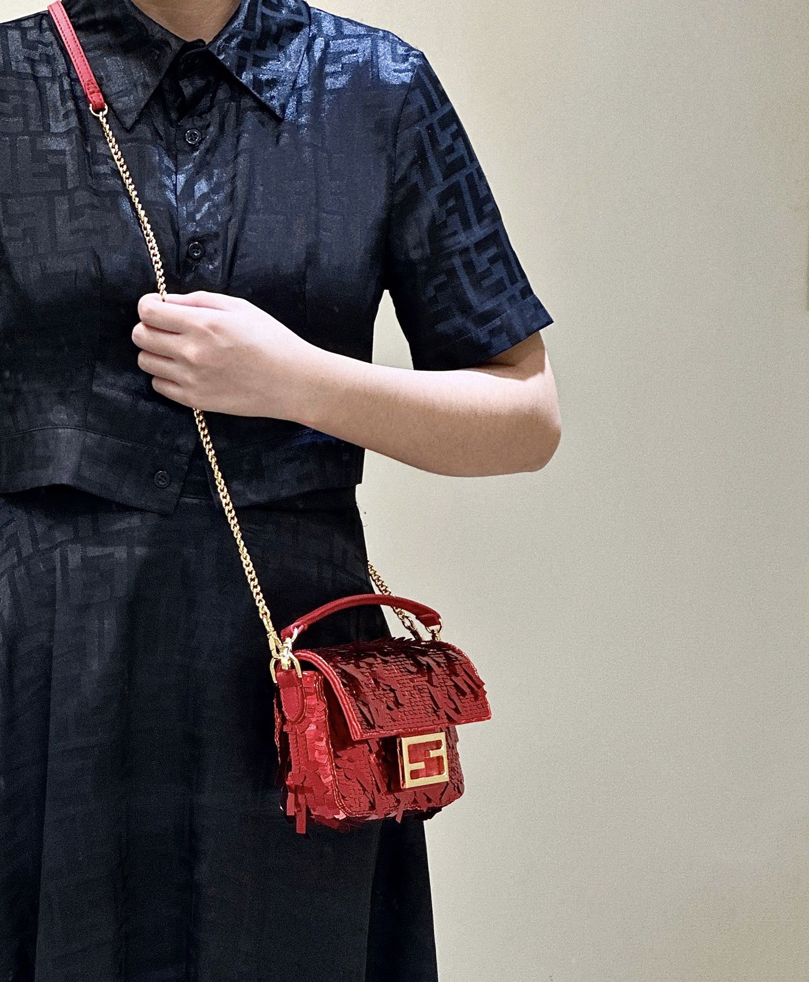 Fendi's mini baguette, adorned with beads, shines and dazzles under the light, with each detail meticulously hand-stitched using over a hundred craftsmanship techniques. Every step of the process is infused with heart and soul, with the sole purpose of presenting the best product to everyone.