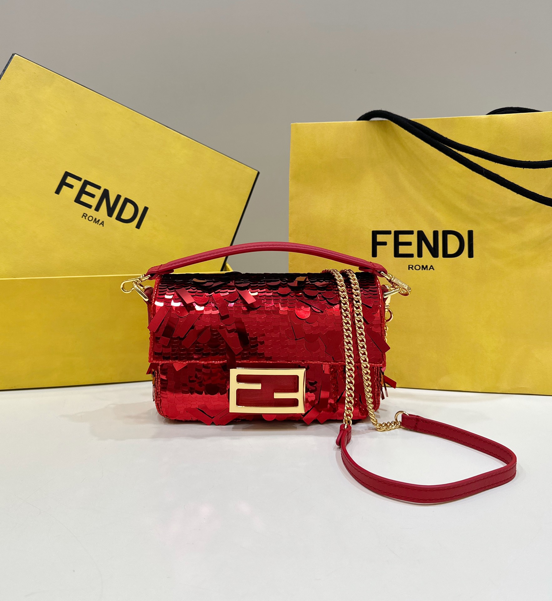 Fendi Baguette red sequin and leather bag
