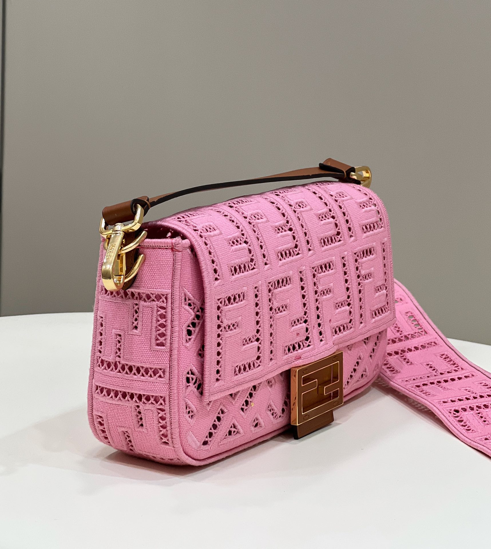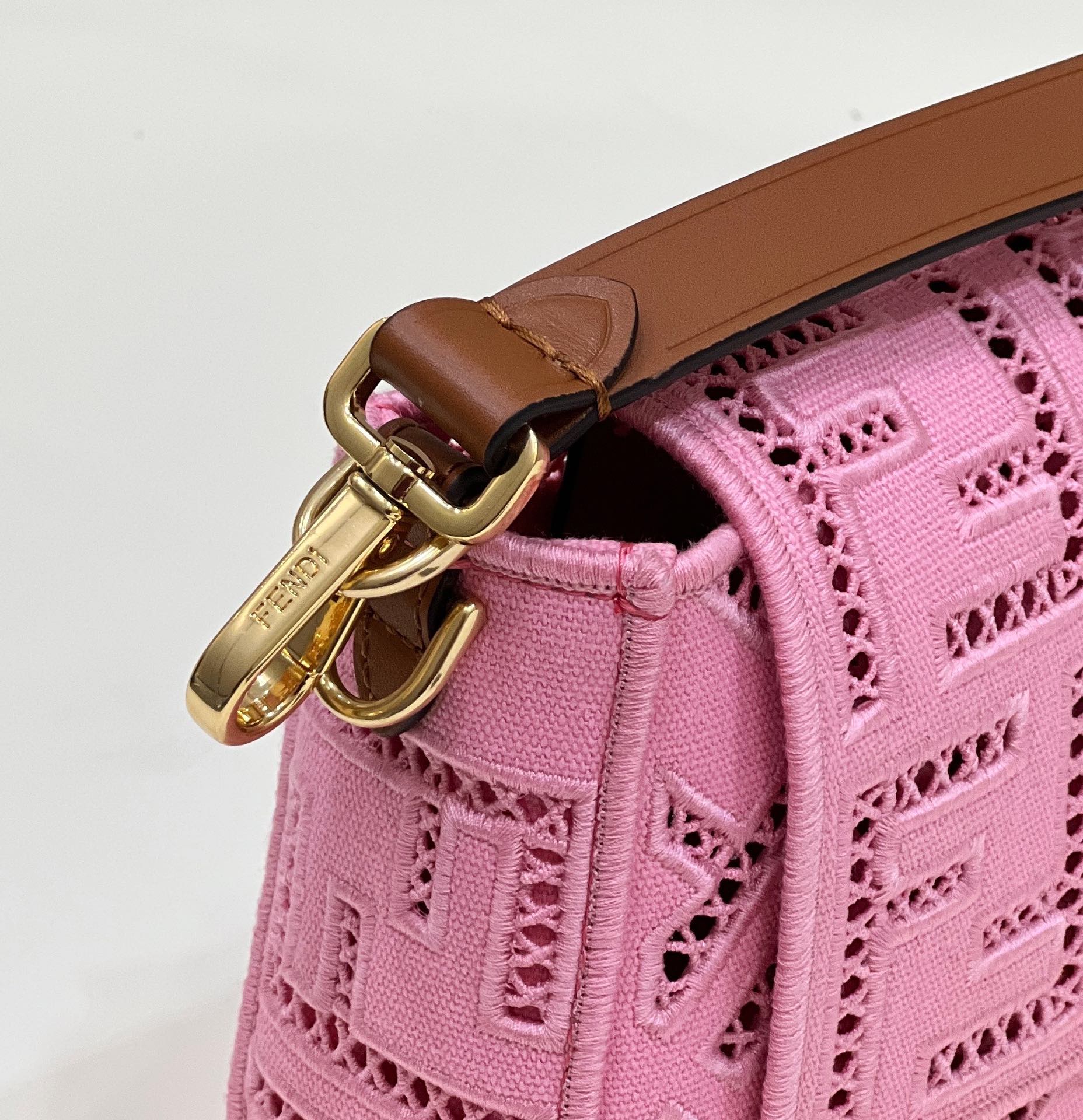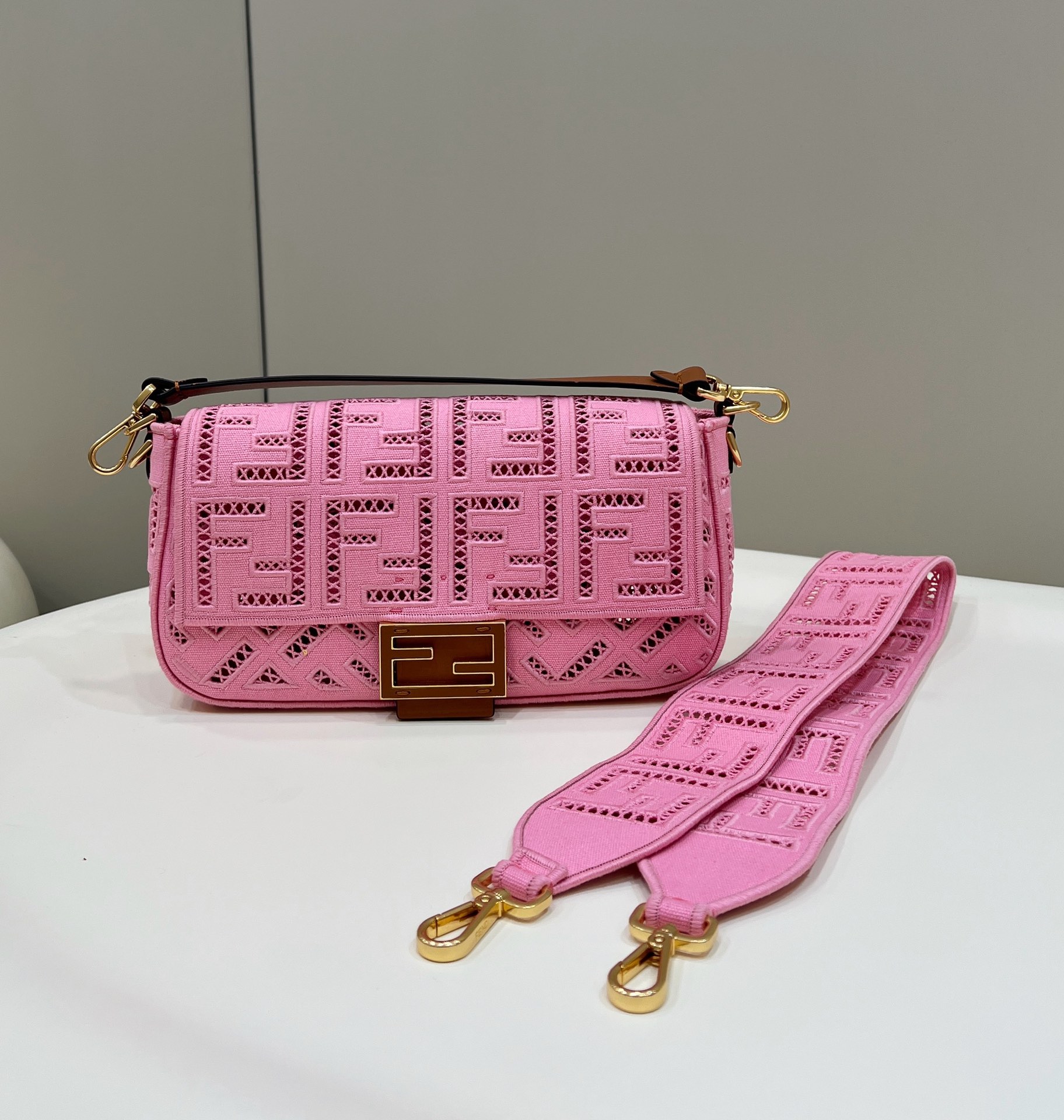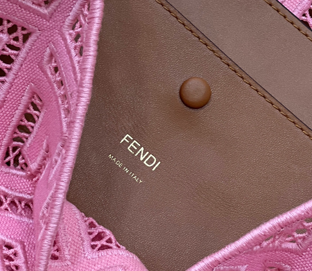 FENDI FHTH FF Fabric Openwork Baguette Handbag pink
