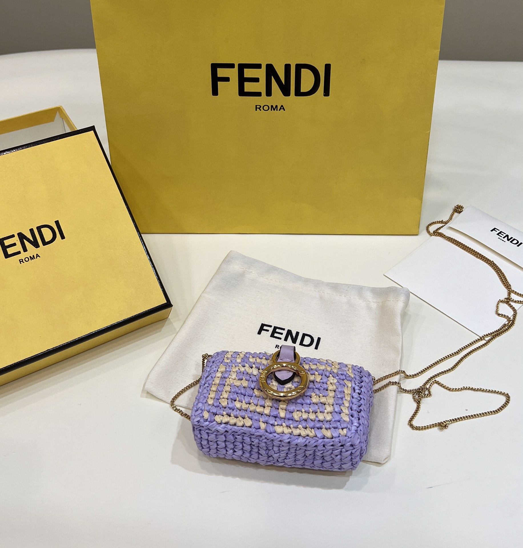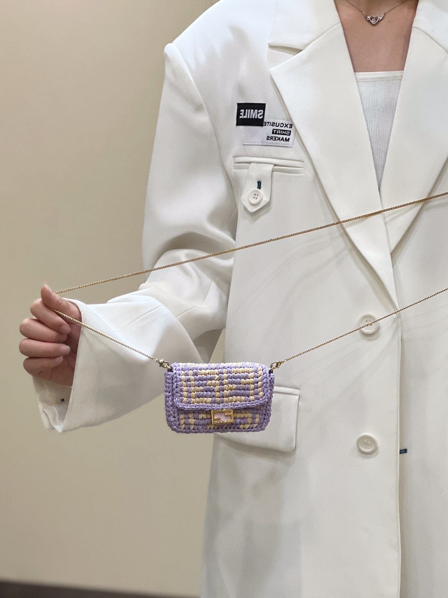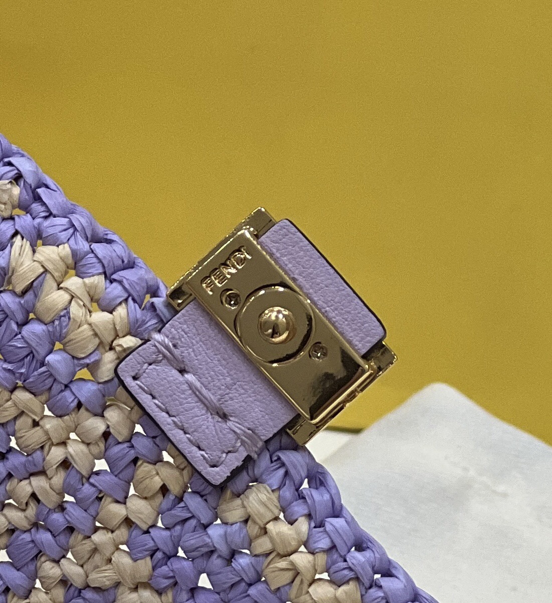 Introducing the FENDI Raffia Woven Mini Baguette, a cute and trendy handwoven mini baguette in soft pastel colors that's incredibly popular. It can be paired with various outfits and is perfect for any occasion.
