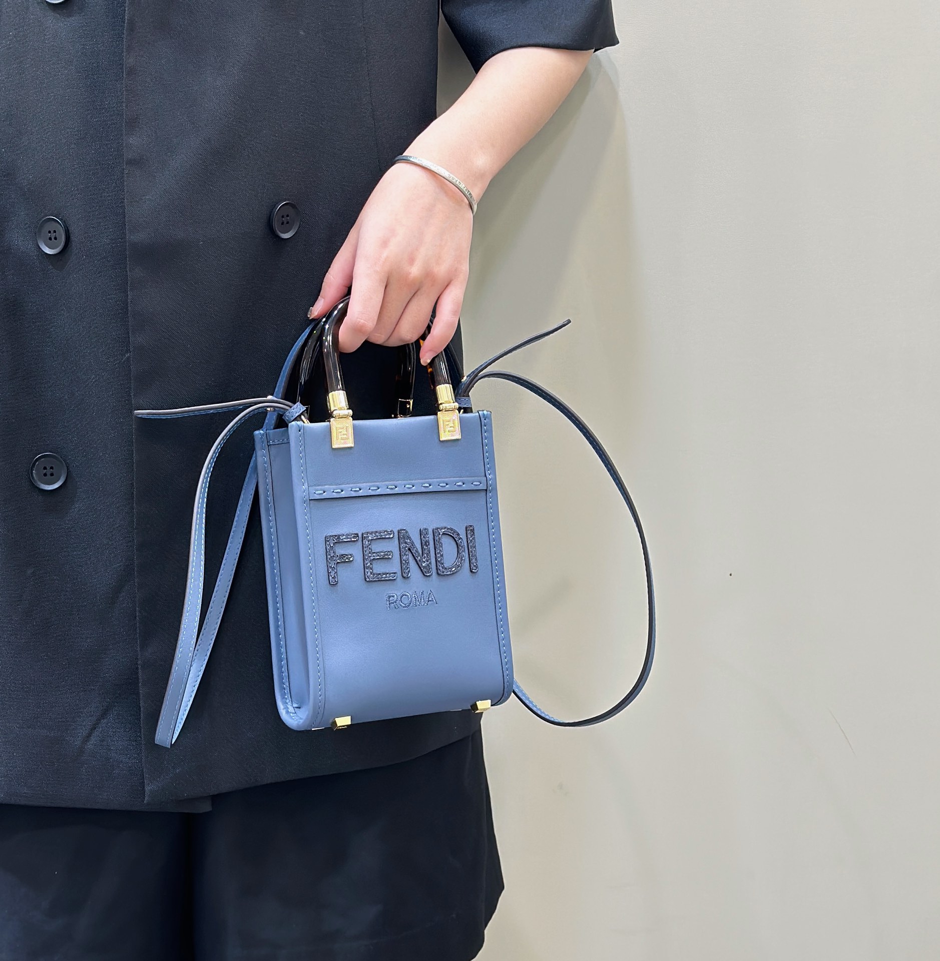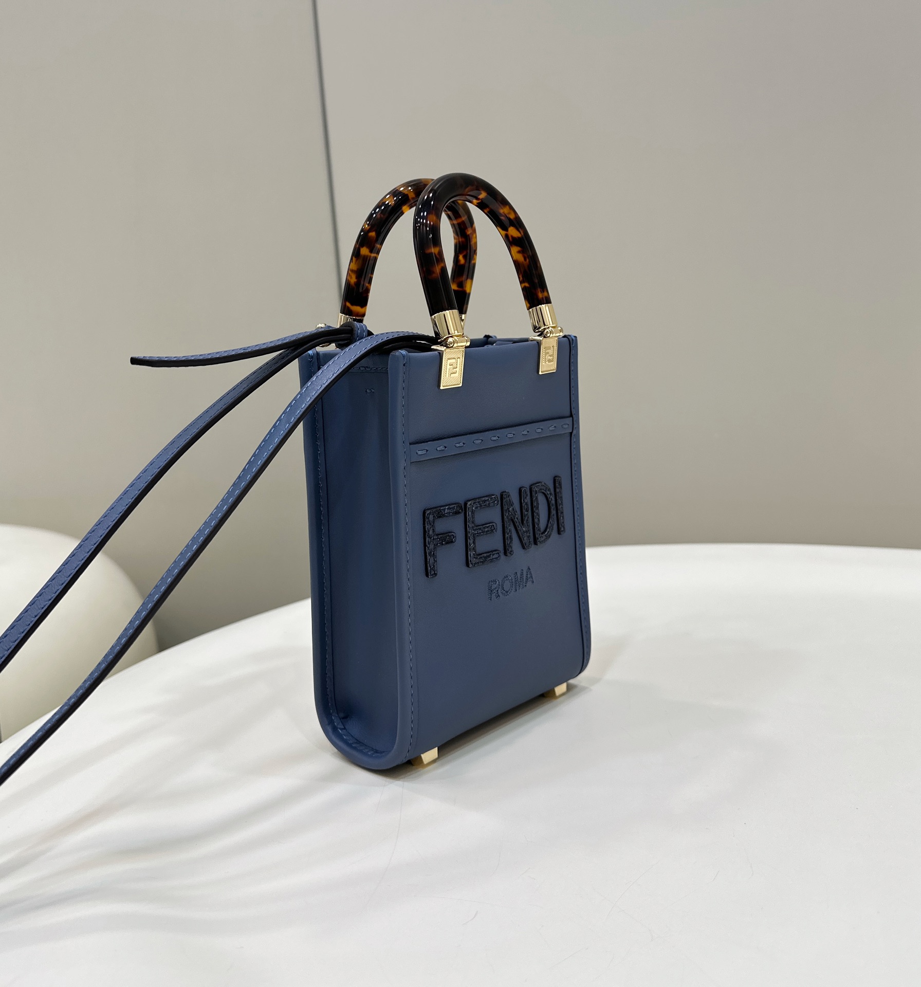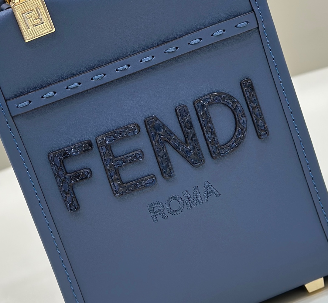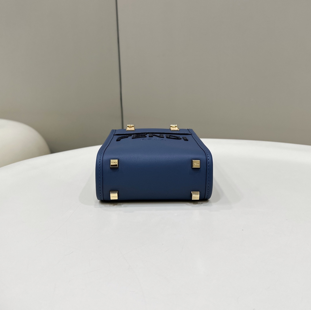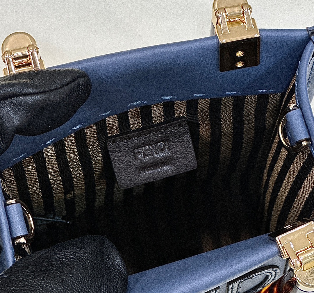 Fendi Mini Sunshine Shopper Blue leather and elaphe mini-bag