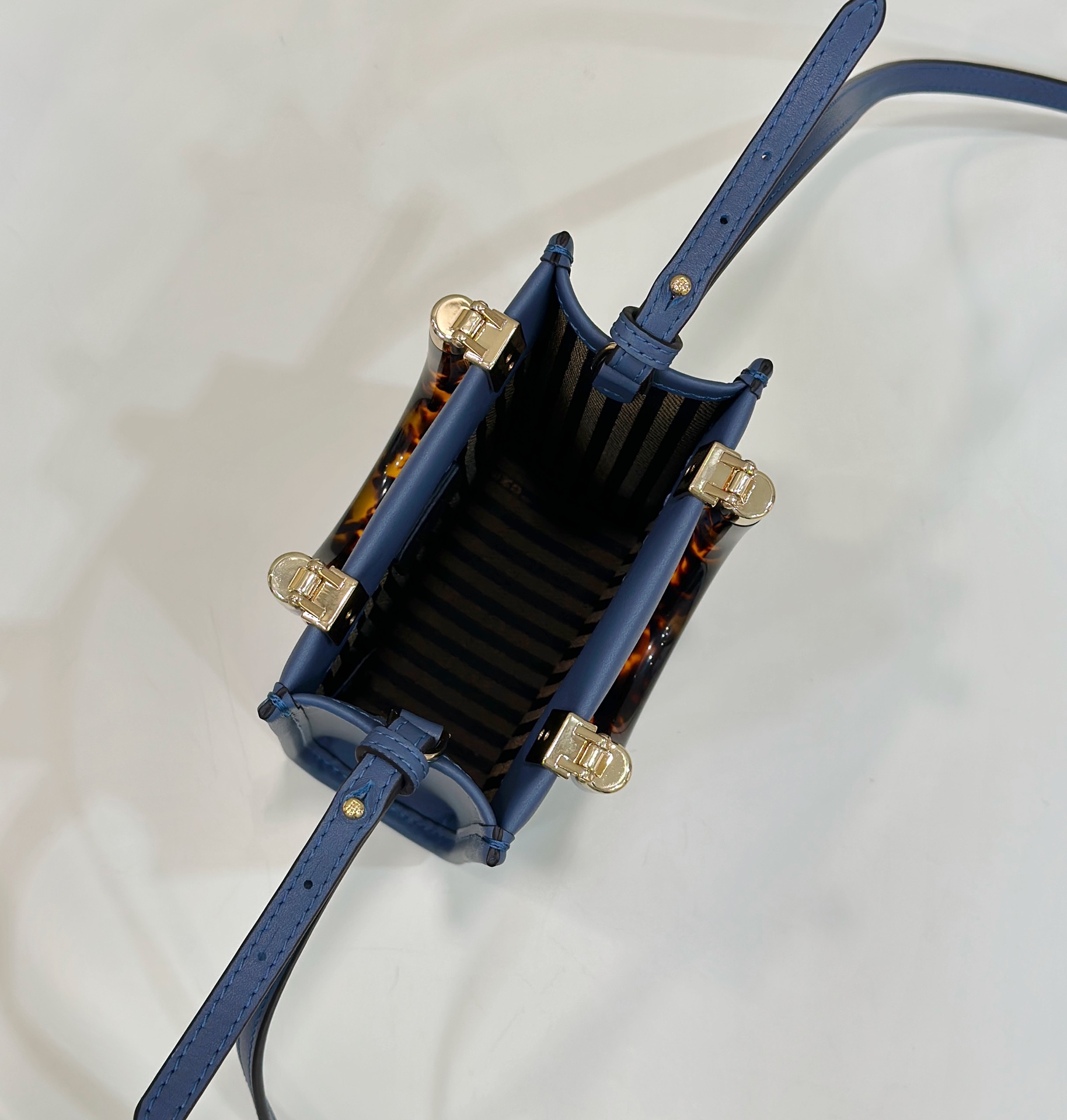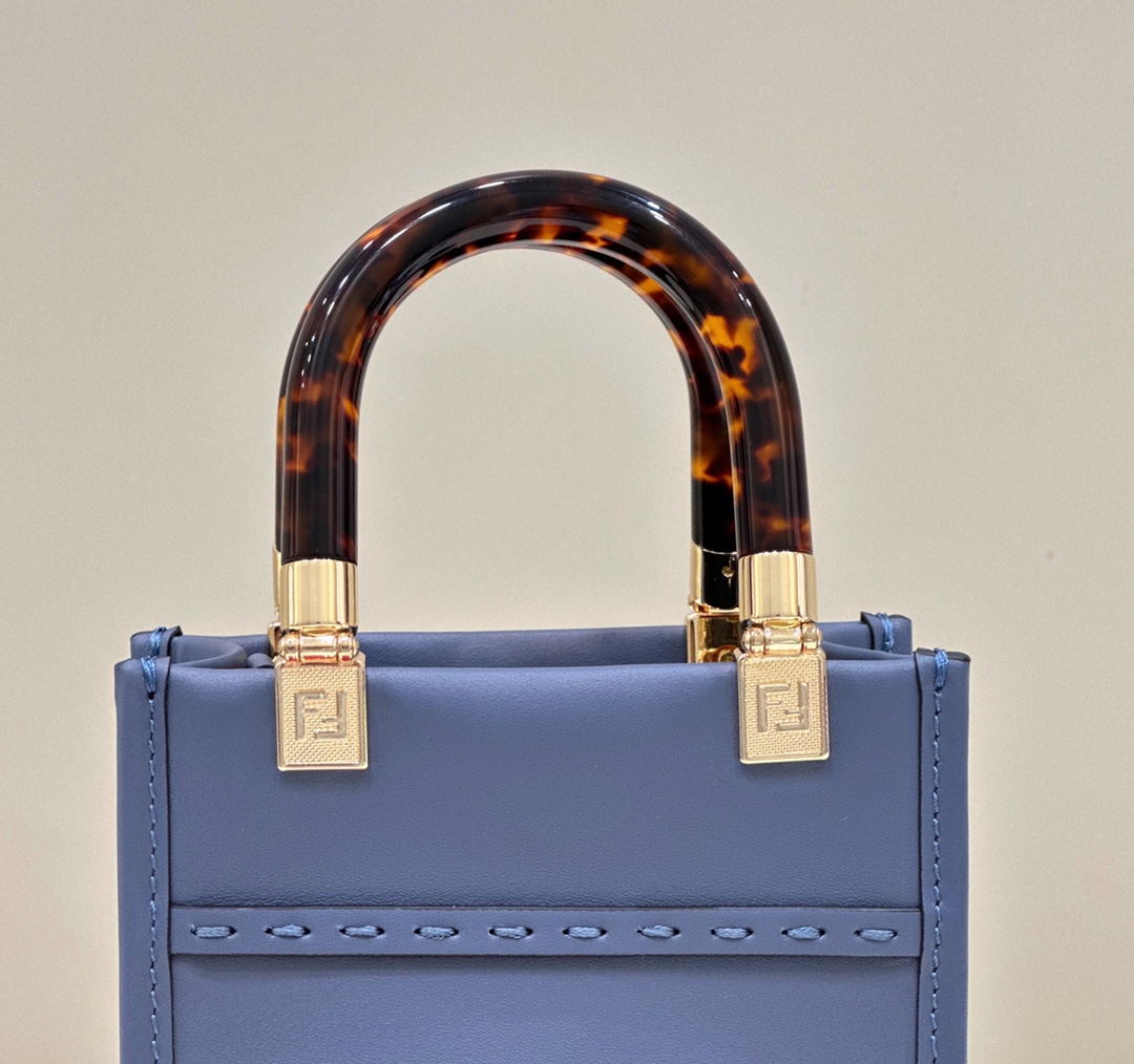 • Fendi Mini Sunshine Shopper Blue leather and elaphe mini-bag