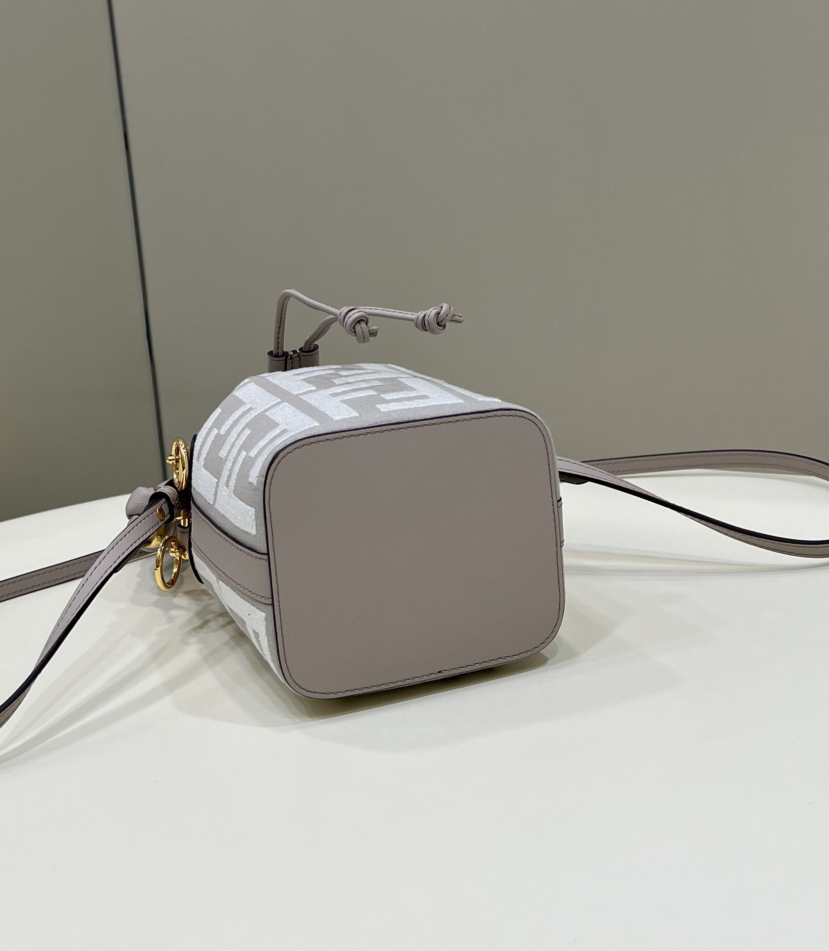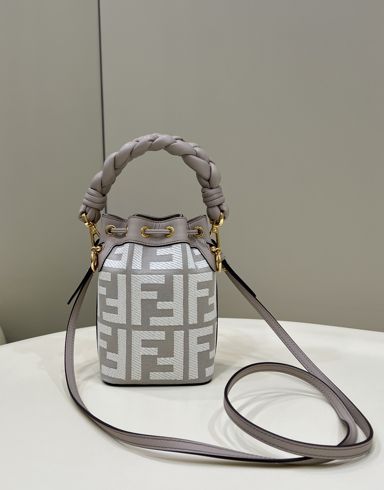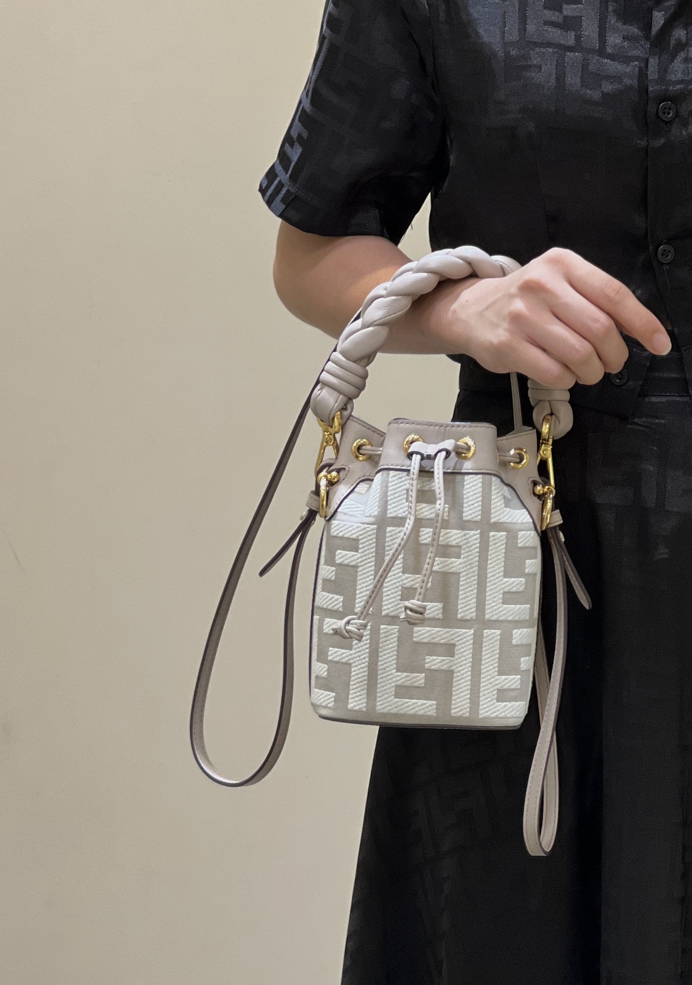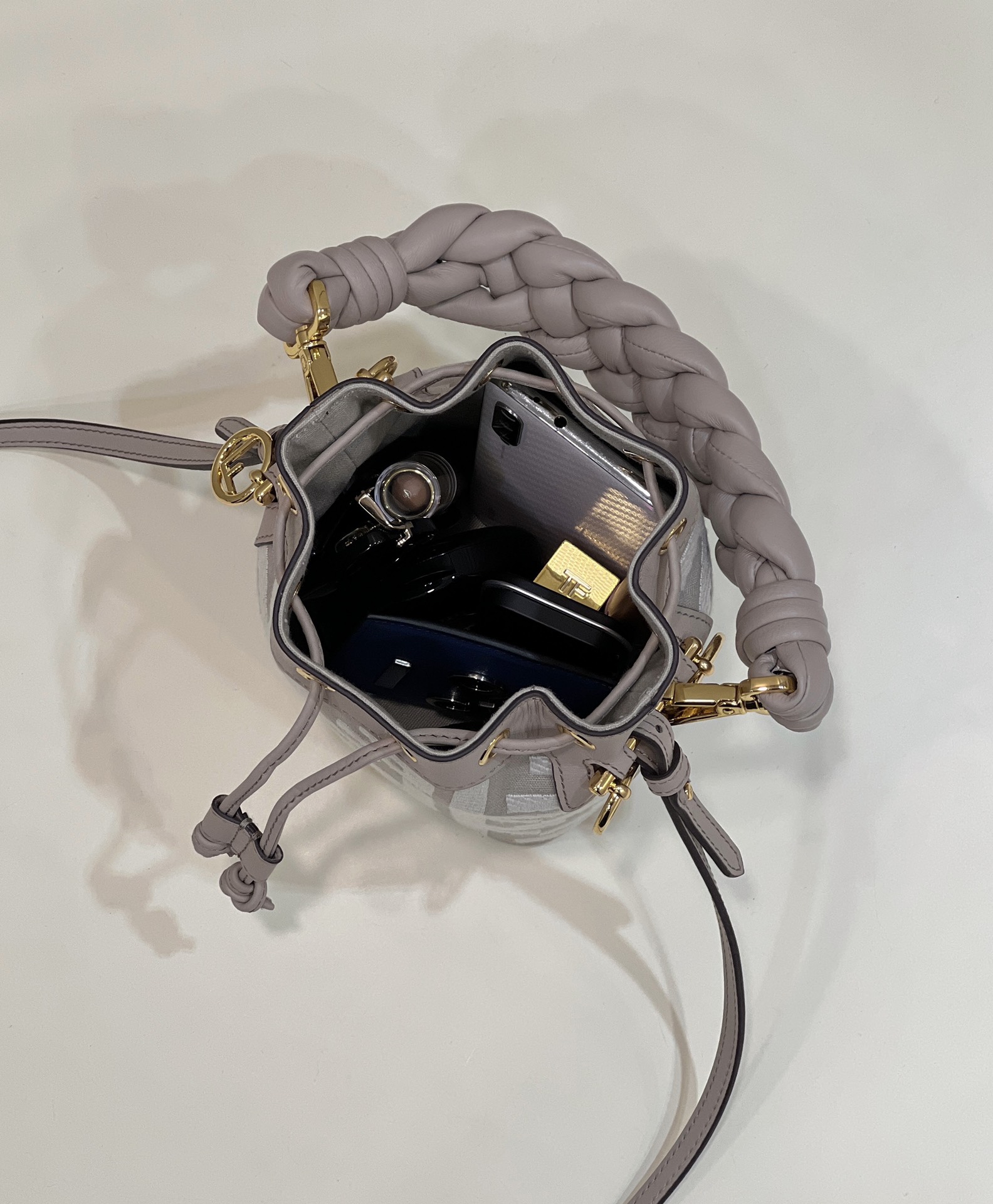 Mini bucket bag, made of washed denim with embroidered double F logo, with a capacity to hold up to five smartphones, and designed to carry various cosmetics on the go, combining practicality with delicacy and femininity, exuding a sense of youthfulness.