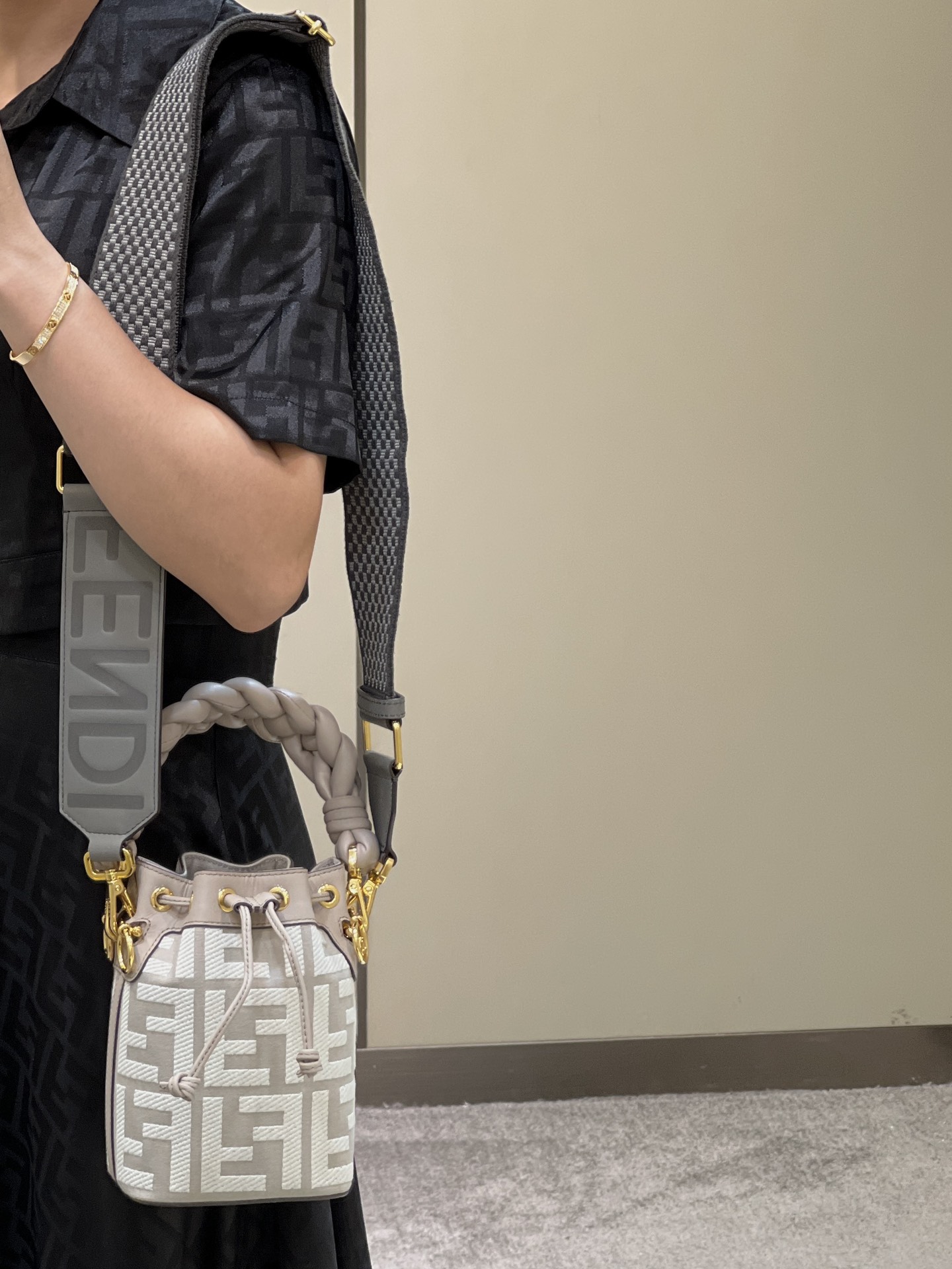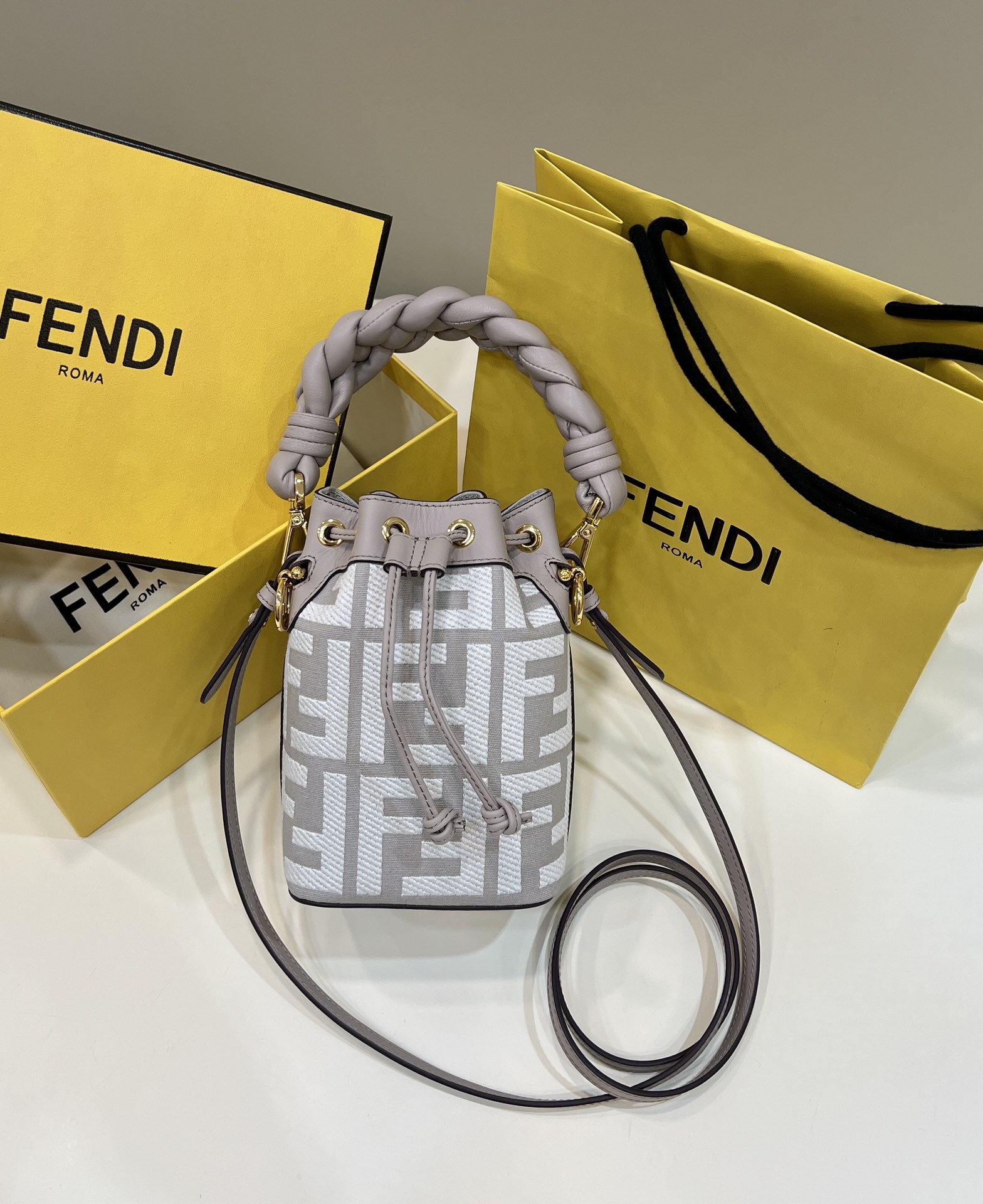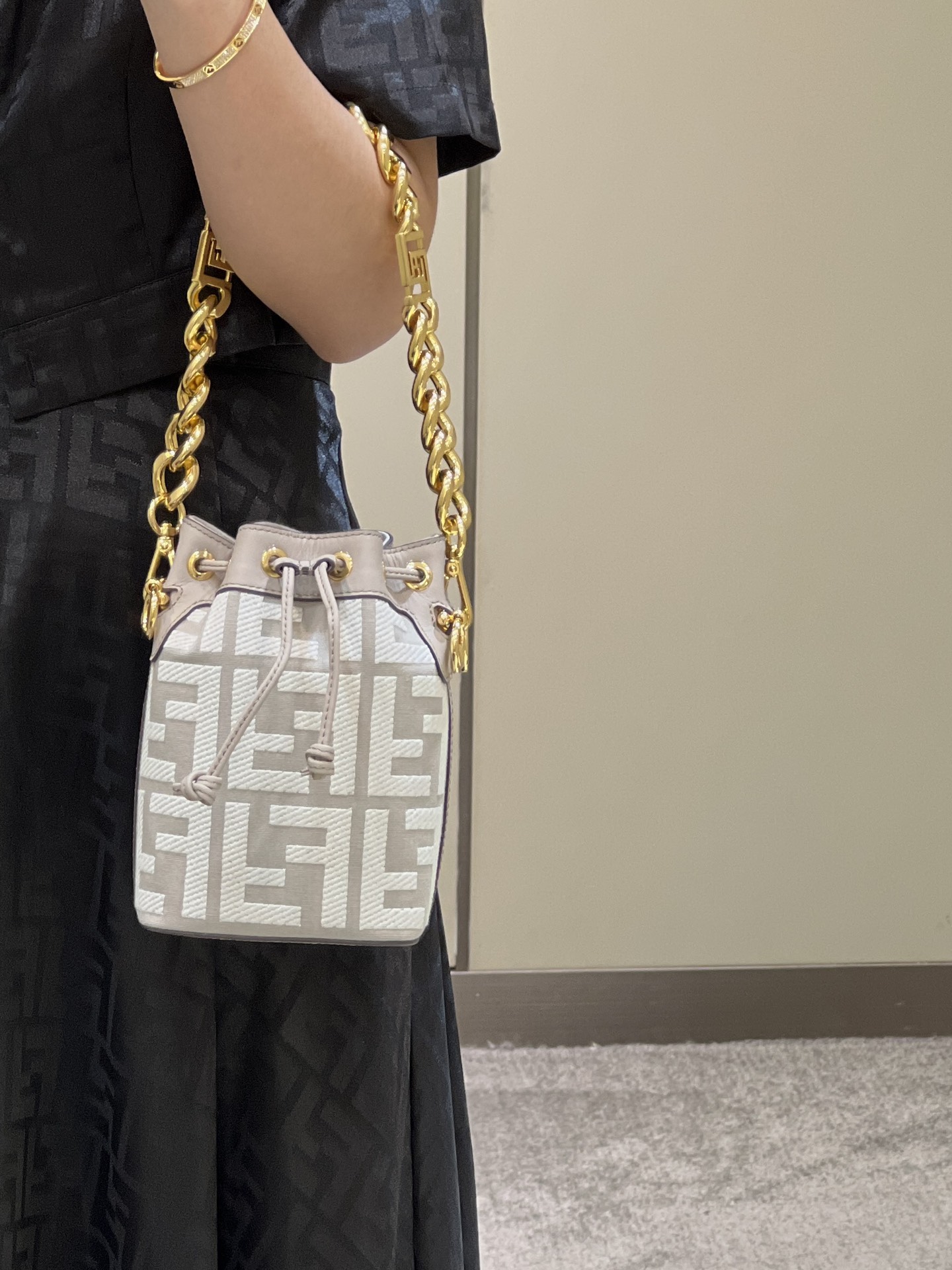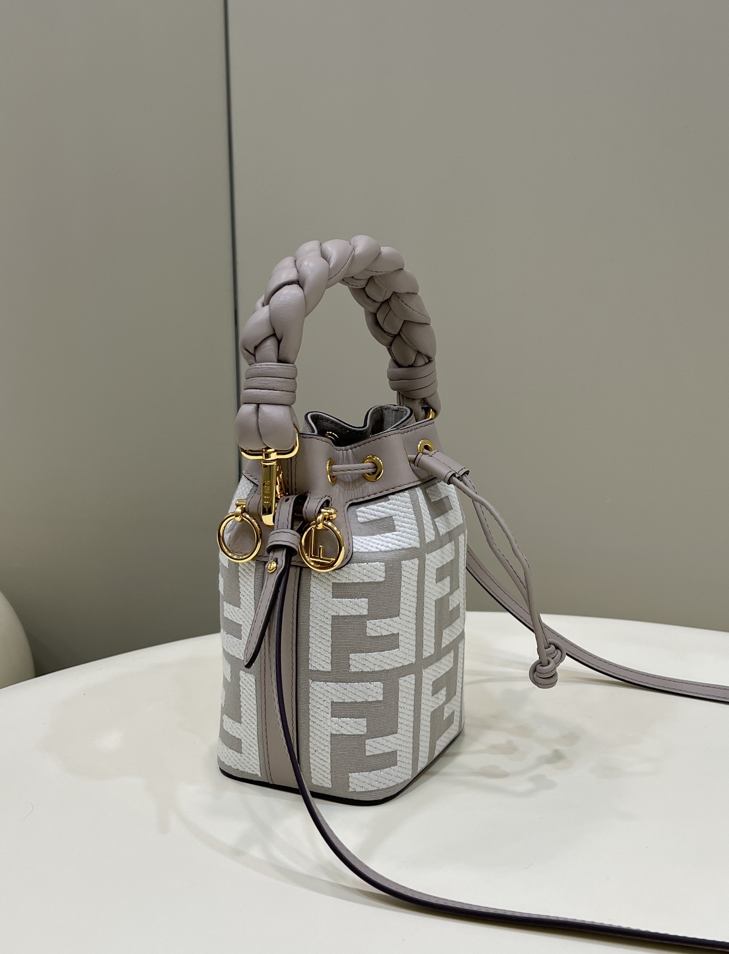 Mini bucket bag, made of washed denim with embroidered double F logo, with a capacity to hold up to five smartphones, and designed to carry various cosmetics on the go, combining practicality with delicacy and femininity, exuding a sense of youthfulness.