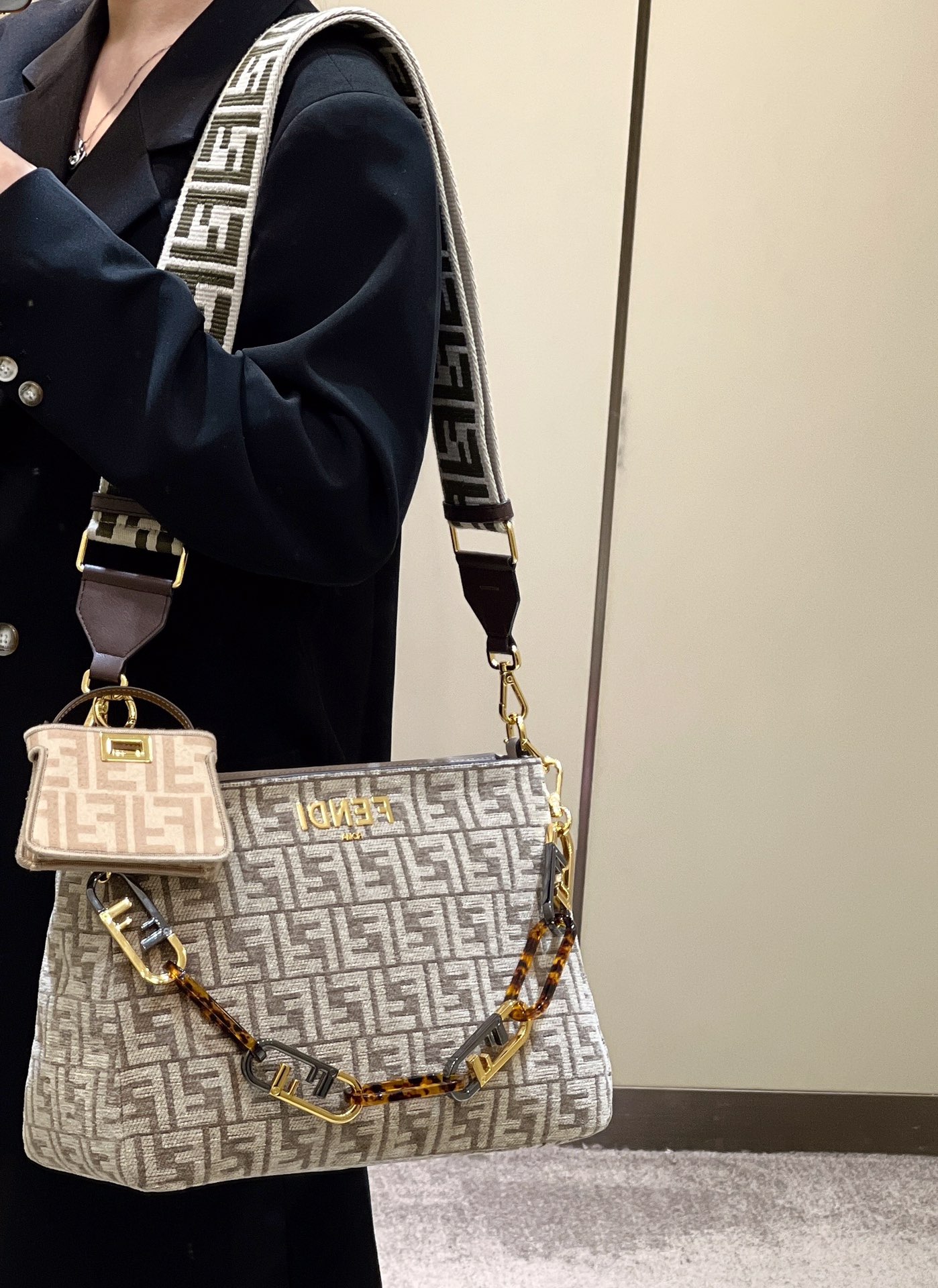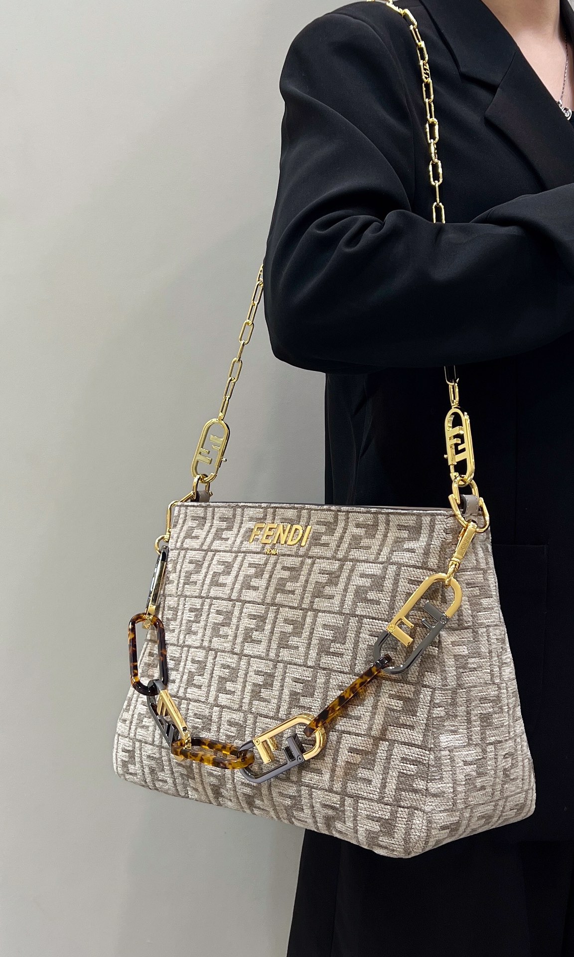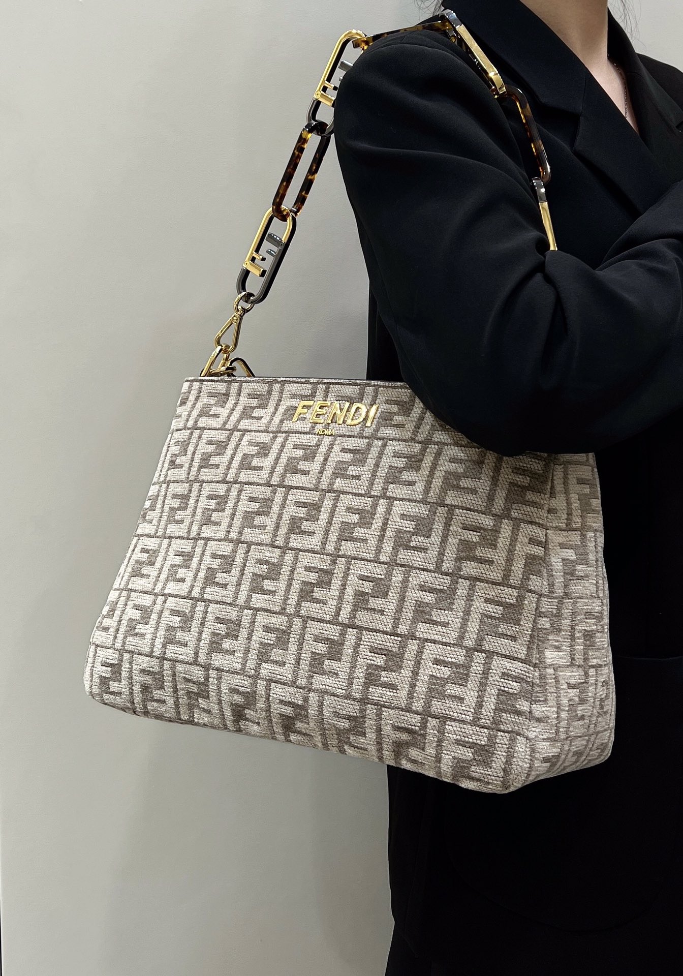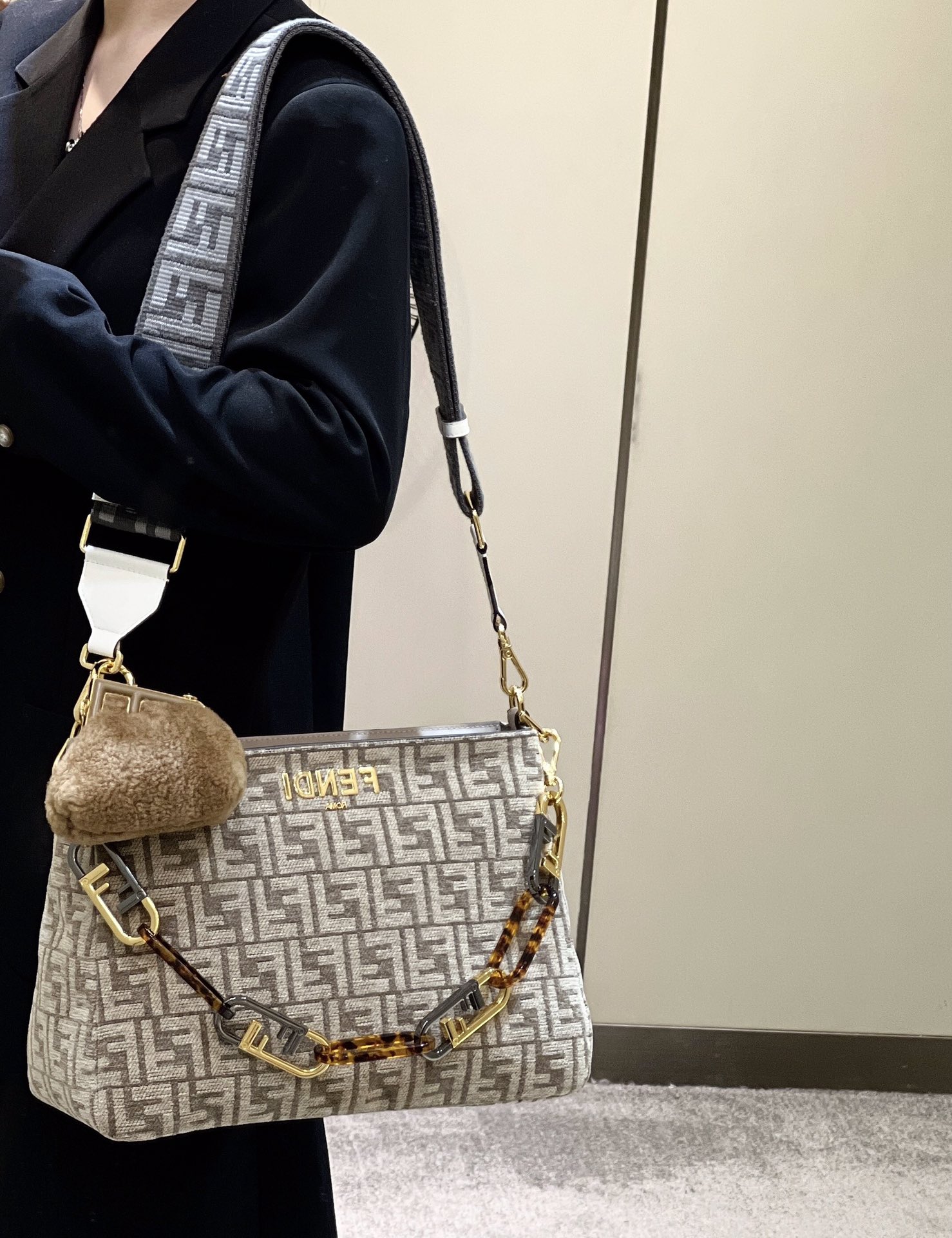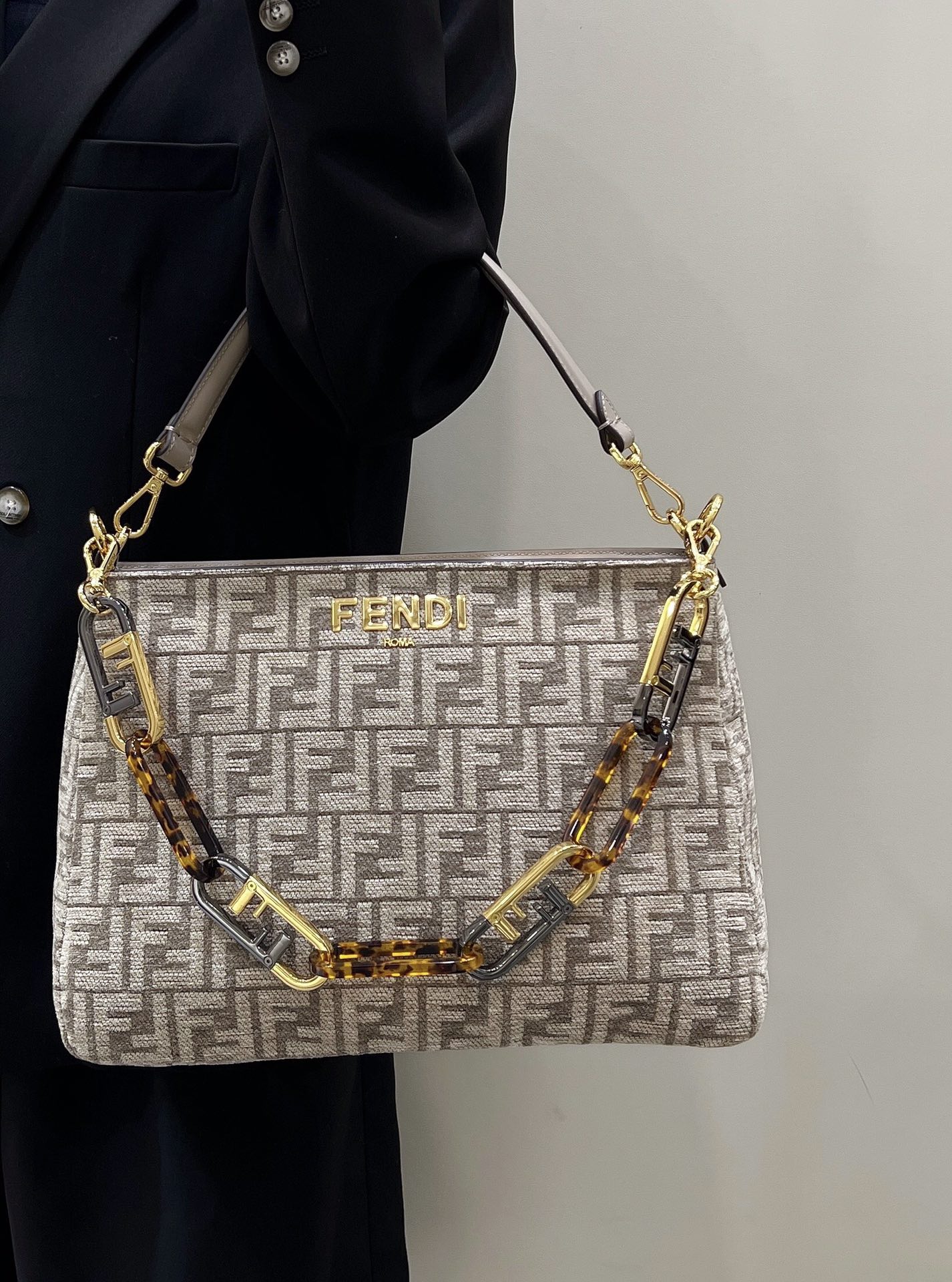 Fendi O'Lock Zip Dove grey tapestry fabric bag Beige