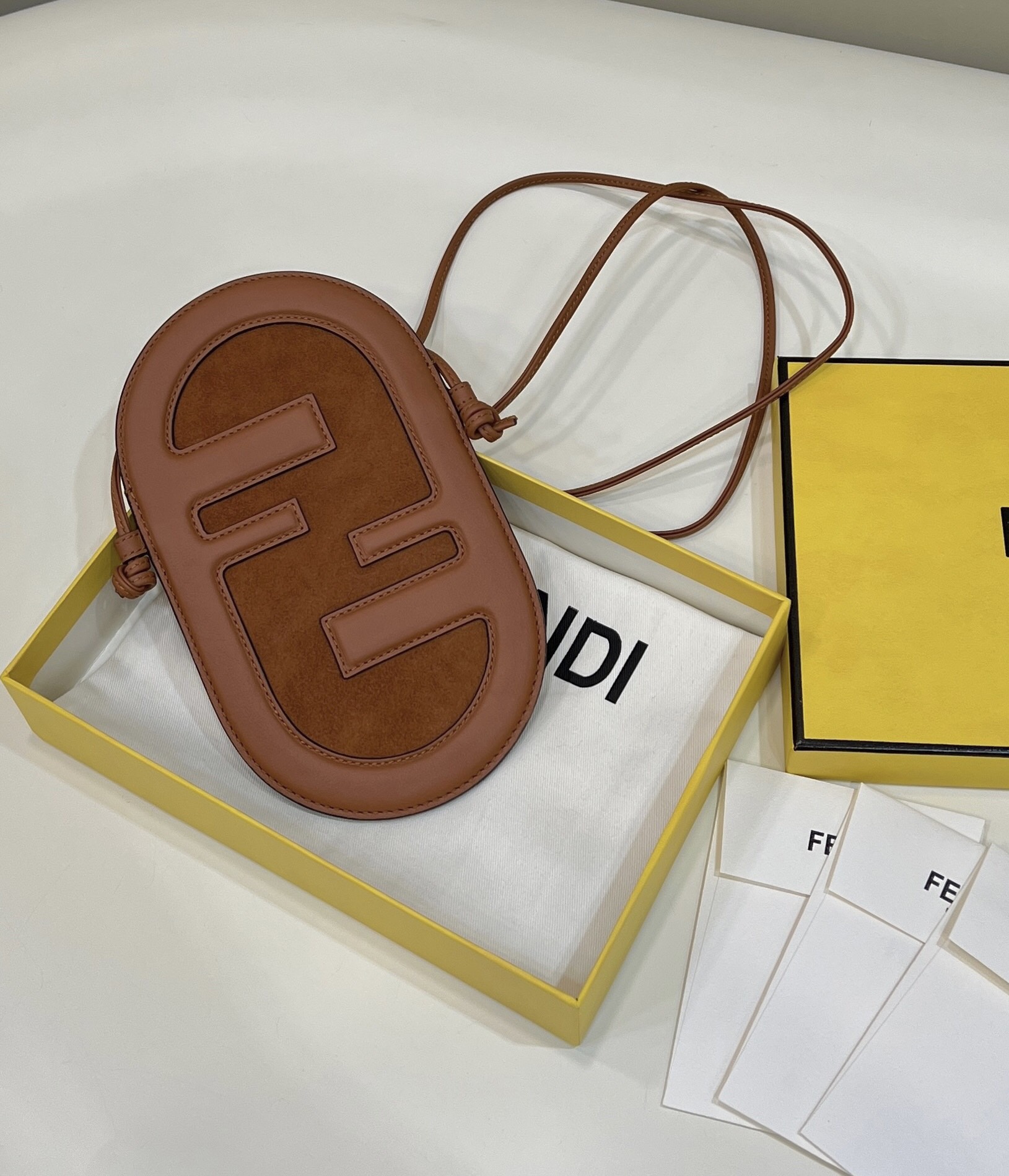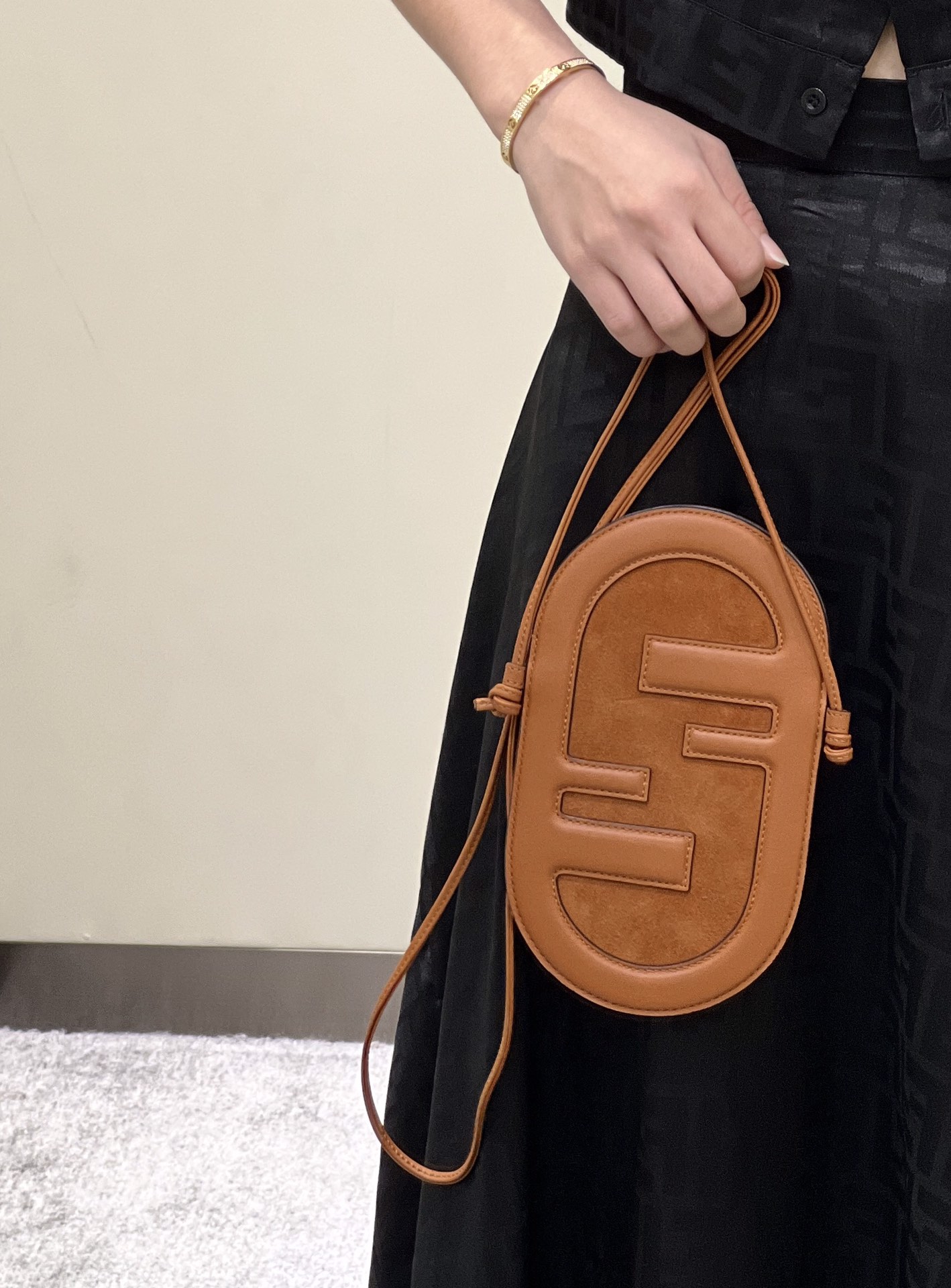 Fendi O’Lock Mini Camera Case brown laminated leather mini bag