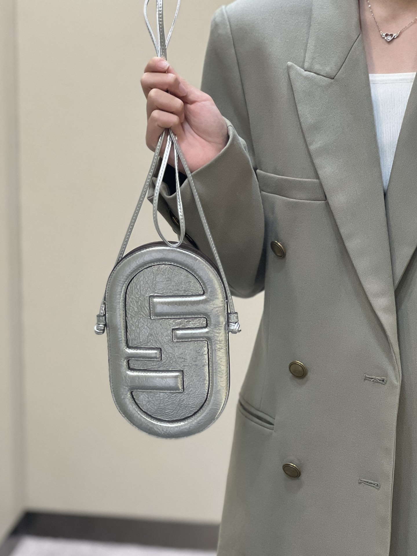 Fendi O’Lock Mini Camera Case Silver laminated leather mini bag