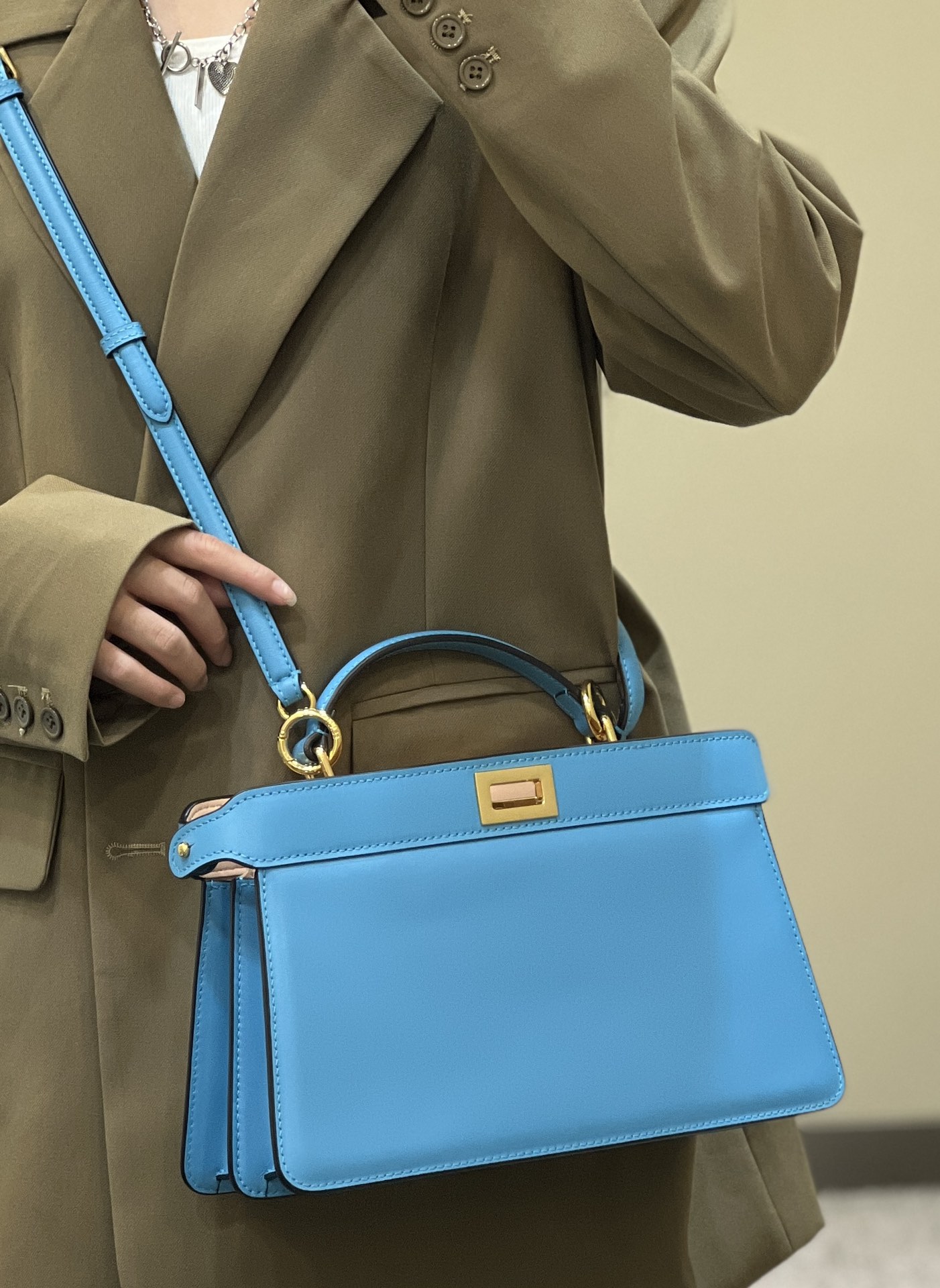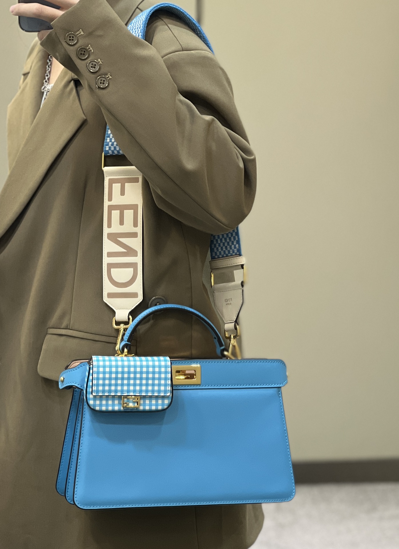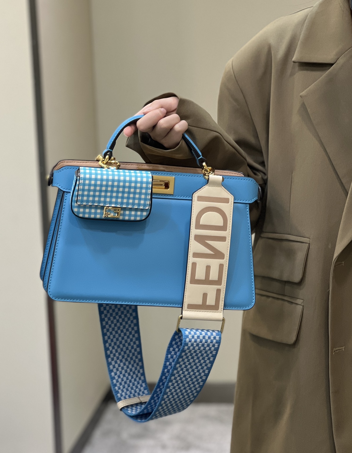 • Fendi Peekaboo ISeeU Petite blue padded nappa leather bag