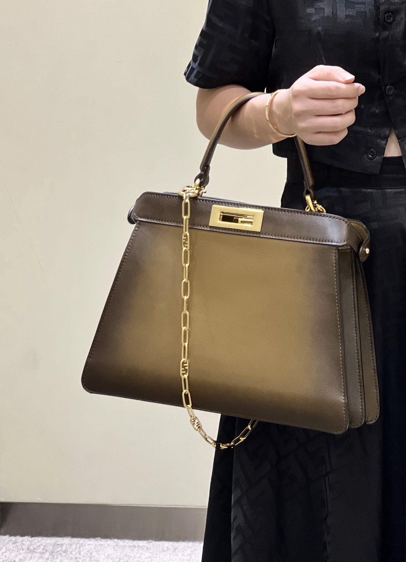Peekaboo I See You Gradient Handbag" is crafted using top-grade leather for both its exterior and interior, with every step from material selection to final assembly executed with meticulous attention to detail. The clever incorporation of ombre elements elevates the classic Peekaboo design to a new level, and the double-compartment space provides ample storage capacity.