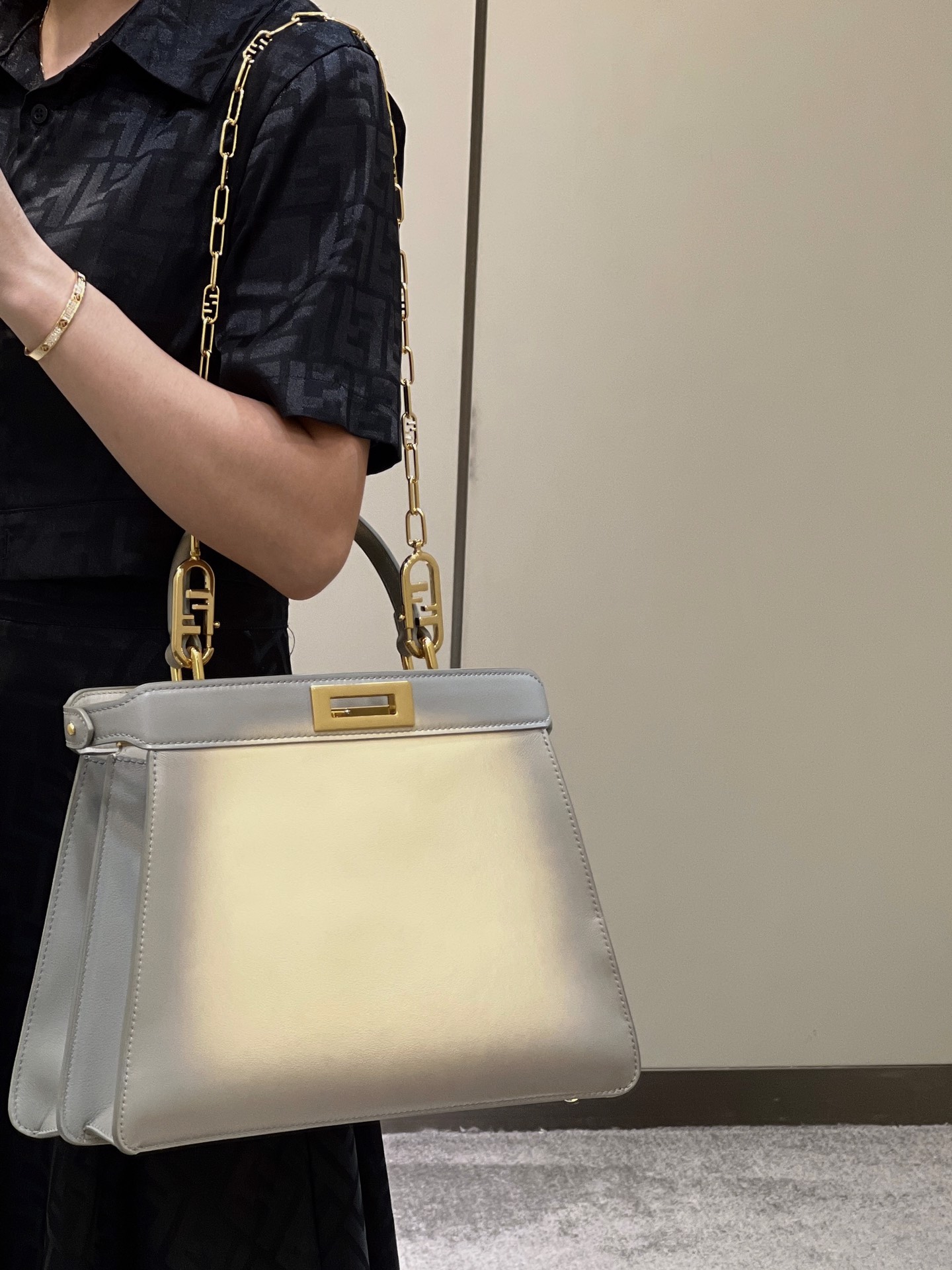 Fendi Peekaboo ISeeU Petite grey padded nappa leather bag